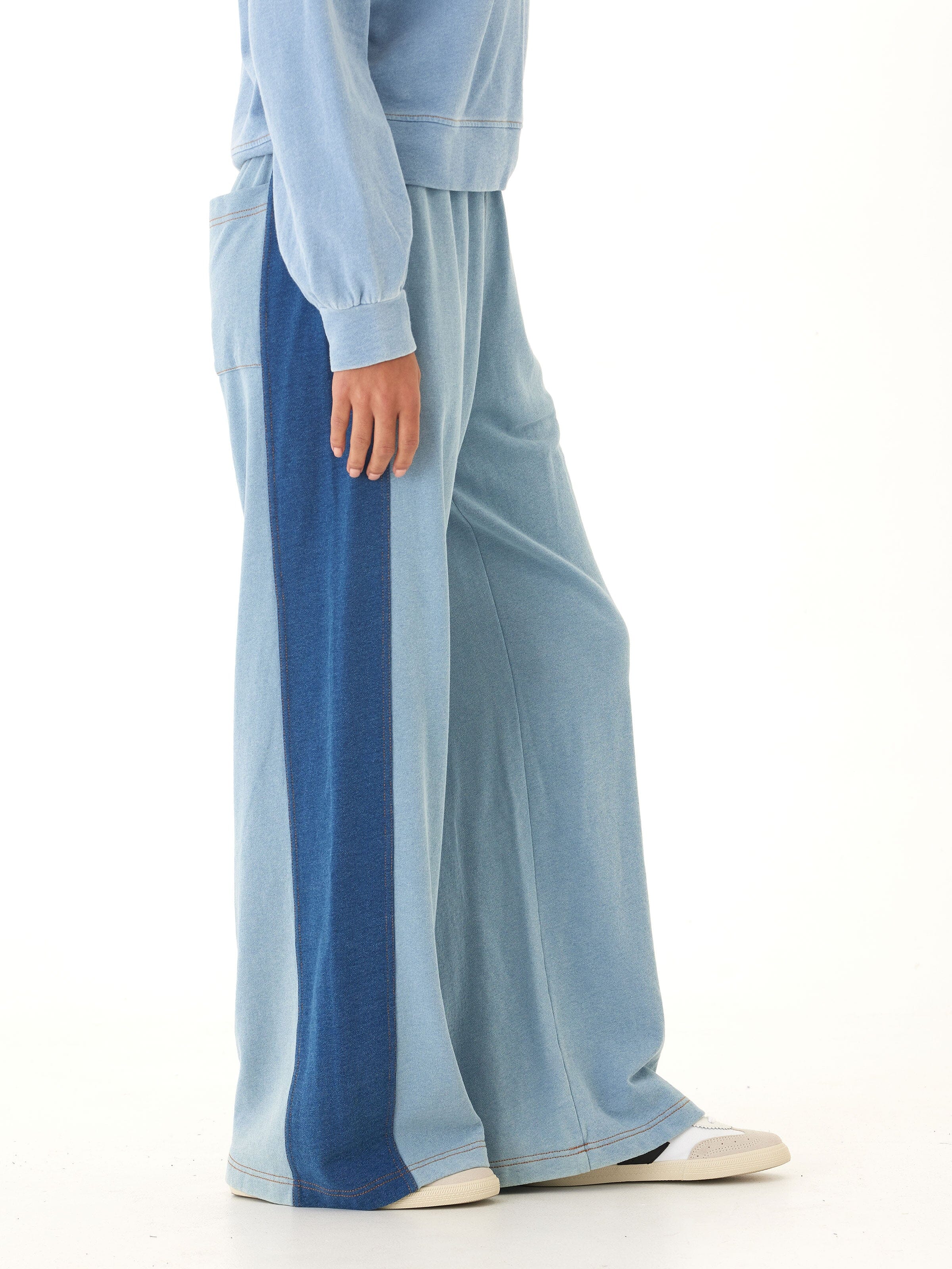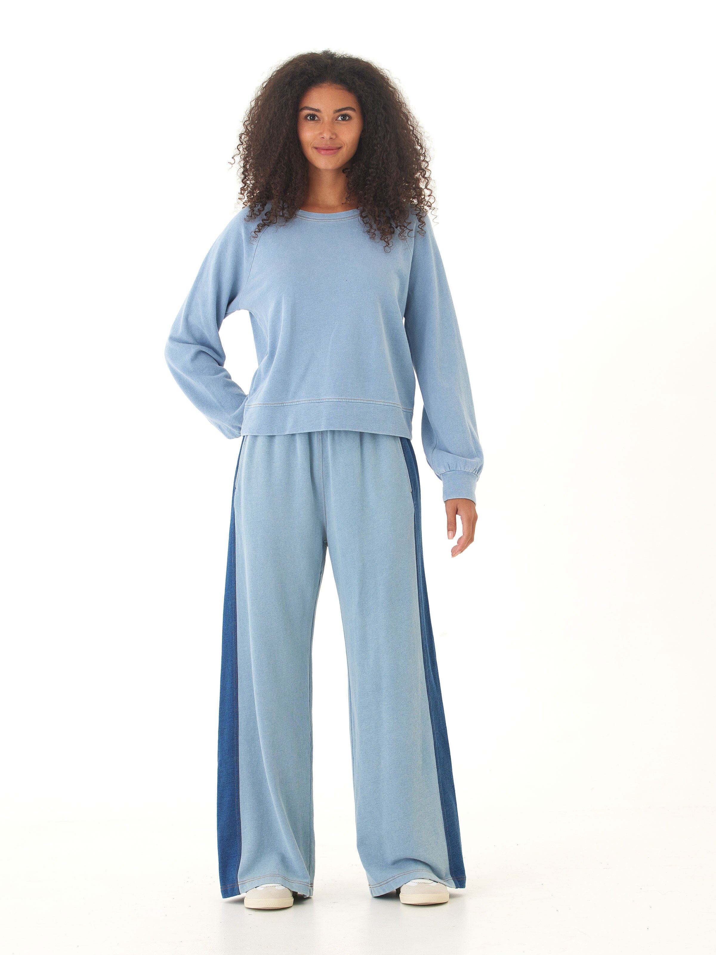 Laid-back comfort meets modern style in the Dorothy Pant. Made from ultra-soft denim terry, these wide-leg bottoms feature a relaxed fit and elastic waistband for all-day ease. The contrast side panels create a flattering, lengthening effect while adding a subtle pop of dimension. Perfect for pairing with the matching Blaire Button-Down or your favorite tee, they’re a versatile staple you’ll wear on repeat.