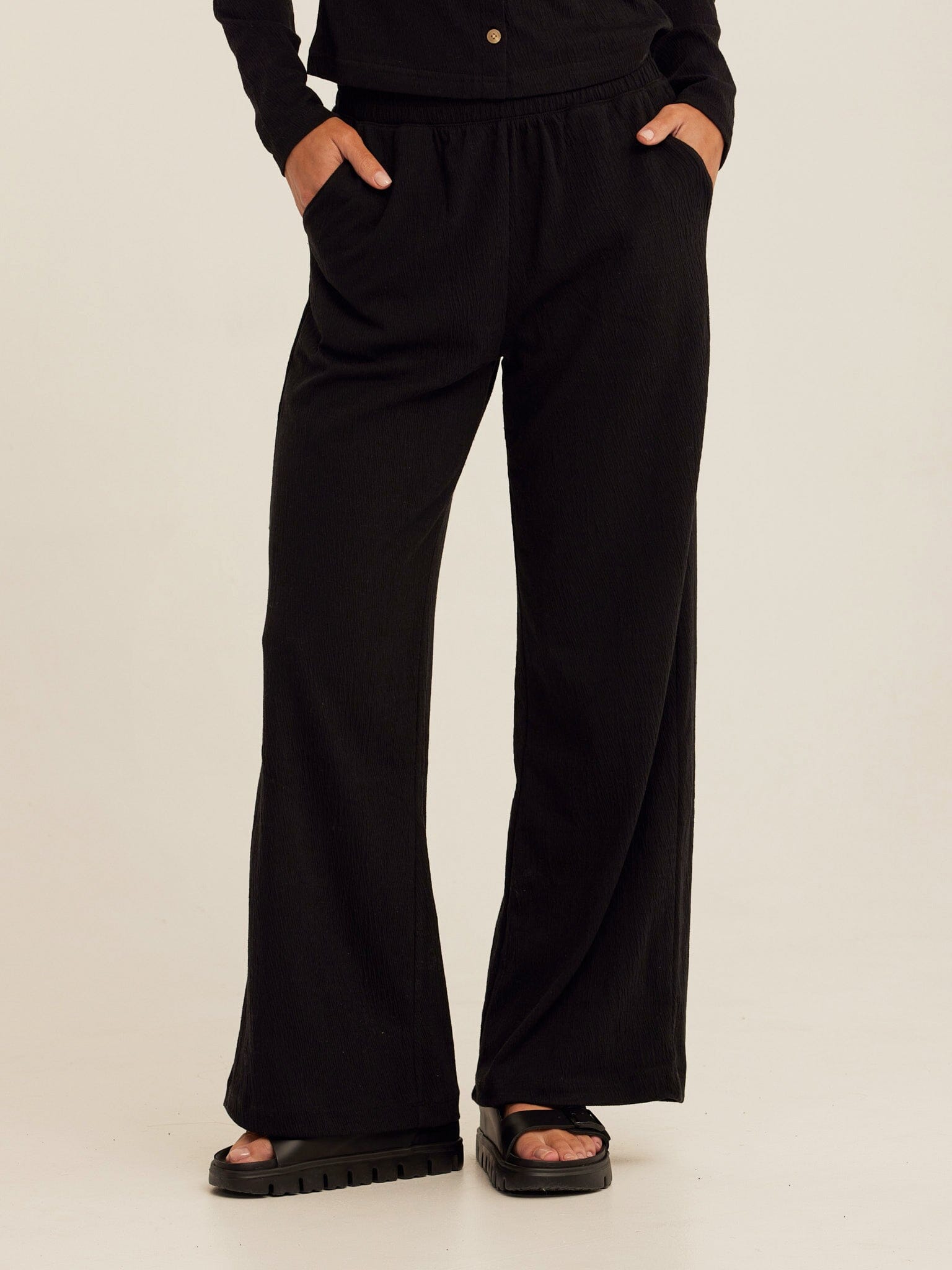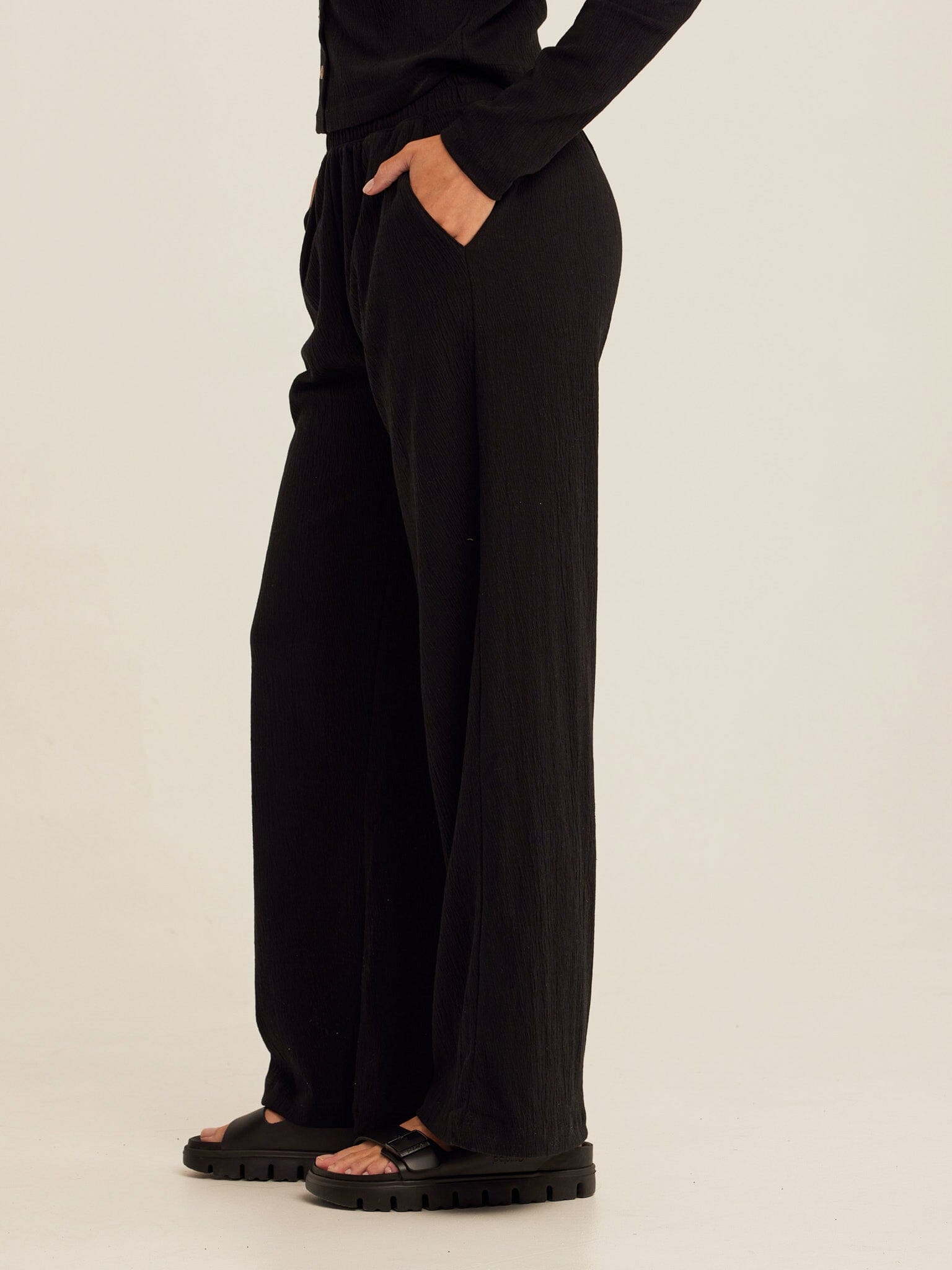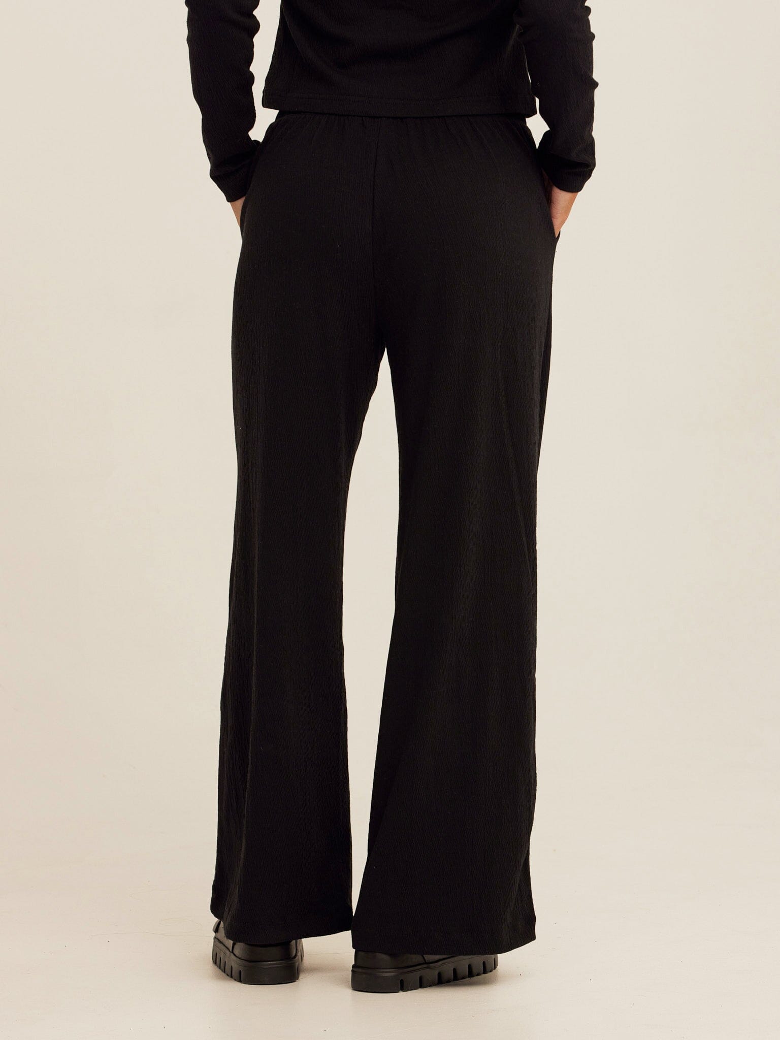 Experience relaxed comfort with the Smocked Jersey Wide Leg Pant. Made from soft, stretchy smocked jersey, this pull-on style features an easy elastic waist and a fluid wide-leg silhouette for everyday wear. Comfortable, versatile, and designed to move with you.