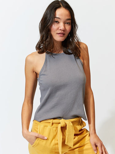Let that sun shine on your shoulders in this 100% organic cotton Elpis Sweater Knit Tank with a high neckline and cutaway shape. Tuck it into shorts or jeans for a complete look.