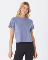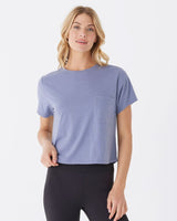The Shelbie Tee is made from our super soft (and sustainable) blend of recycled polyester, organic cotton and rayon. We garment dye each one for a perfectly fitted ultra soft finish. This tee hits right at your high waist is perfectly paired with your favorite leggings, denim or shorts!