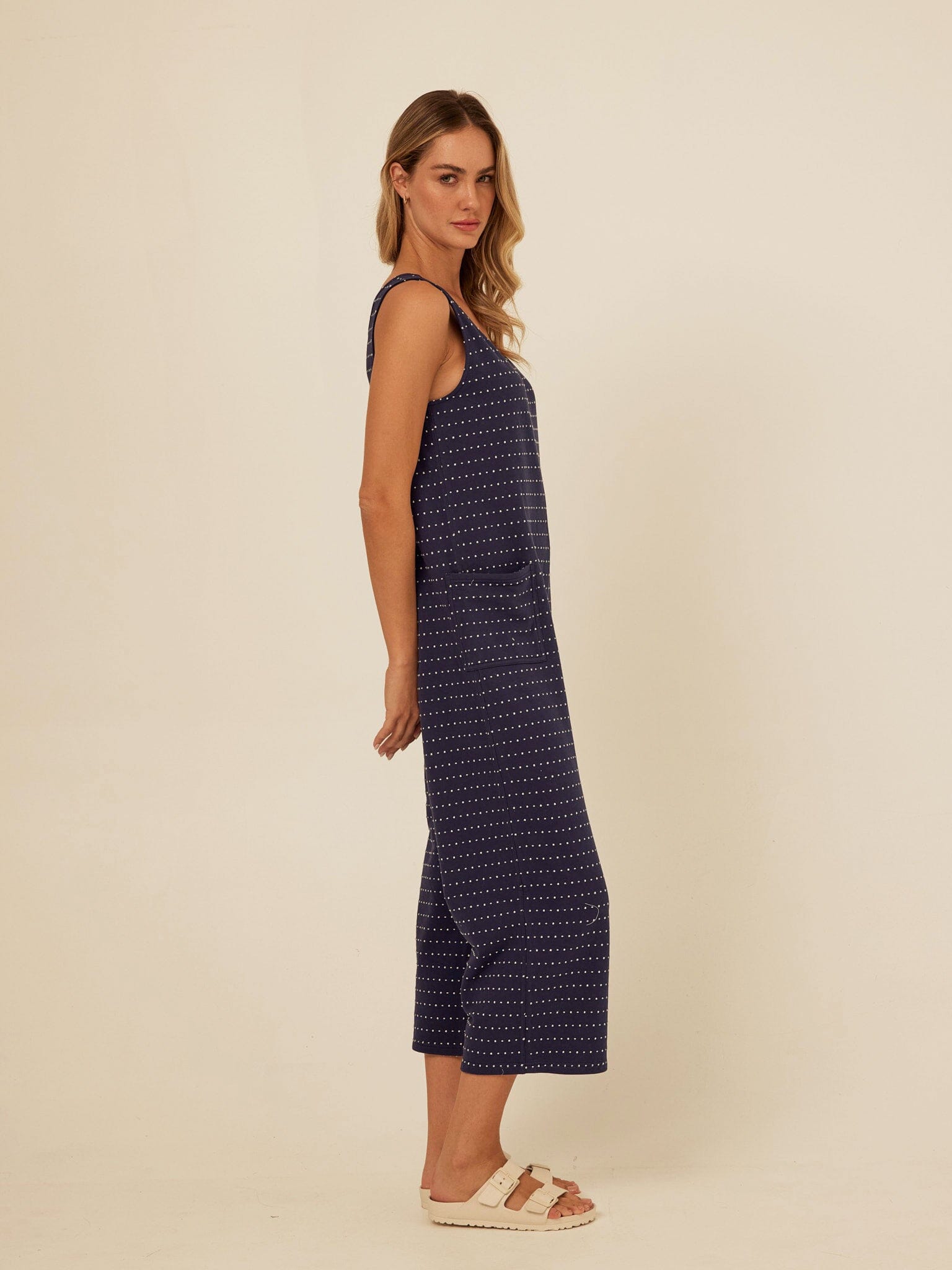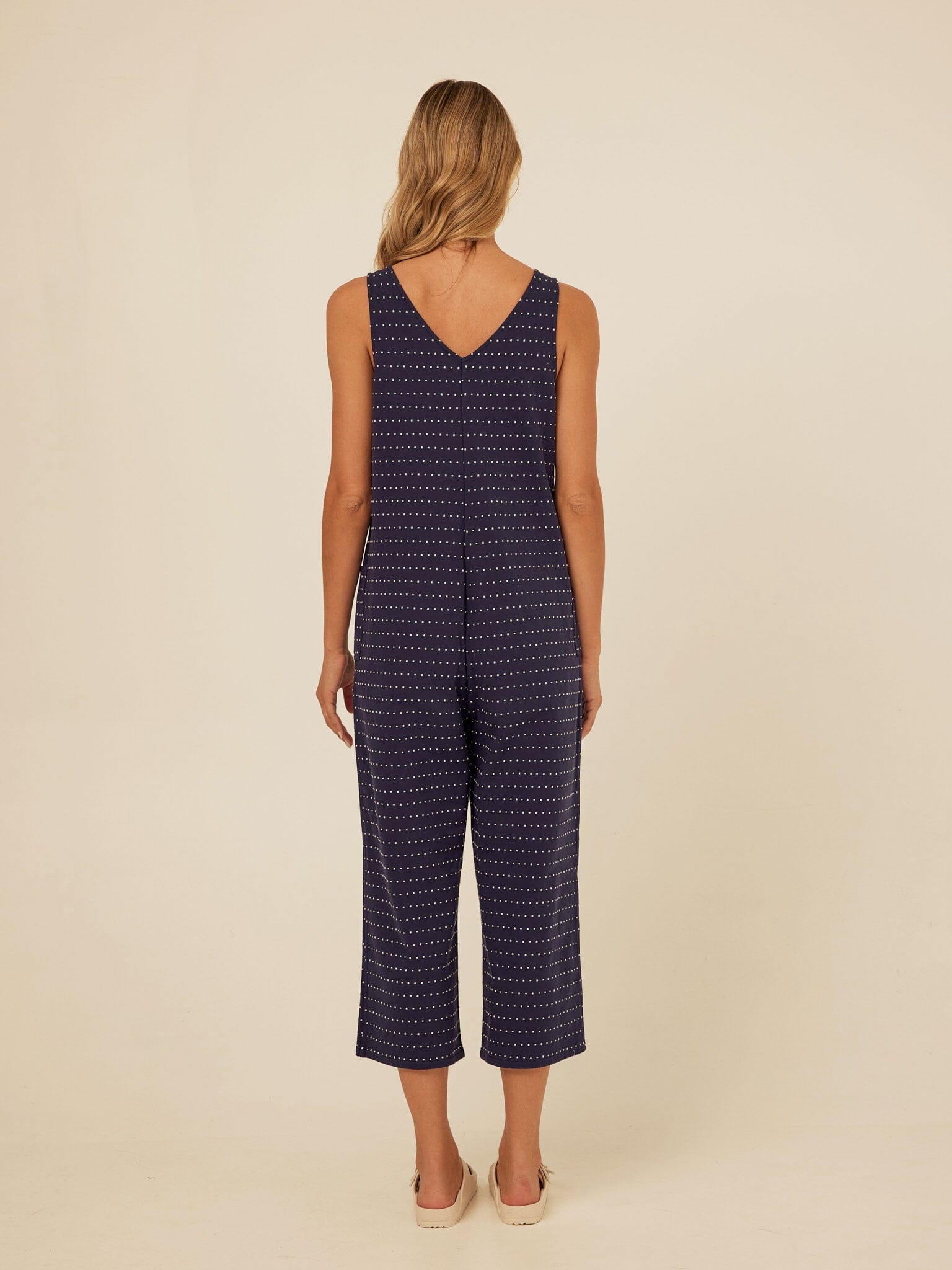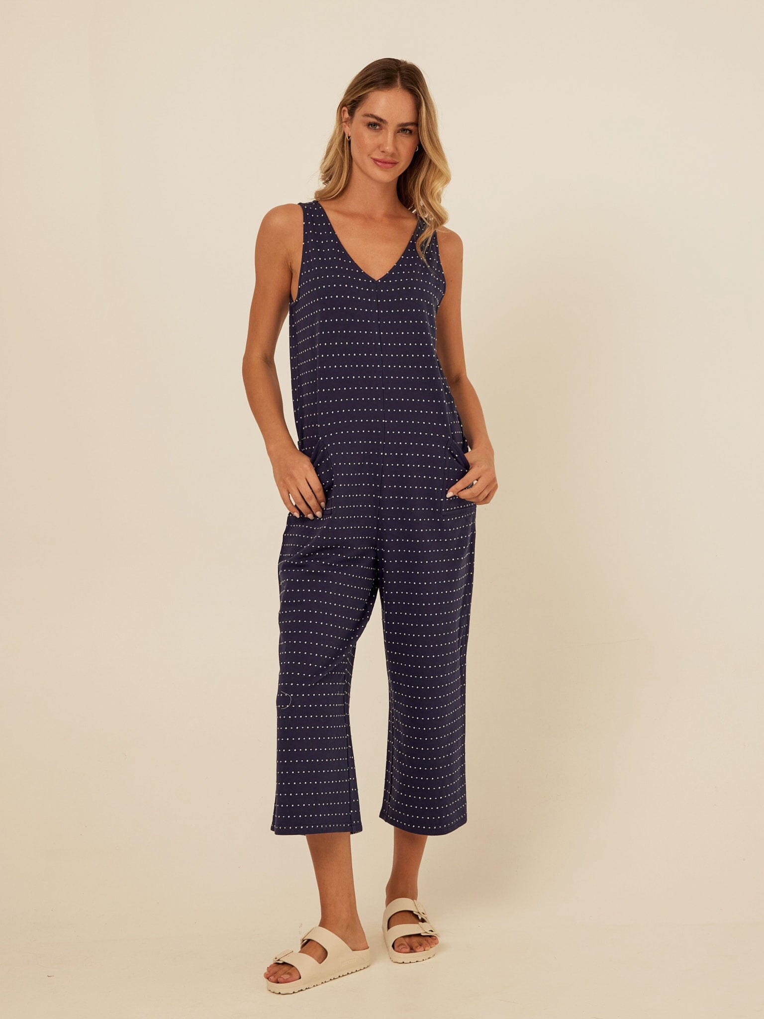 Rainey Dot Embroidered Terry Capri Jumpsuit