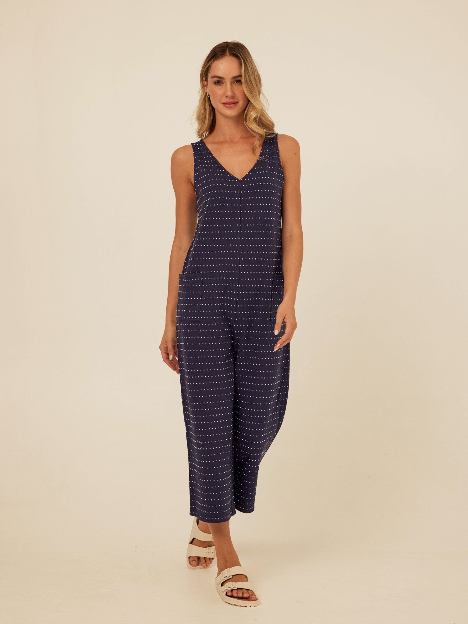 An updated take on our best-selling Rainey Jumpsuit. Designed with the same easy, relaxed fit you know, now in our dot embroidered terry for added texture and depth. Soft, comfortable, and made for everyday wear.