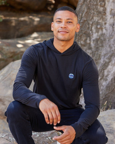 Made from our most popular jersey fabric, the eco-triblend, this long sleeve tee shirt pullover hoodie is the perfect year-round layering item to throw on over a tee or under a blazer. Featuring a small embroidery detail on the chest.
