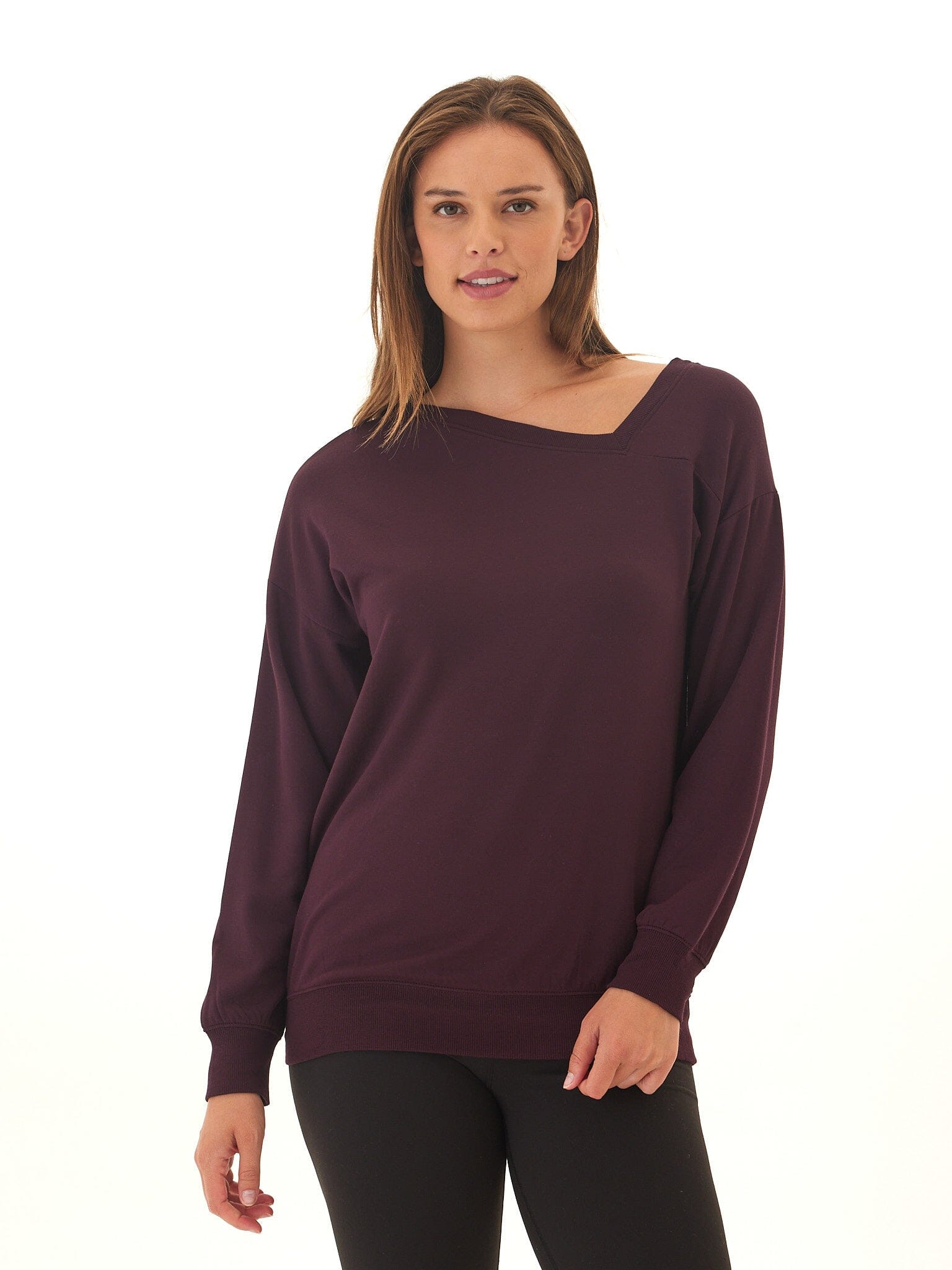Slip into effortless comfort with our Feather Fleece Asymmetrical Neck Pullover — where cozy meets modern design. Made from our ultra-soft Feather Fleece fabric, this lightweight layer delivers the perfect balance of warmth and breathability. Featuring a relaxed fit, ribbed cuffs and hem, and an off-shoulder neckline detail that adds a touch of sophistication to your everyday look. Perfect for lounging at home or pairing with leggings and denim for elevated ease.