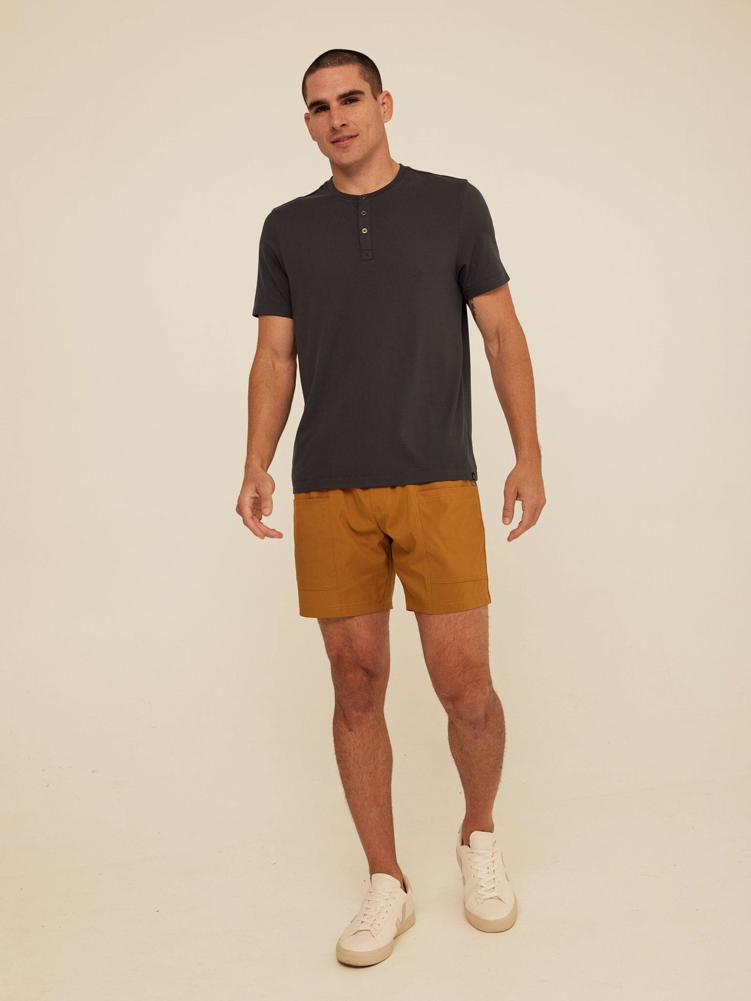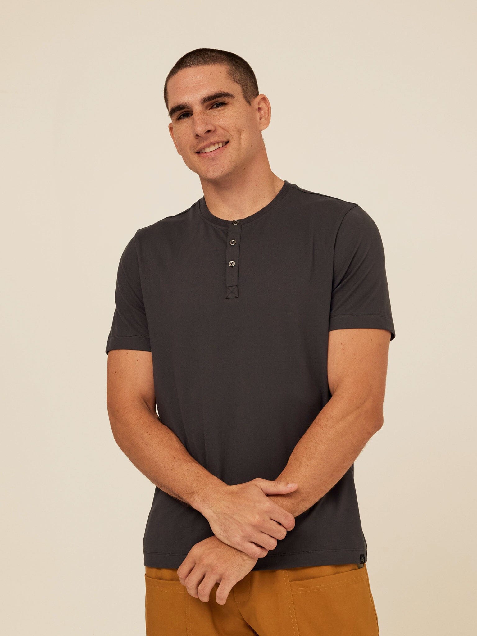 A refined essential, elevated. The Shayne Luxe Jersey Henley is crafted from our ultra-soft, breathable luxe jersey for a smooth feel and clean finish. Designed with a modern three-button placket, tailored fit, and short sleeves, it delivers everyday comfort with a polished edge.