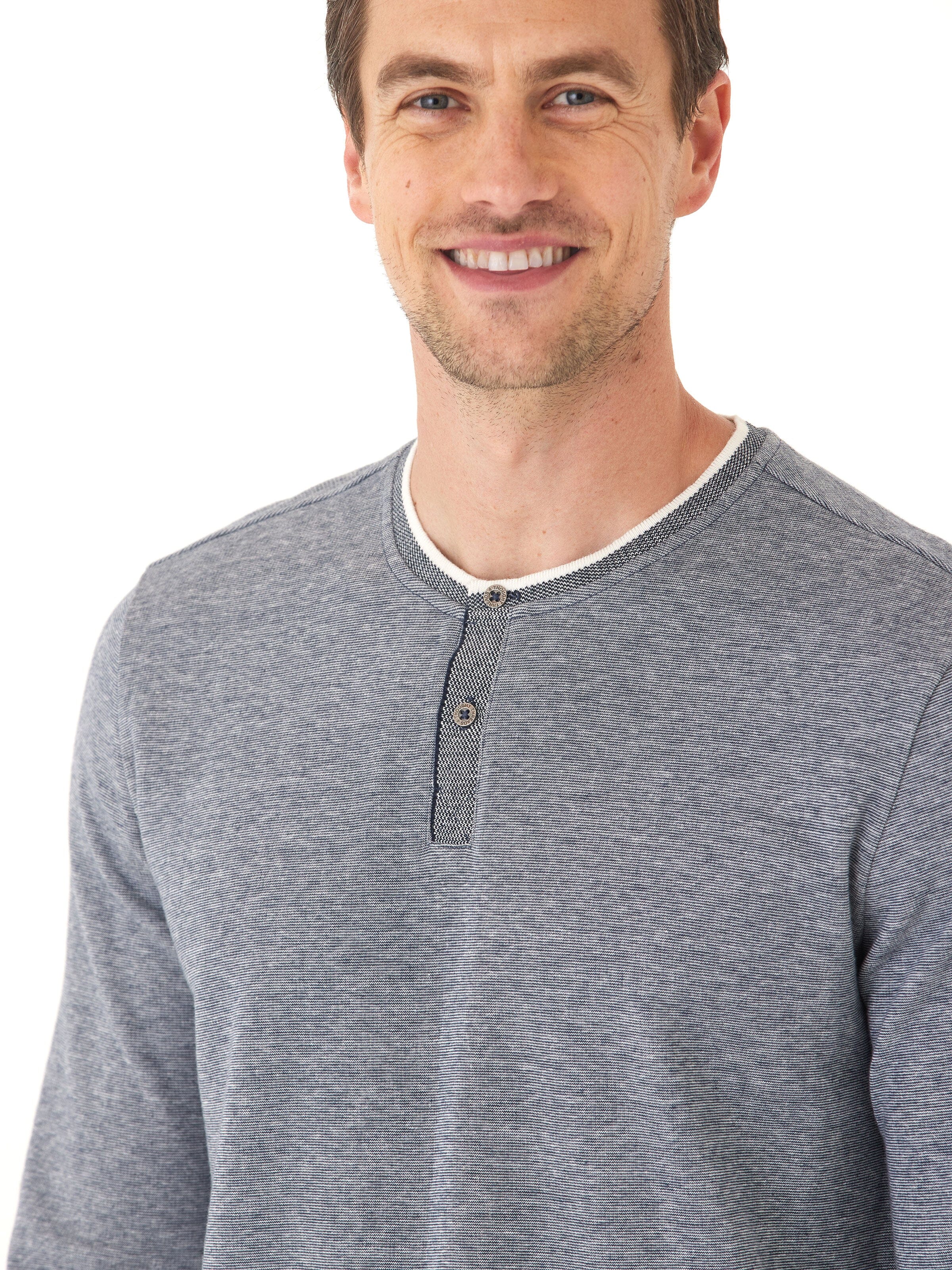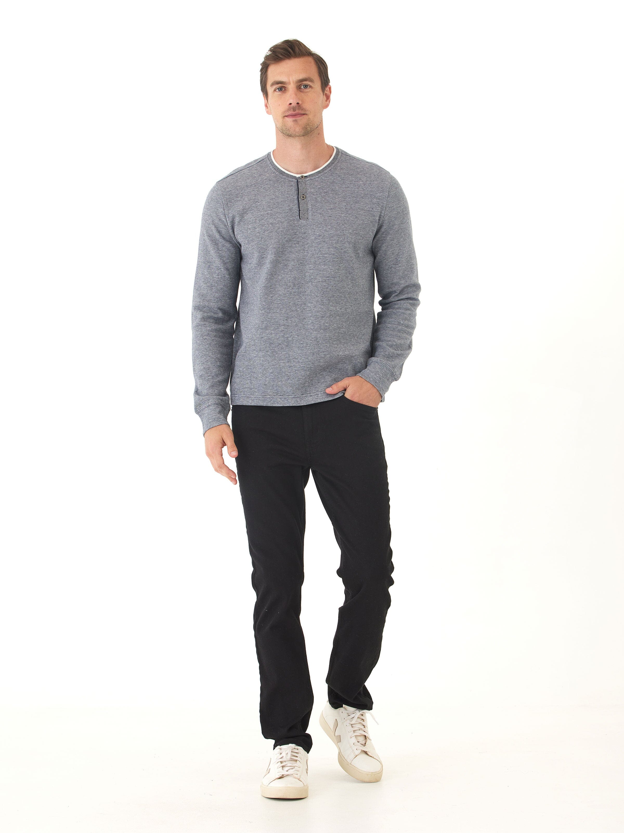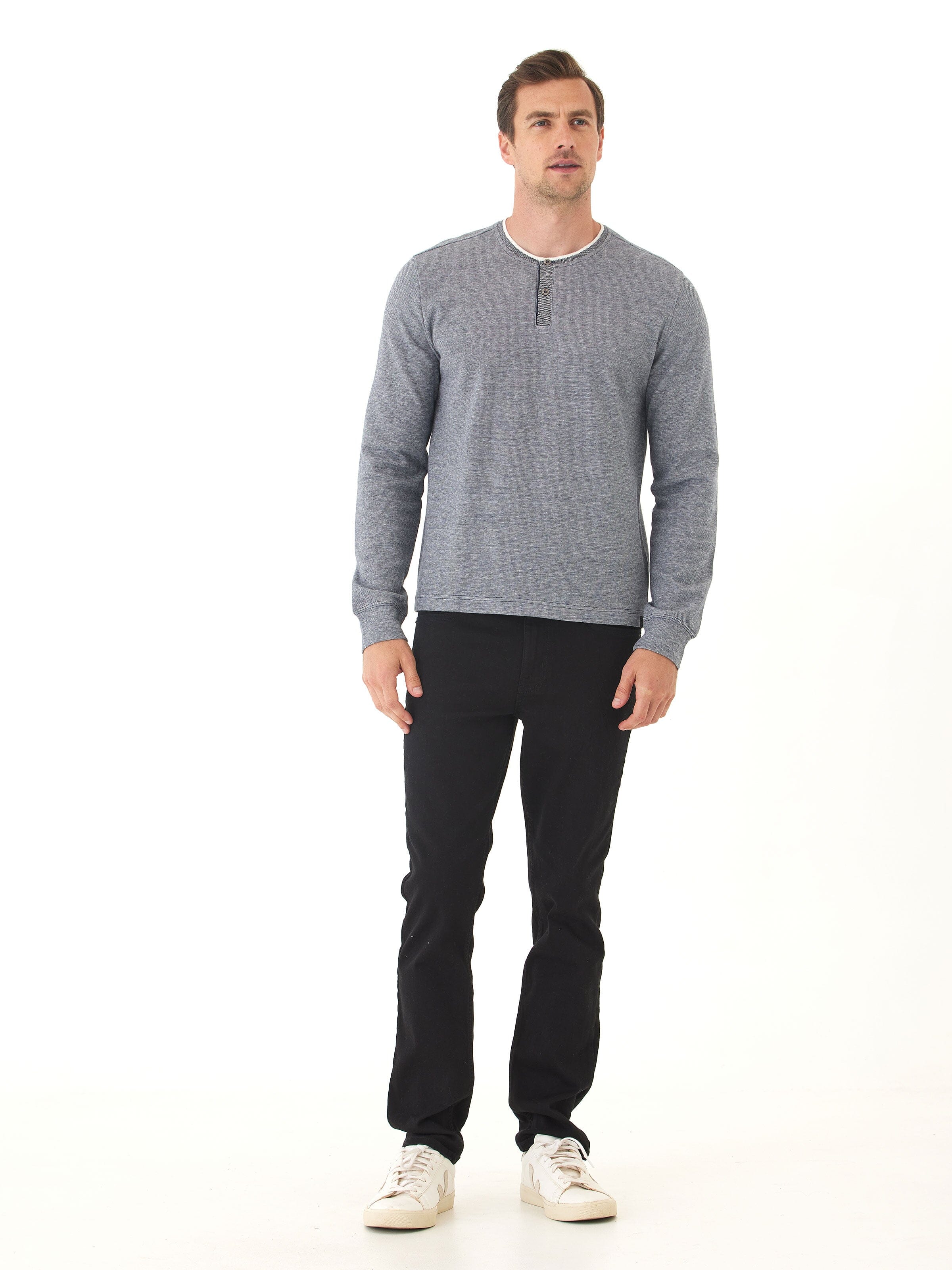 Elevated comfort meets everyday versatility. The Charles Henley is crafted from our sustainable Eco Double Knit fabric, offering a soft, structured feel with just the right amount of stretch. Finished with a three-button placket and ribbed cuffs, it’s the classic long sleeve you’ll reach for season after season.