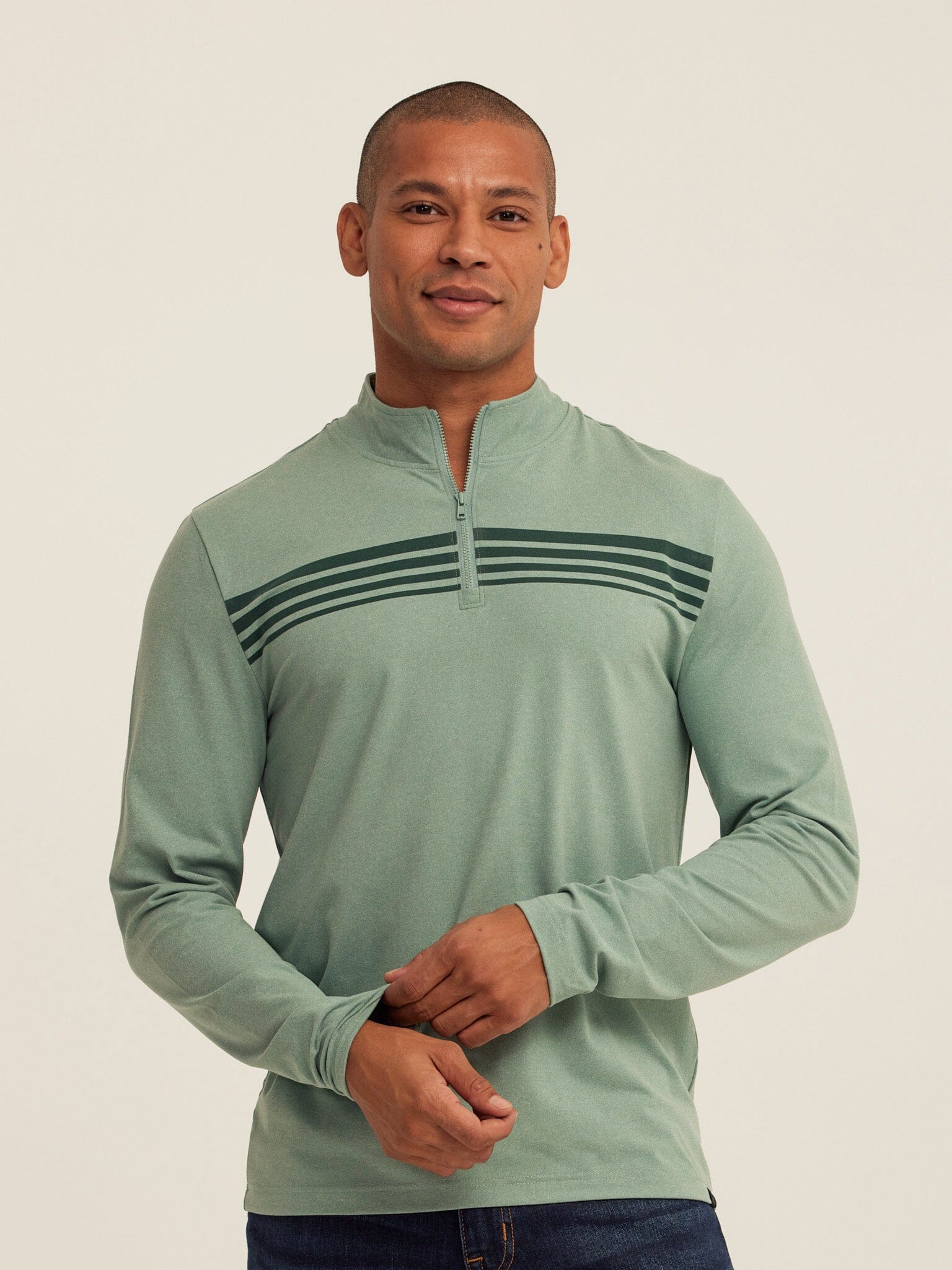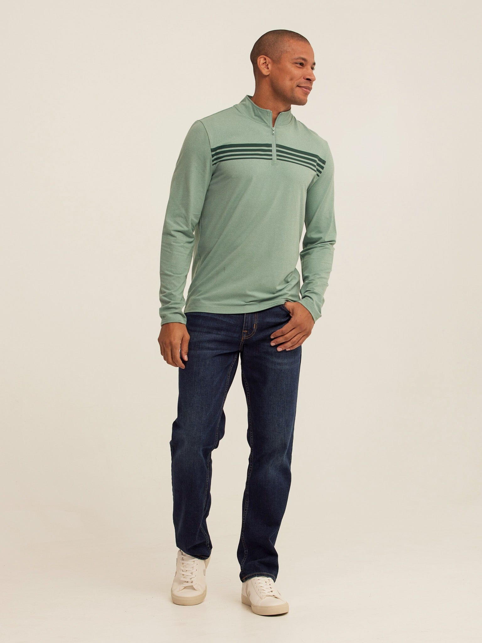 A refined layer designed for everyday ease. The Kace Quarter Zip is crafted from our smooth, lightweight Luxe Jersey with a clean drape and just-right stretch. Subtle chest striping adds a modern touch, while the quarter-zip neckline makes it easy to wear solo or layered. Comfortable, versatile, and effortlessly pulled together—this is the piece you’ll reach for on repeat.