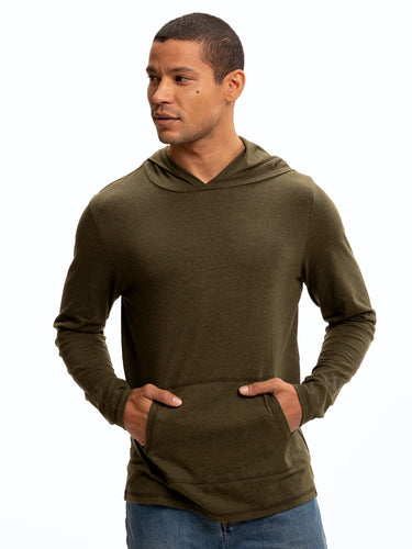 Made from our most popular jersey fabric, the eco-triblend, this long sleeve tee shirt pullover hoodie is the perfect year-round layering item to throw on over a tee or under a blazer.