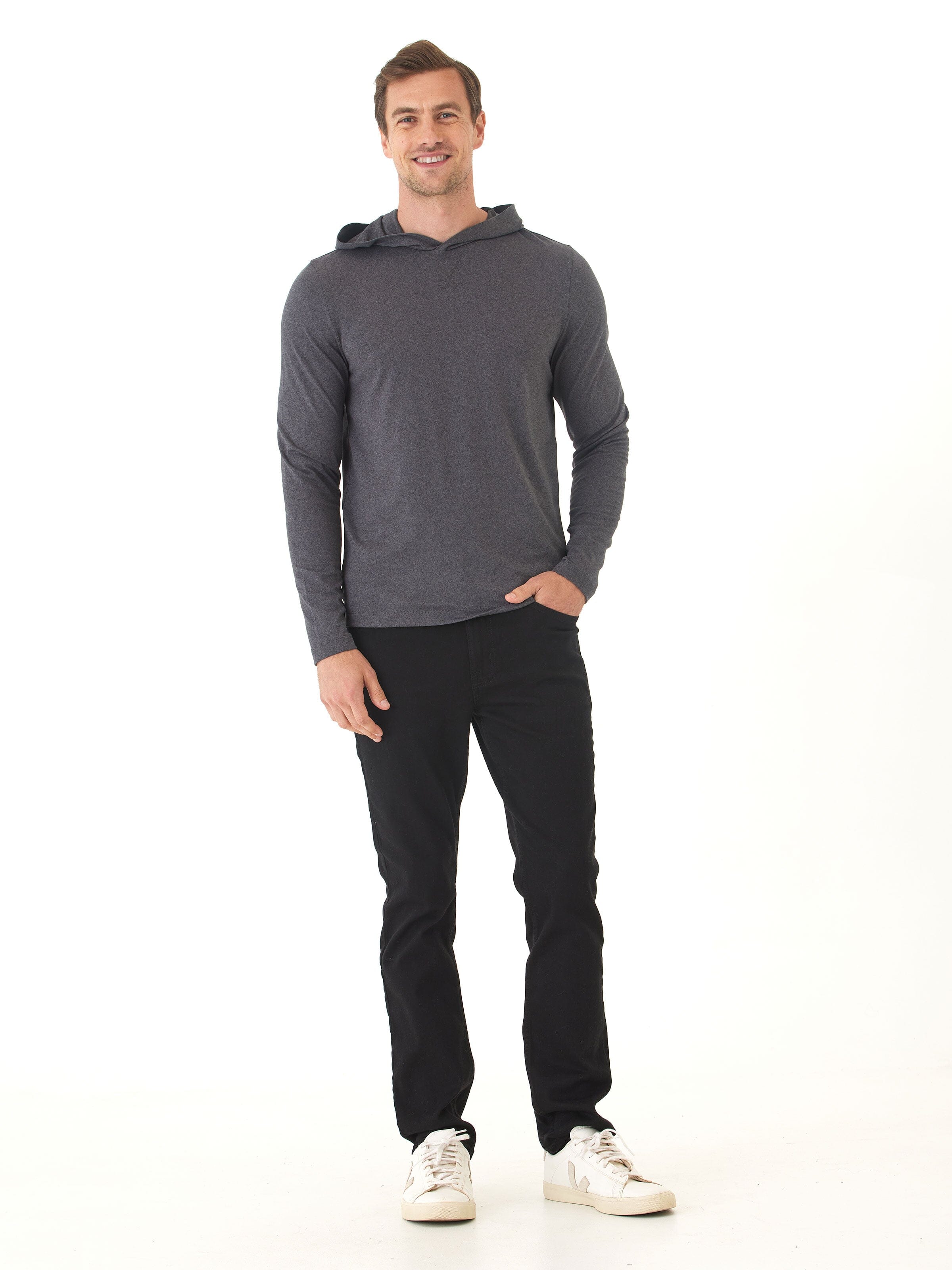 Our absolute softest jersey ever is made from recycled polyester & double brushed for pure comfort. The perfect fabric for your everyday activities, designed into a form fitting classic hoodie.
