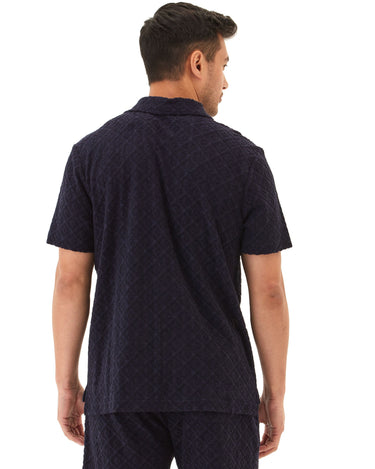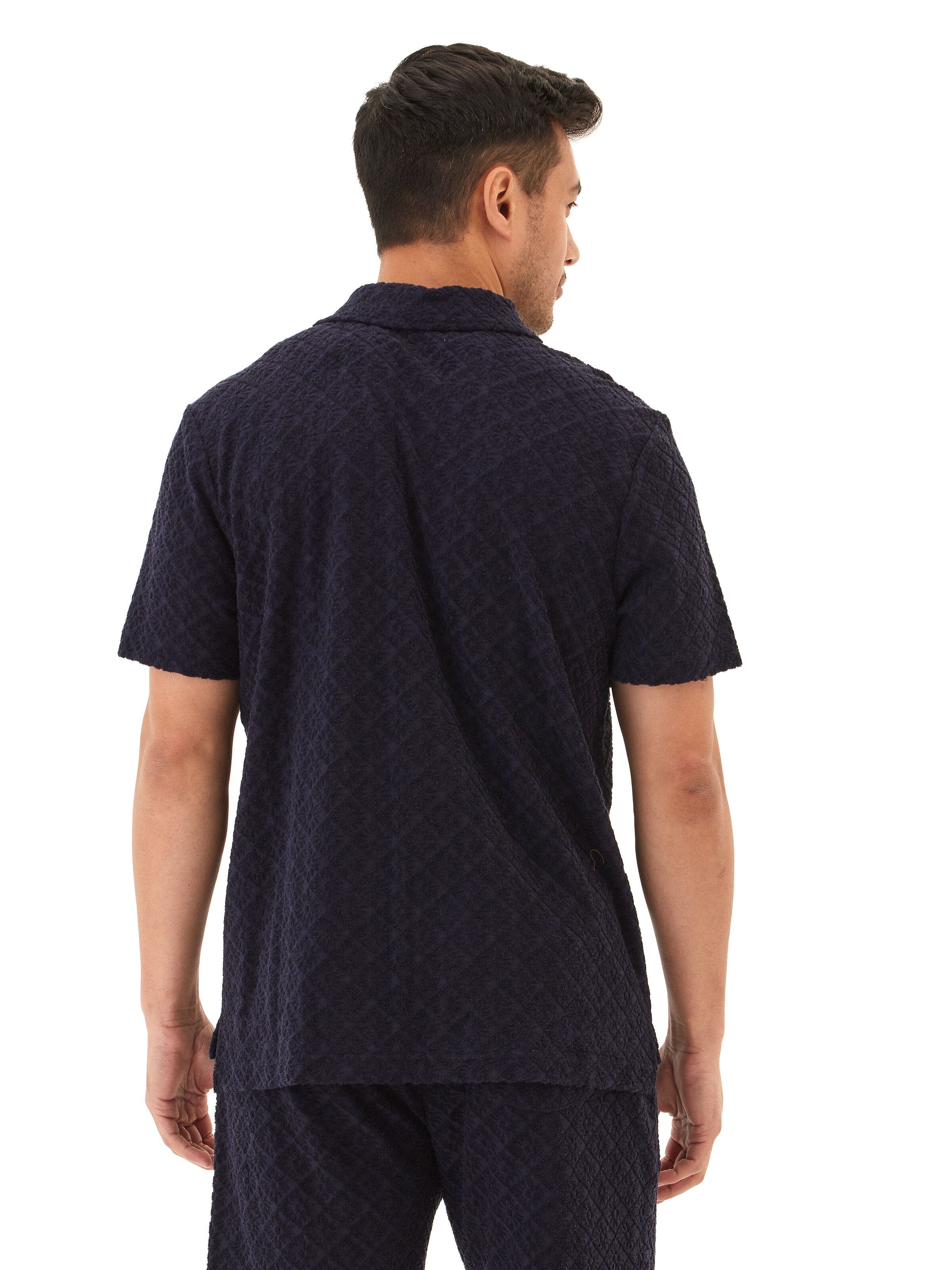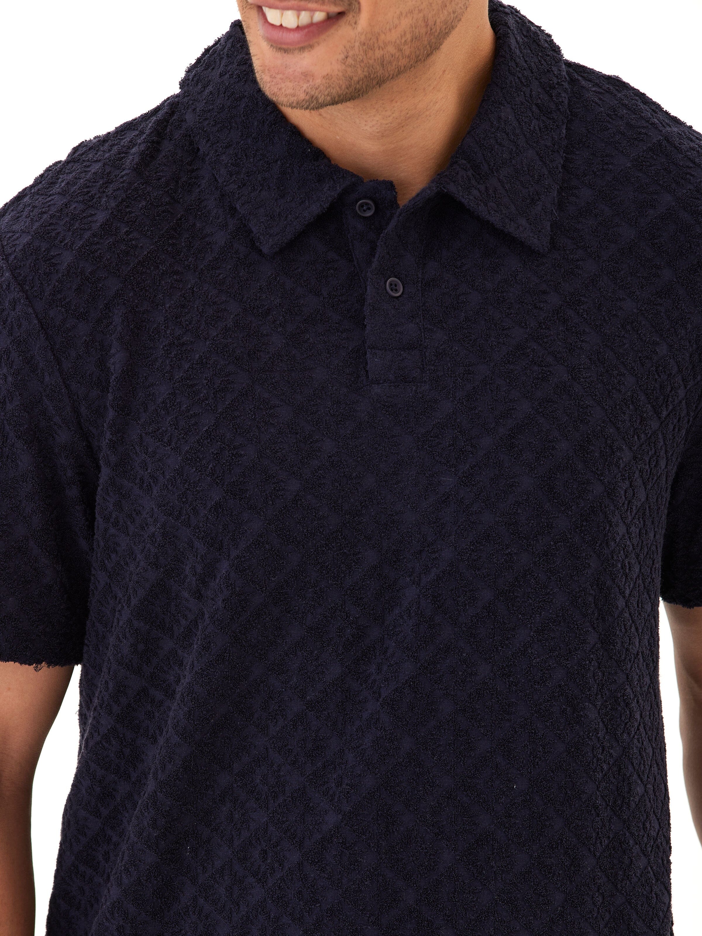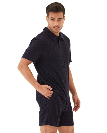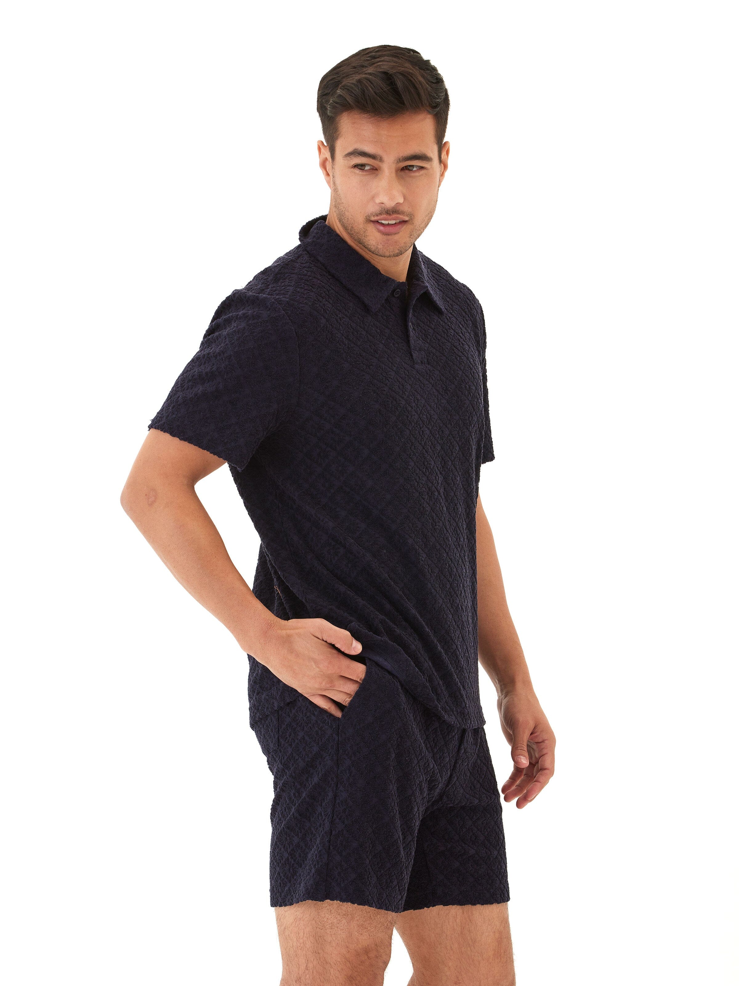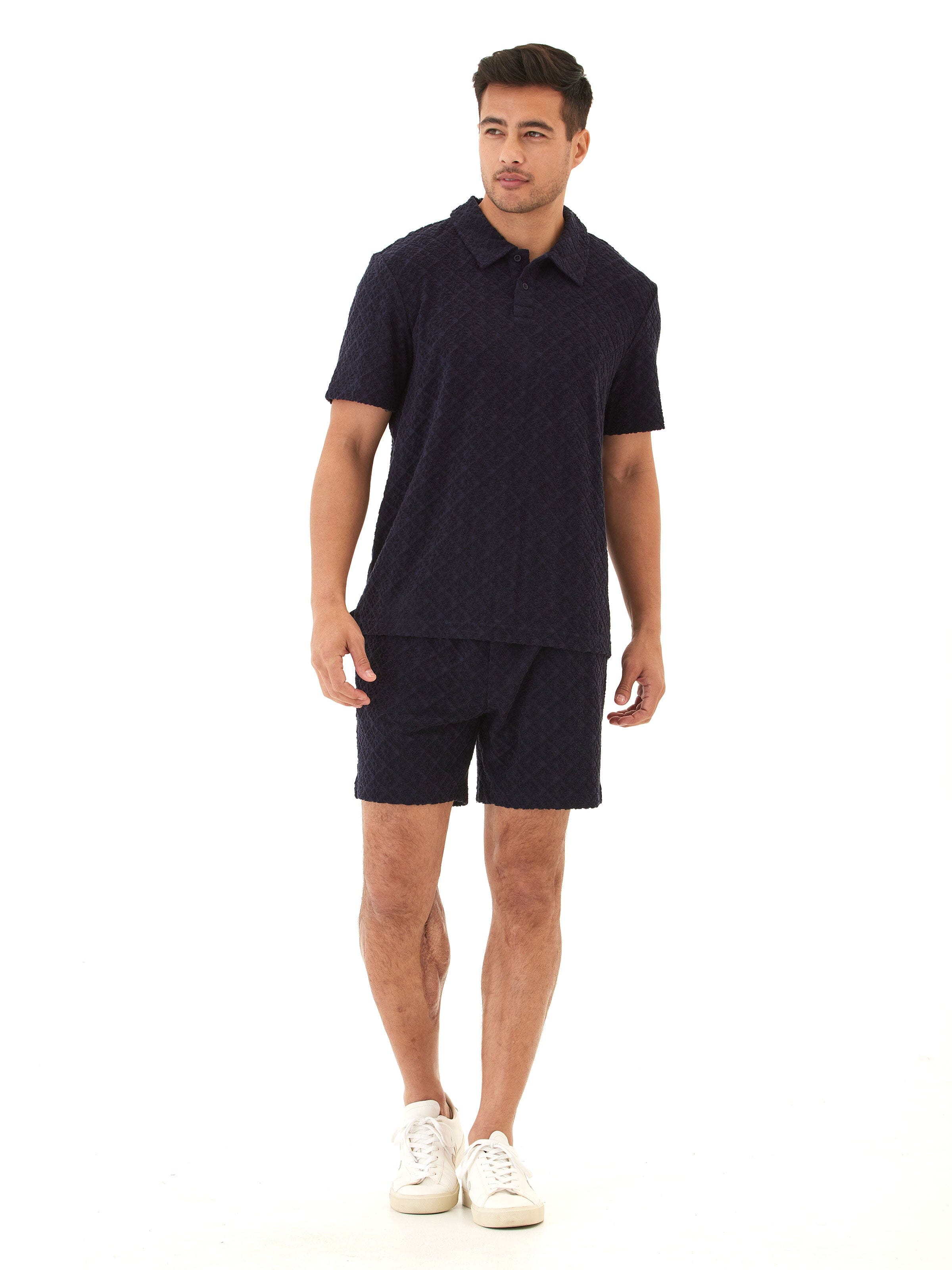 Made from our textured jacquard terry, this elevated essential brings a fresh feel to a timeless silhouette. With a relaxed fit, breathable fabric, and subtle diamond pattern, it’s the perfect blend of polish and comfort. Pair it with the matching shorts for a standout summer set.