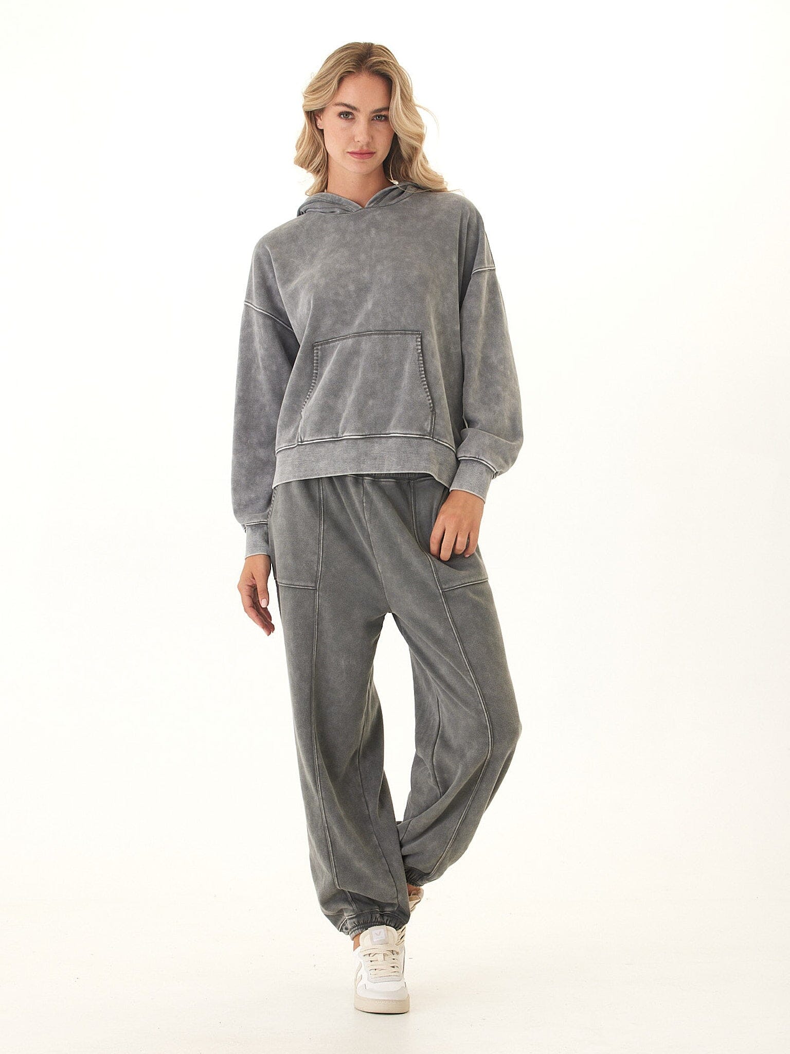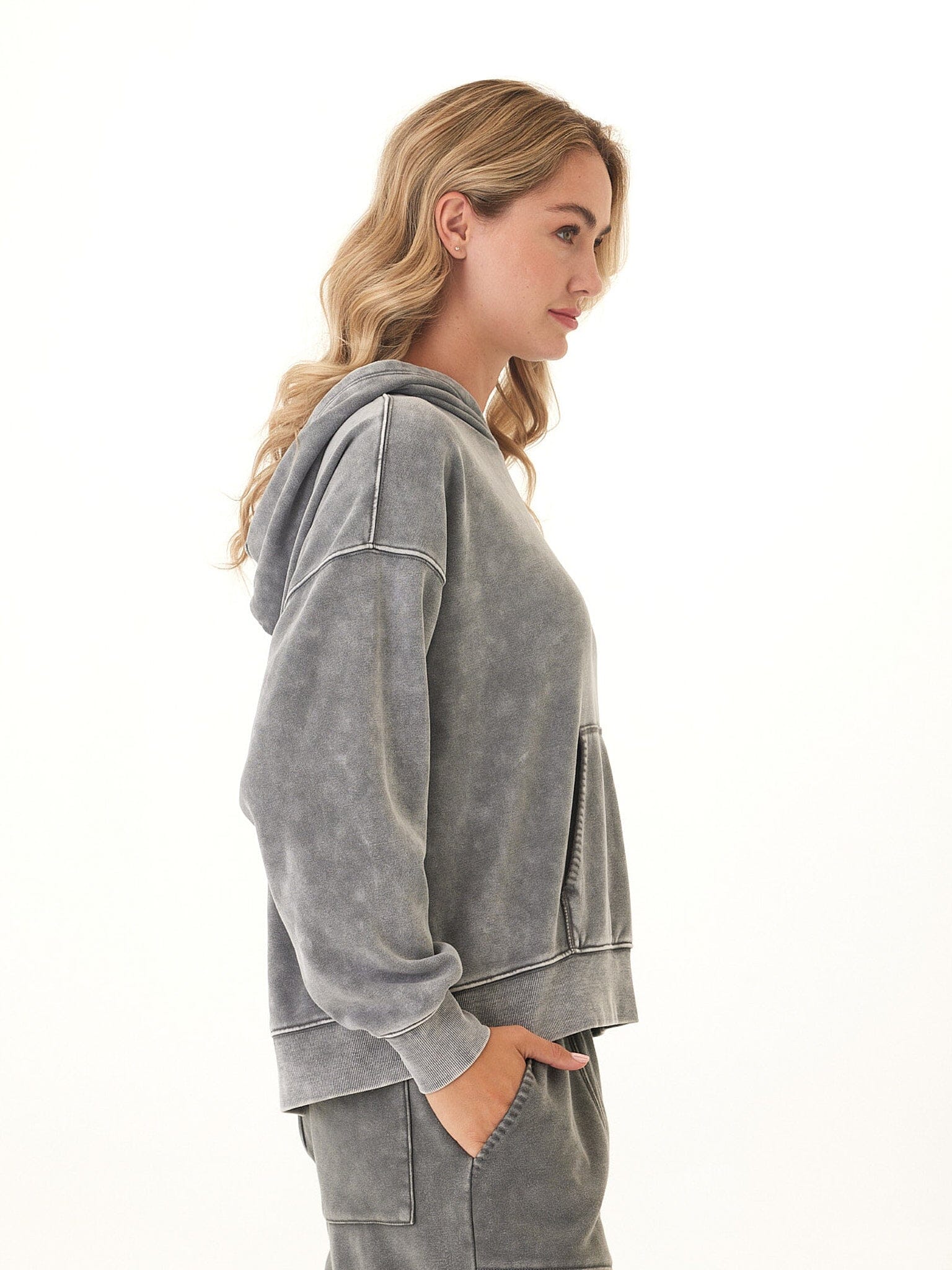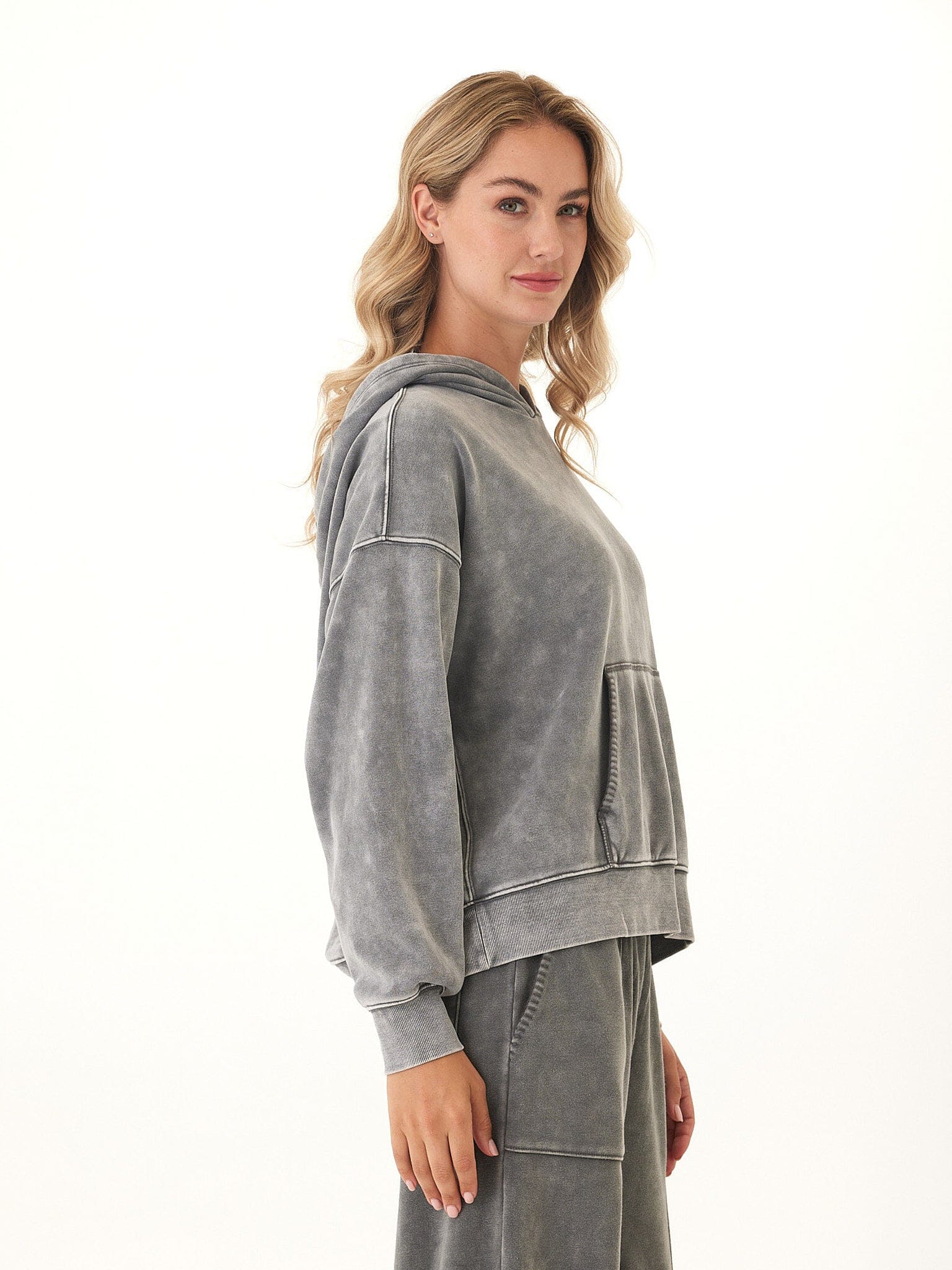 Marcellina Mineral Wash CVC Fleece Pullover Hoodie
