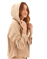 A modern take on a classic utility style, our Stretch Twill Hooded Jacket blends effortless style with all-day comfort. Made from our soft yet structured stretchy twill, this jacket moves with you while maintaining its flattering shape. Featuring a zip and snap-button front closure, roomy patch pockets, and adjustable roll-tab sleeves, it's designed for both function and versatility. The relaxed fit and lightweight feel make it the perfect transitional layer—whether you're running errands, heading outdoors, or simply elevating your everyday look.
