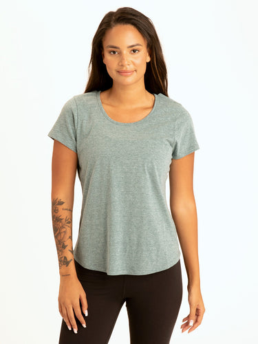 Made from Organic Cotton and Recycled Polyester, this elevated tee is sustainable and features a unique back detail.