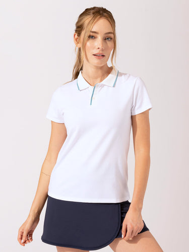 The Paulette Short Sleeve Polo is made from a stretchy, soft breathable active fabric that is designed to support your active lifestyle. This polo features two buttons and a color detail on the collar.