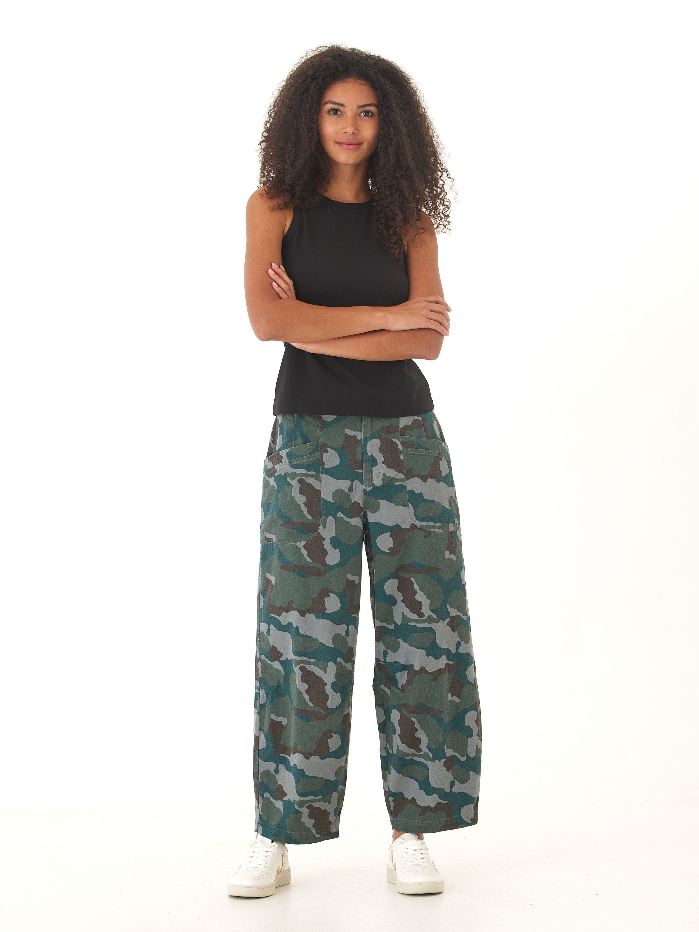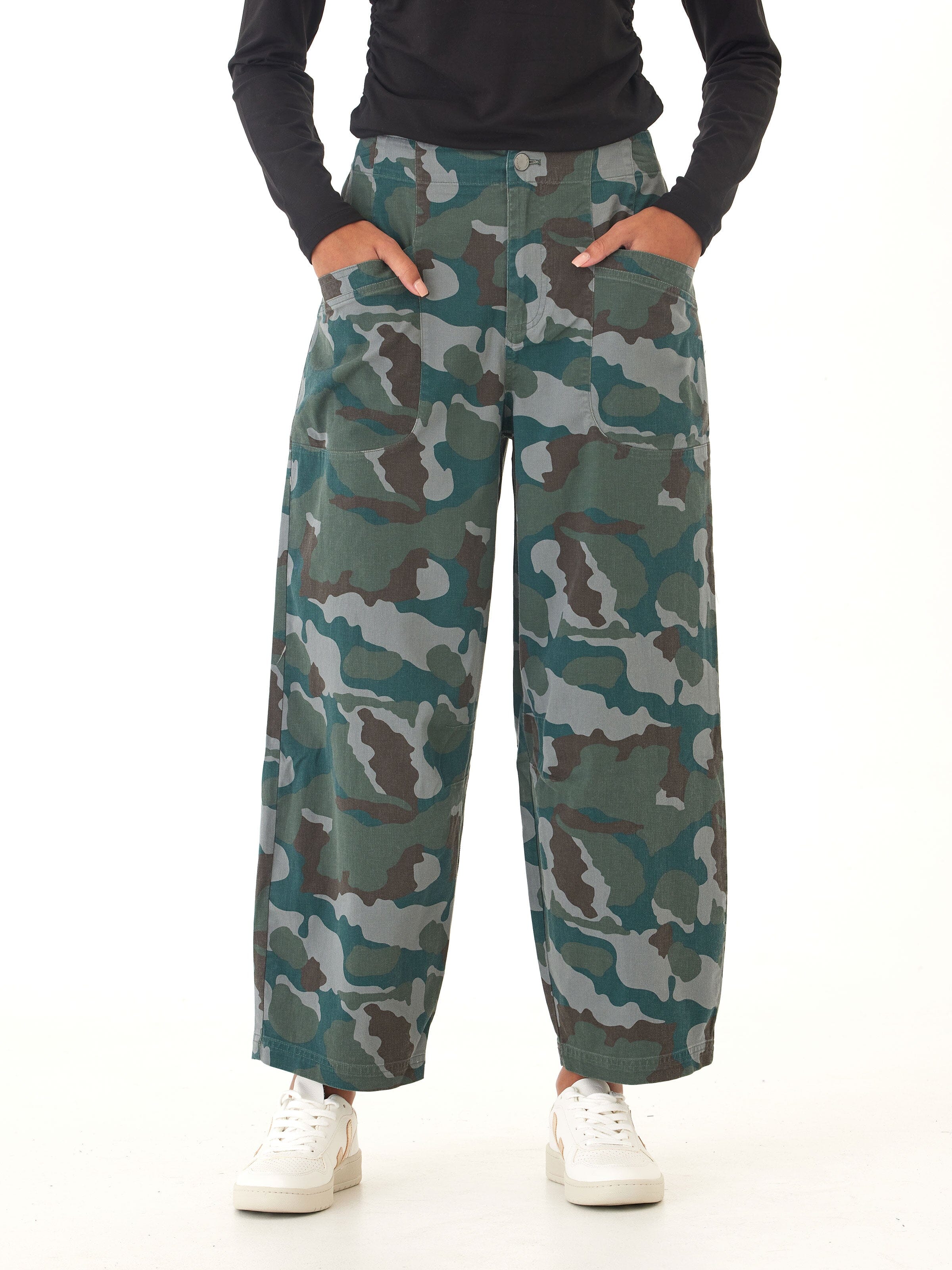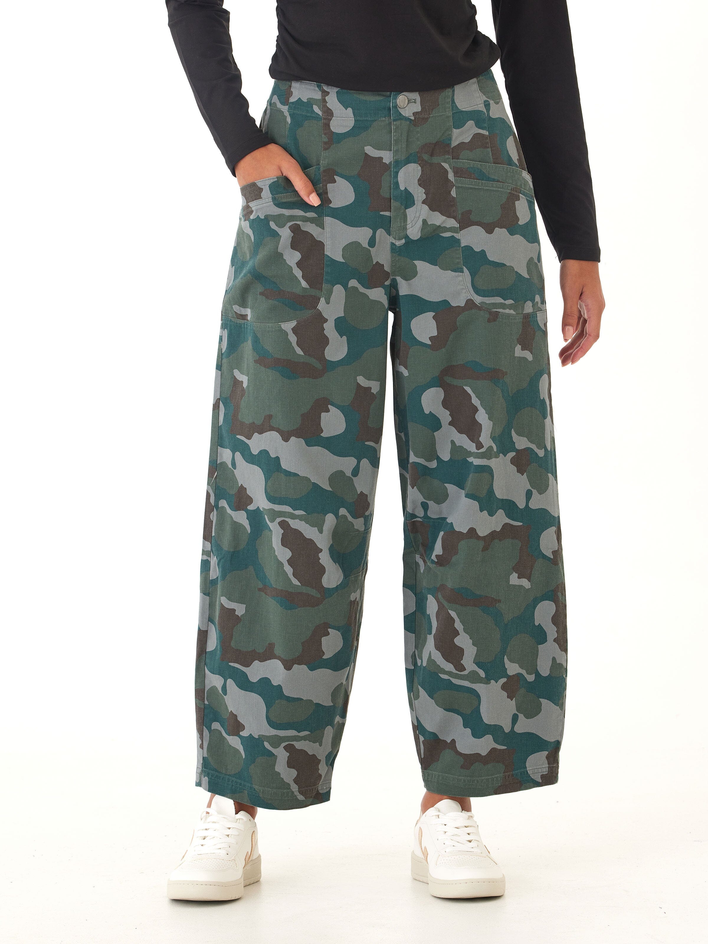 A modern twist on a timeless silhouette, the Lauren Pant brings comfort and structure together in perfect harmony. Crafted from soft stretch twill, this barrel-leg style features subtle pleating for shape, roomy patch pockets for utility, and an easy pull-on waistband with a zip-fly closure for a polished finish. The relaxed fit tapers gently at the ankle, giving it a flattering, contemporary look that pairs effortlessly with sneakers, boots, or flats.