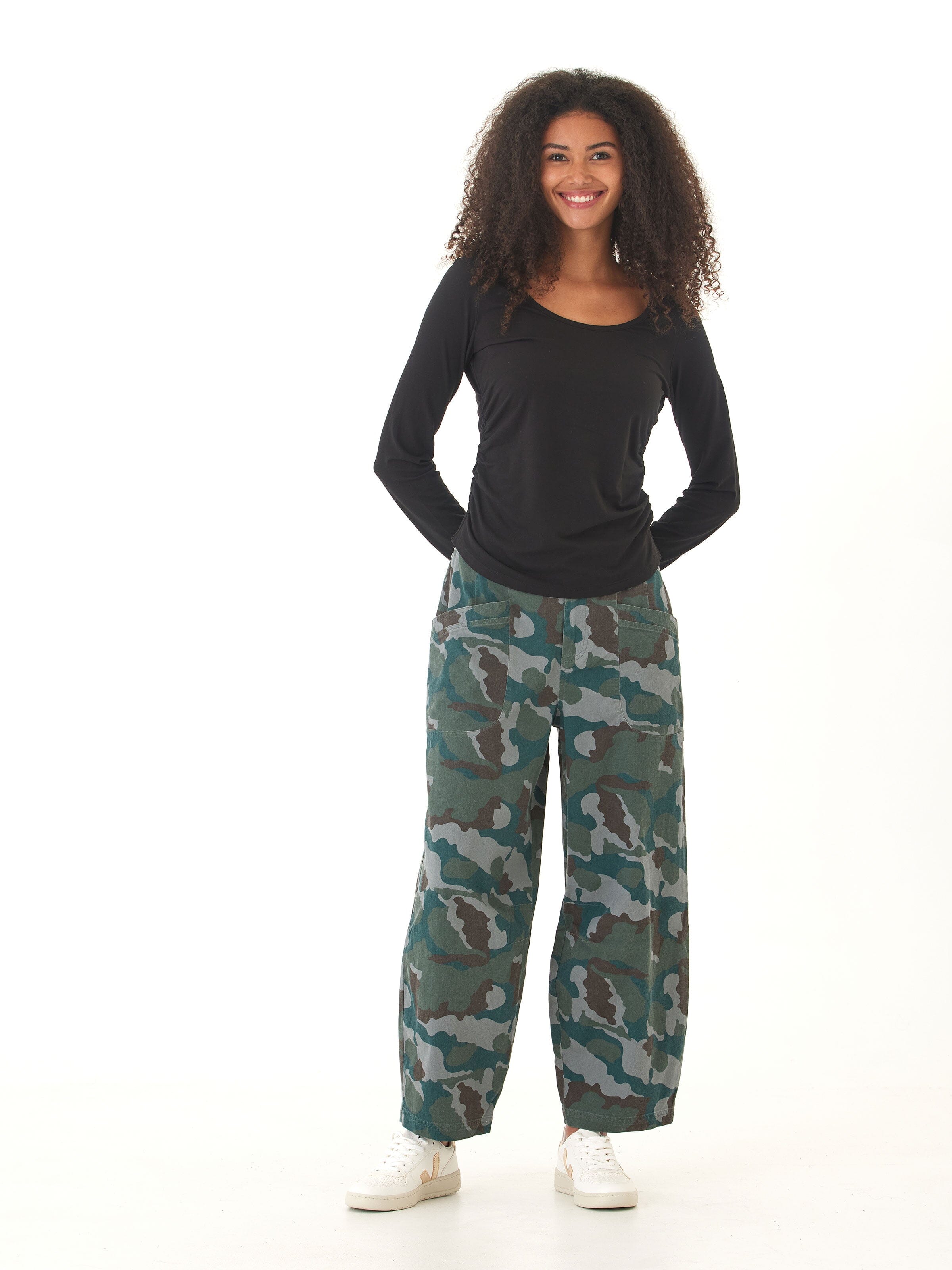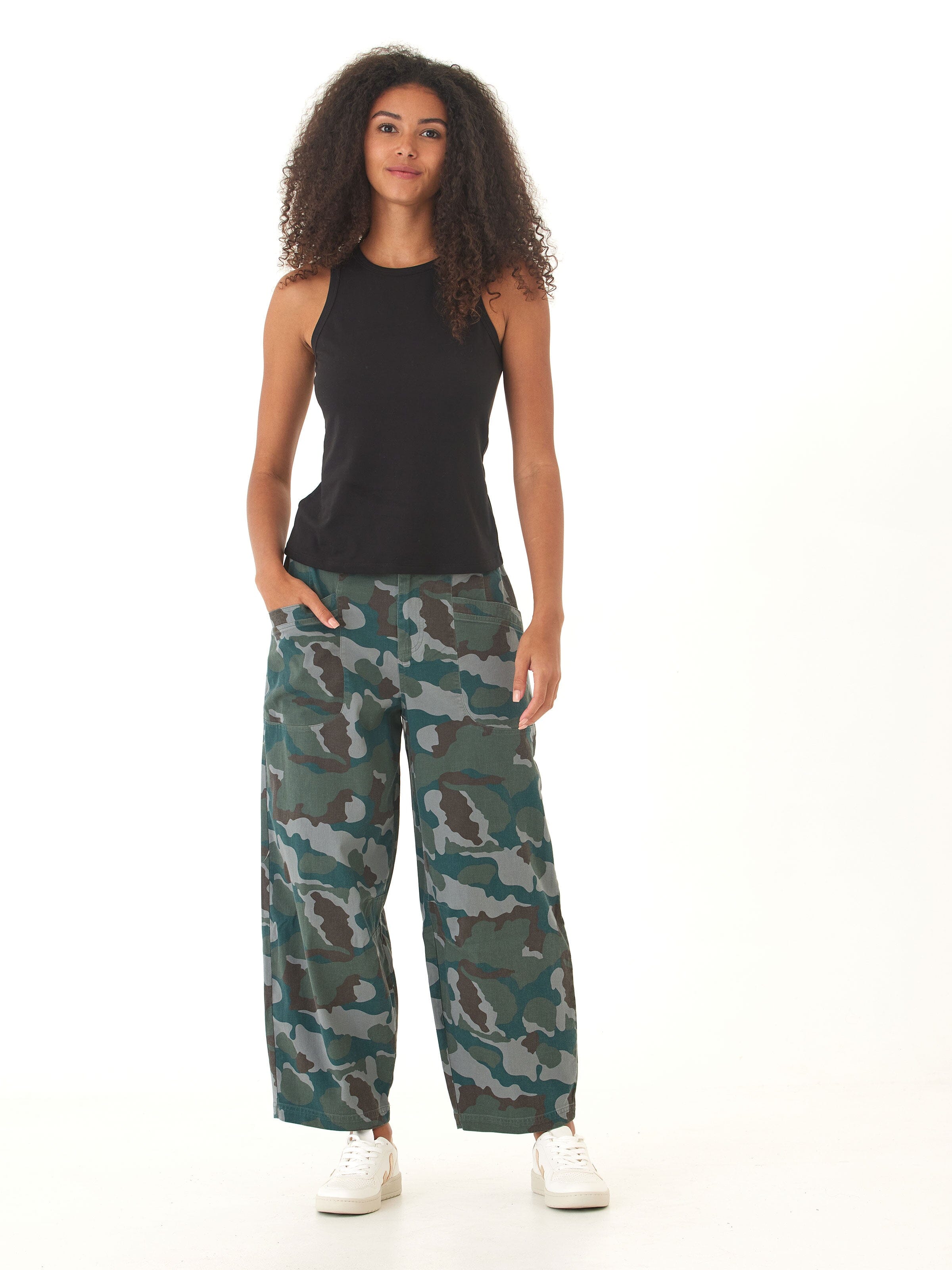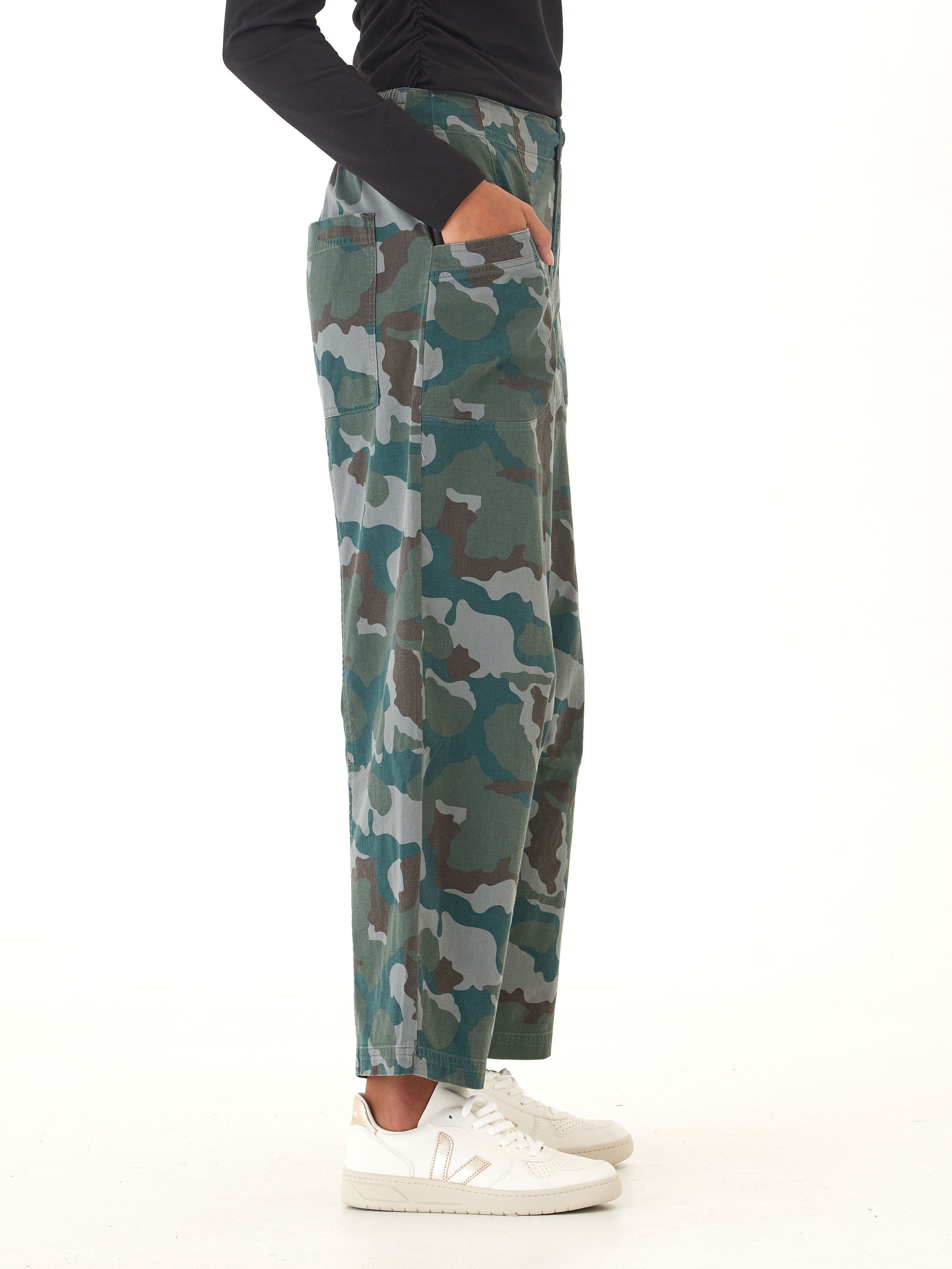 A modern twist on a timeless silhouette, the Lauren Pant brings comfort and structure together in perfect harmony. Crafted from soft stretch twill, this barrel-leg style features subtle pleating for shape, roomy patch pockets for utility, and an easy pull-on waistband with a zip-fly closure for a polished finish. The relaxed fit tapers gently at the ankle, giving it a flattering, contemporary look that pairs effortlessly with sneakers, boots, or flats.