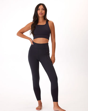 Pockets are everything. Work up a sweat in our Gianina Rib Mix Leggings, constructed with flat lock seams and made from our recycled eco power performance fabric. Featuring four-way-stretch, side pockets and rib detailing on the legs, this legging is the ultimate in sculpting, function and comfort. Made to move with you, these are the perfect leggings to run, stretch, twist and bend in through any workout.