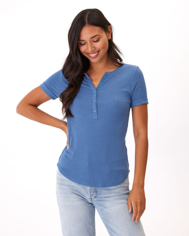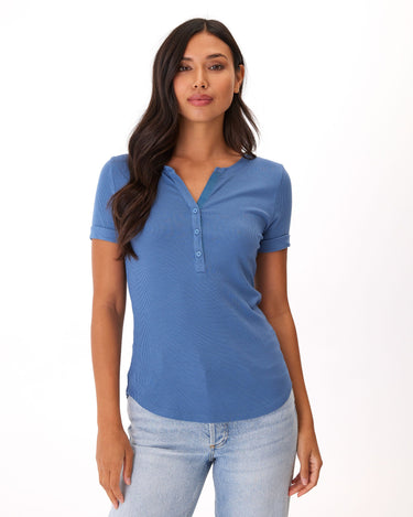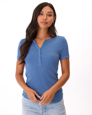 Introducing the Akia Feather Rib Henley Tee - the perfect blend of softness and style. With a ribbed texture and stretchy fabric, it offers a relaxed fit for all-day comfort. Complete with a 3 button detail and cuffed sleeves, this tee is a must-have for any wardrobe.