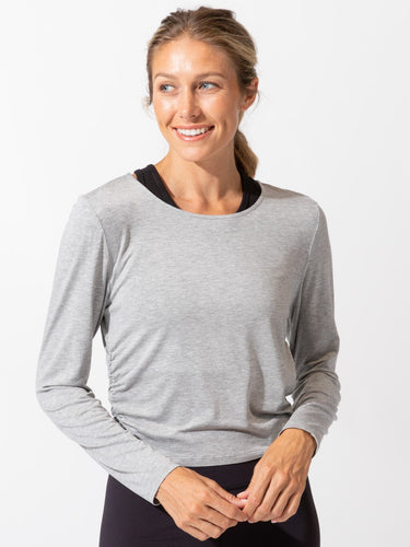 The Amabella top is silky soft you'll never want to take it off. Perfect for wearing over your workout fit or pair with jeans to dress it up. Featuring gathered sides and thumbholes, this elevated long sleeve is a fashionable option for the chilly days!
