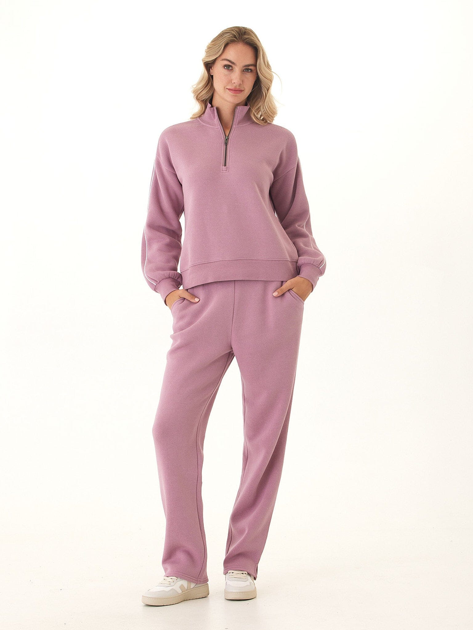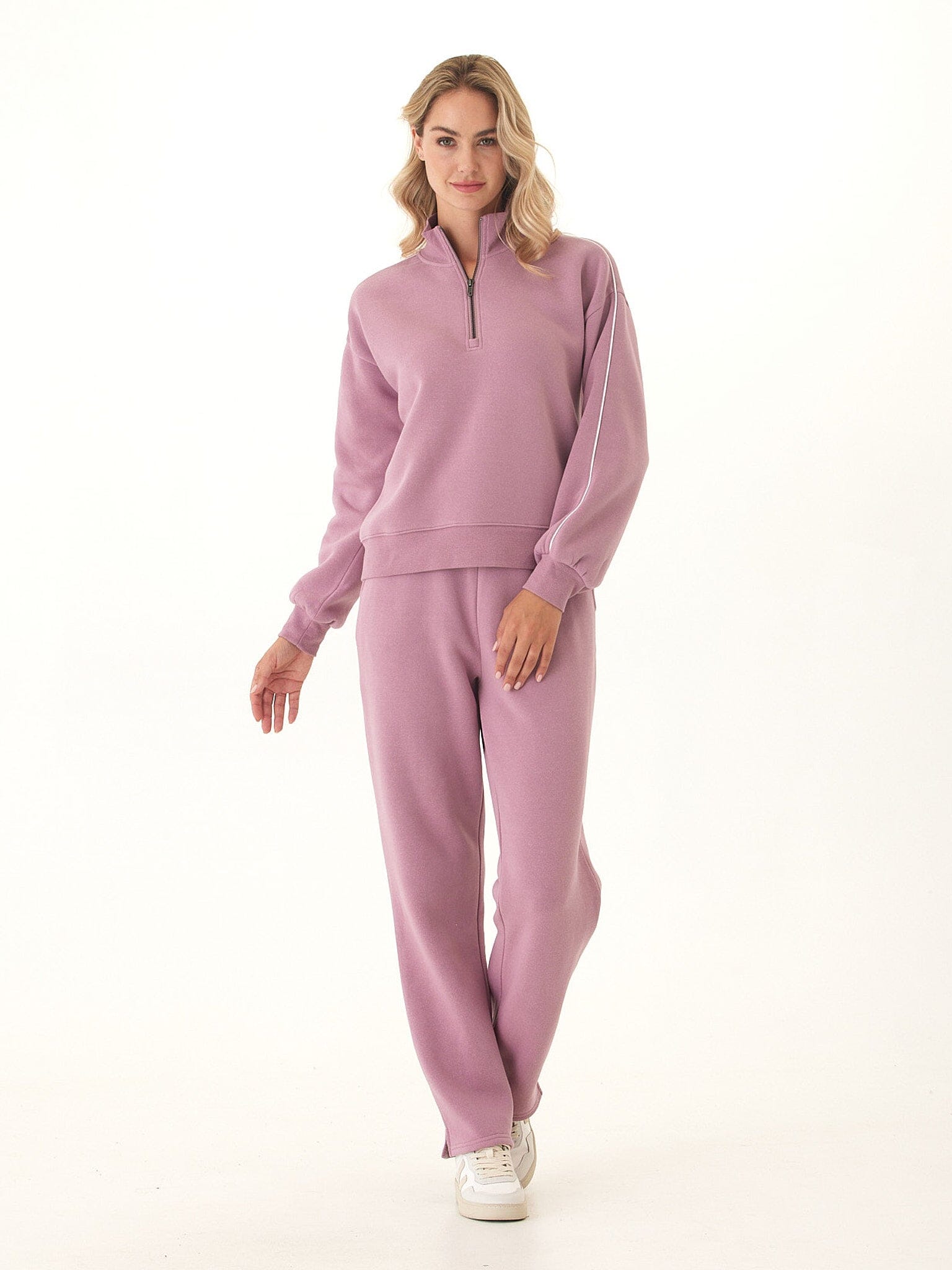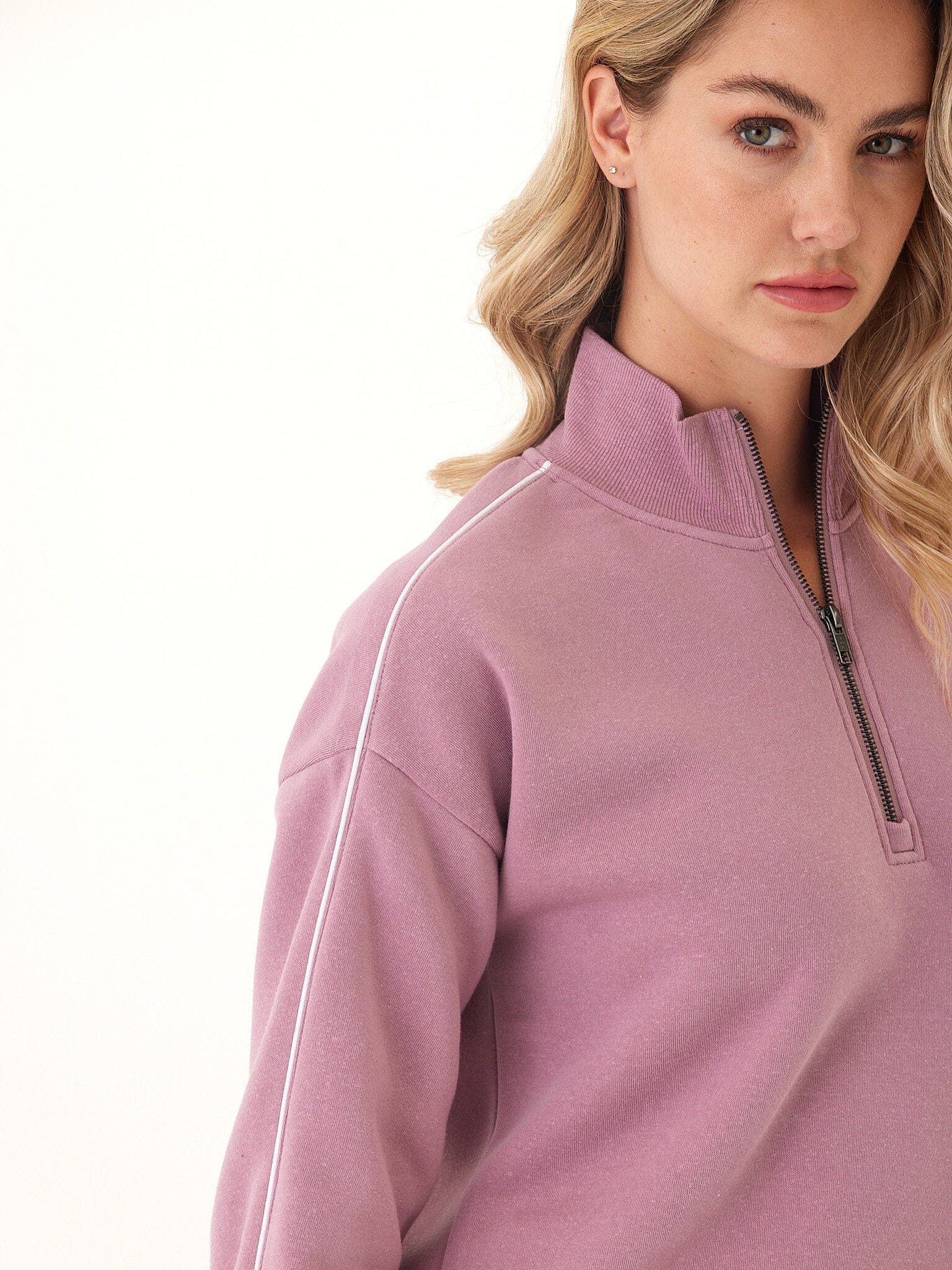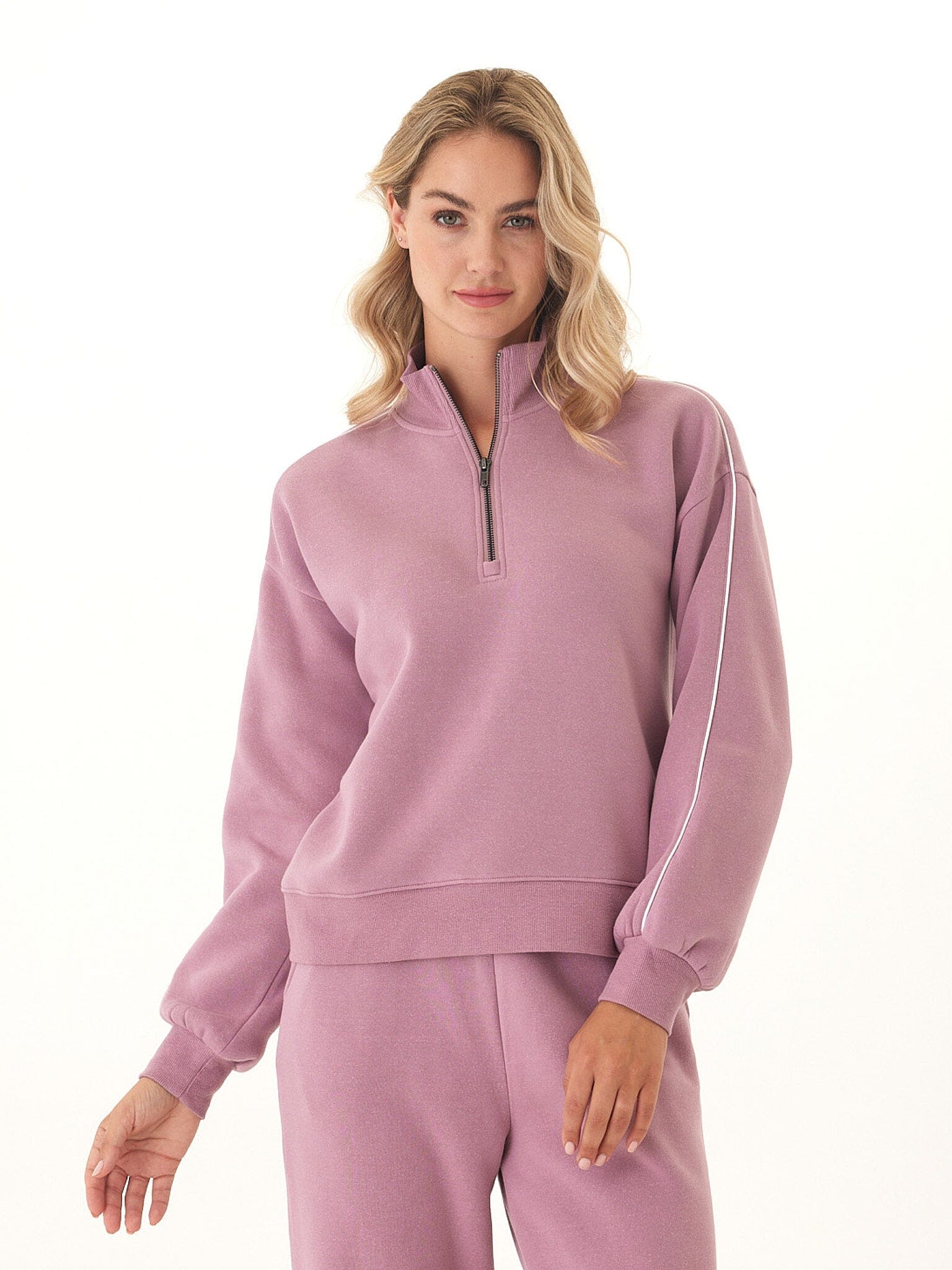 A modern update to your favorite fleece. The Constance Half Zip features subtle piping details and a relaxed, boxy silhouette that blends comfort with contemporary style. Crafted from our signature Triblend Fleece, it offers lightweight warmth and a luxuriously soft feel. The stand collar and half-zip neckline make it easy to layer, while ribbed cuffs and hem provide a clean, polished finish. Perfect for pairing with matching joggers or elevating your everyday look.