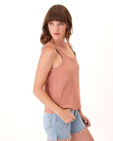 Made from 100% Organic Cotton, our Gauze collection is sustainable and soft. The Syrena is flowy and features an elegant classic scoop design.