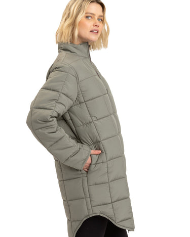 The Azima Packable Long Puffer Jacket is lightweight and designed to pack into an interior pocket with a reversible zipper, and wrist strap for easy carrying. The perfect everyday layer to keep up with your active lifestyle.