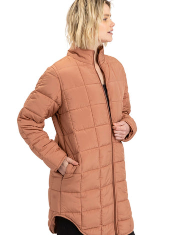 The Azima Packable Long Puffer Jacket is lightweight and designed to pack into an interior pocket with a reversible zipper, and wrist strap for easy carrying. The perfect everyday layer to keep up with your active lifestyle.