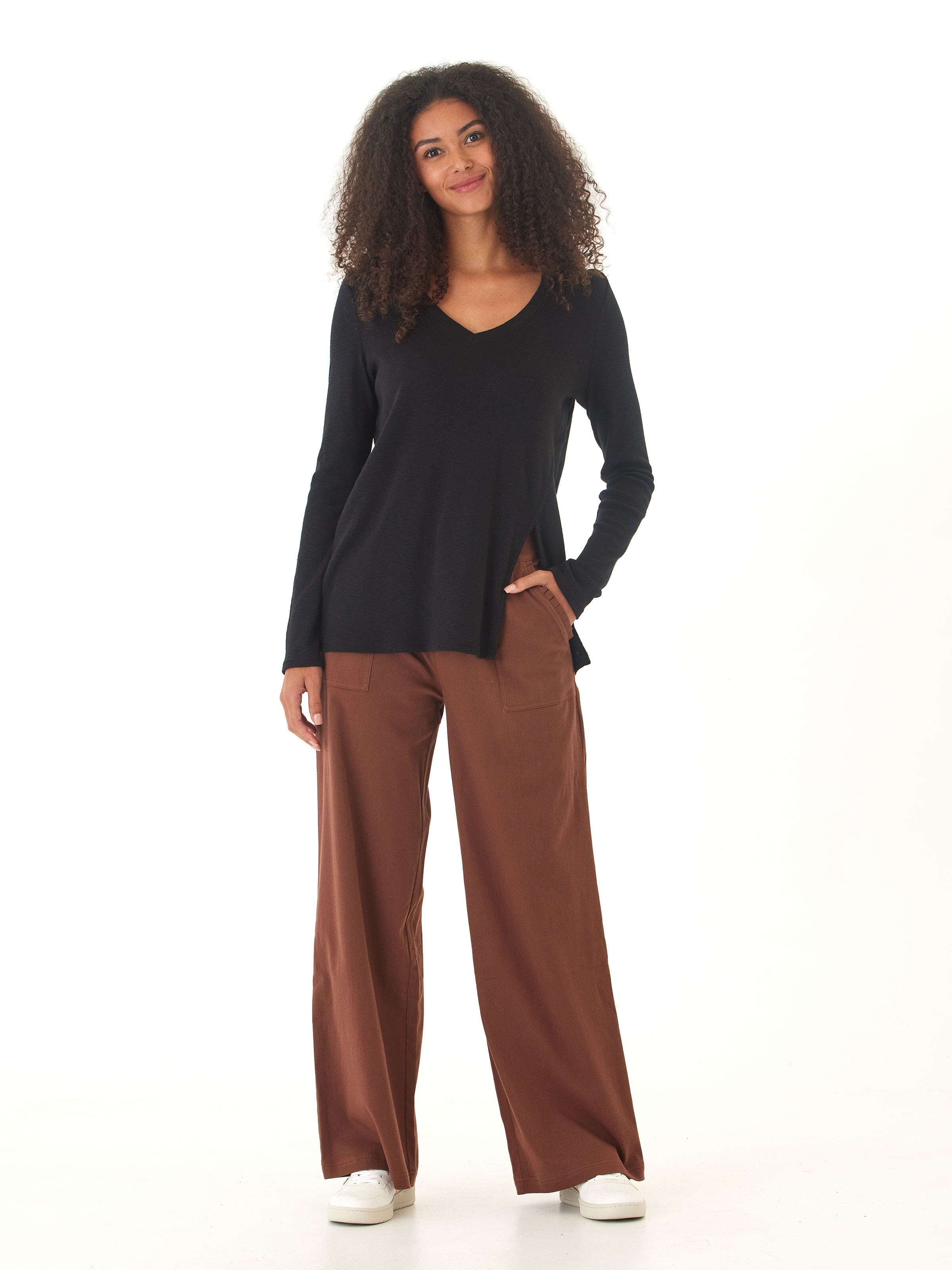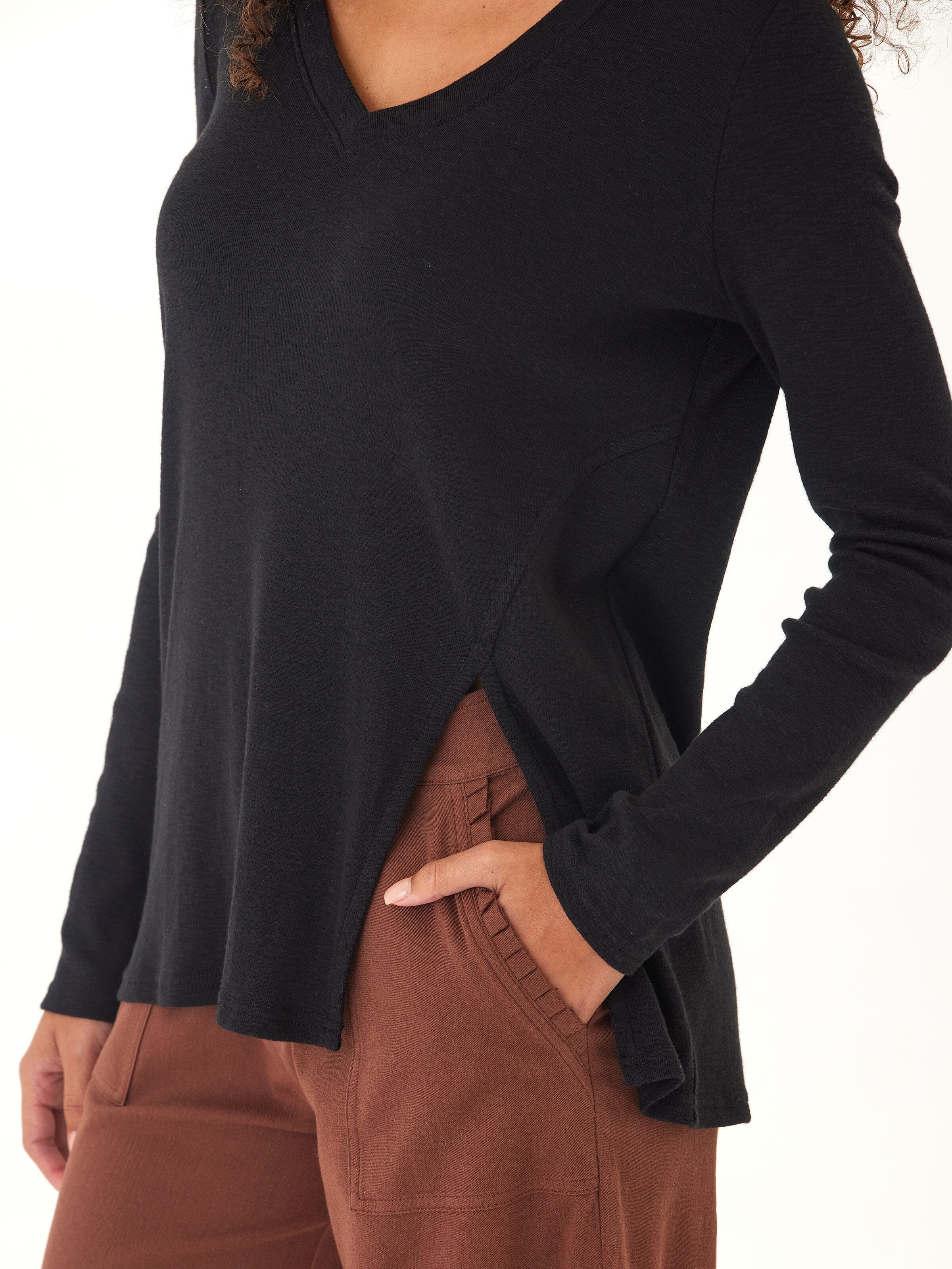 Easygoing comfort meets elevated detail in our Textured Slub Jersey Tee. Crafted from lightweight, breathable slub fabric, this long sleeve offers a soft, lived-in feel with a subtle texture that adds dimension to your look. A flattering V-neckline and side-slit hem bring effortless movement and versatility—perfect for layering or wearing solo.