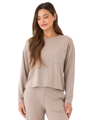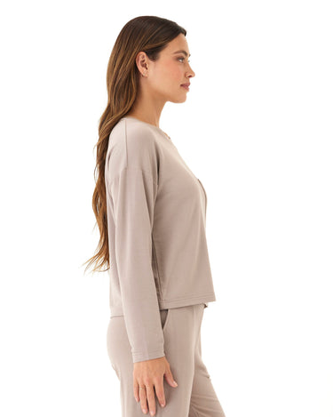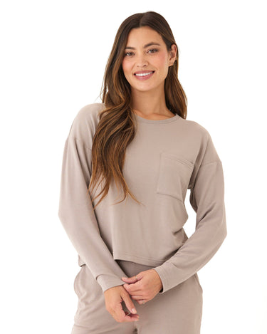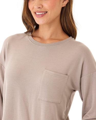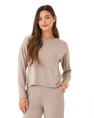 Stay cozy and chic with our Shaina Modal Terry Pocket Long Sleeve. This top is crafted from buttery soft fabric, slightly oversized for ultimate comfort. Pair it with our Modal Terry Joggers for an elevated lounge look. Perfect for lounging or running errands, this top offers both comfort and style.