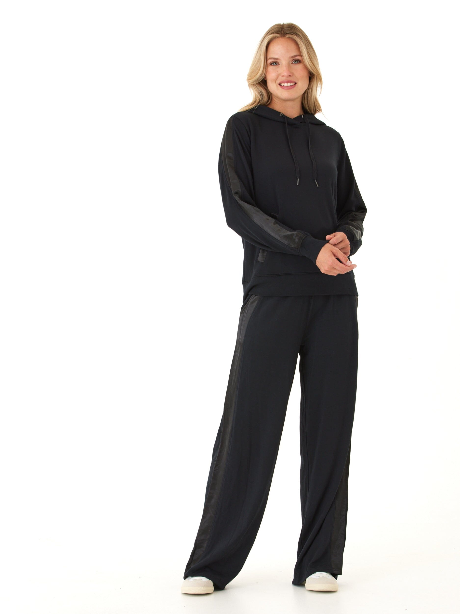 Relaxed, refined, and endlessly soft — the Romi Pant brings elevated comfort to your everyday. Made from our signature Feather Fleece for a buttery feel and effortless drape, this style features a wide-leg silhouette with tonal satin trim along the sides and pockets for a polished touch. Finished with an adjustable drawstring waistband and on-seam pockets, it’s perfect for lounging at home or styling on the go with the matching hoodie.