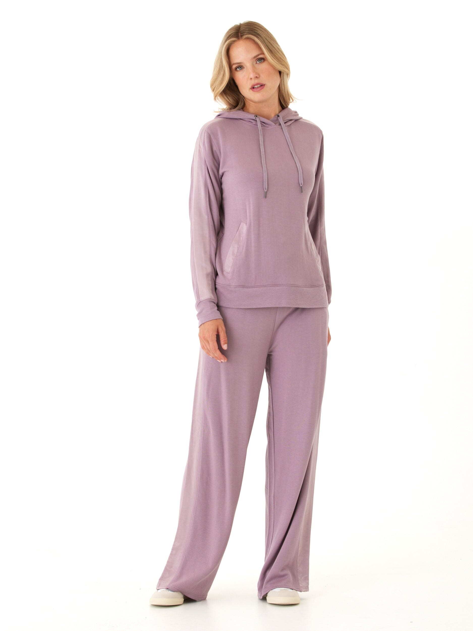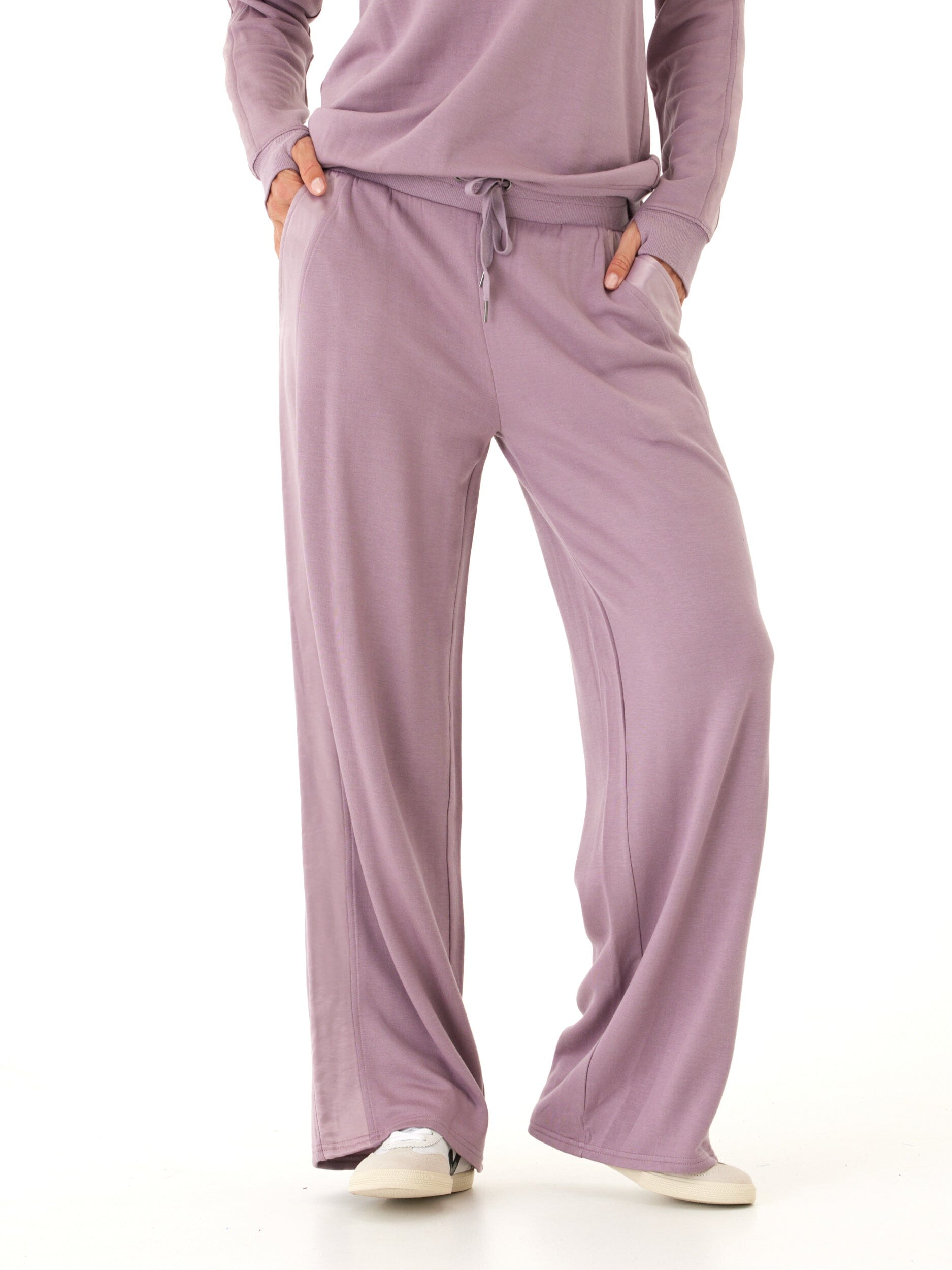 Relaxed, refined, and endlessly soft — the Romi Pant brings elevated comfort to your everyday. Made from our signature Feather Fleece for a buttery feel and effortless drape, this style features a wide-leg silhouette with tonal satin trim along the sides and pockets for a polished touch. Finished with an adjustable drawstring waistband and on-seam pockets, it’s perfect for lounging at home or styling on the go with the matching hoodie.