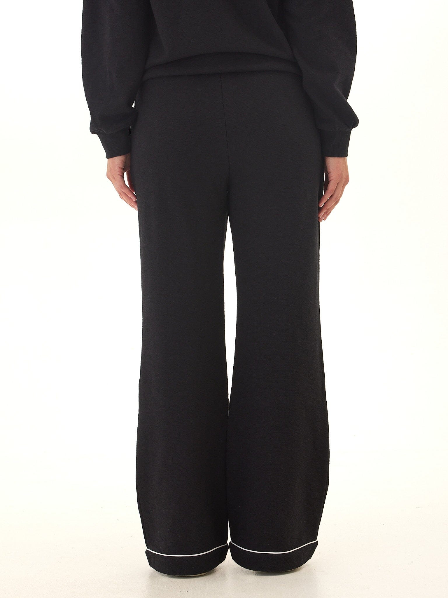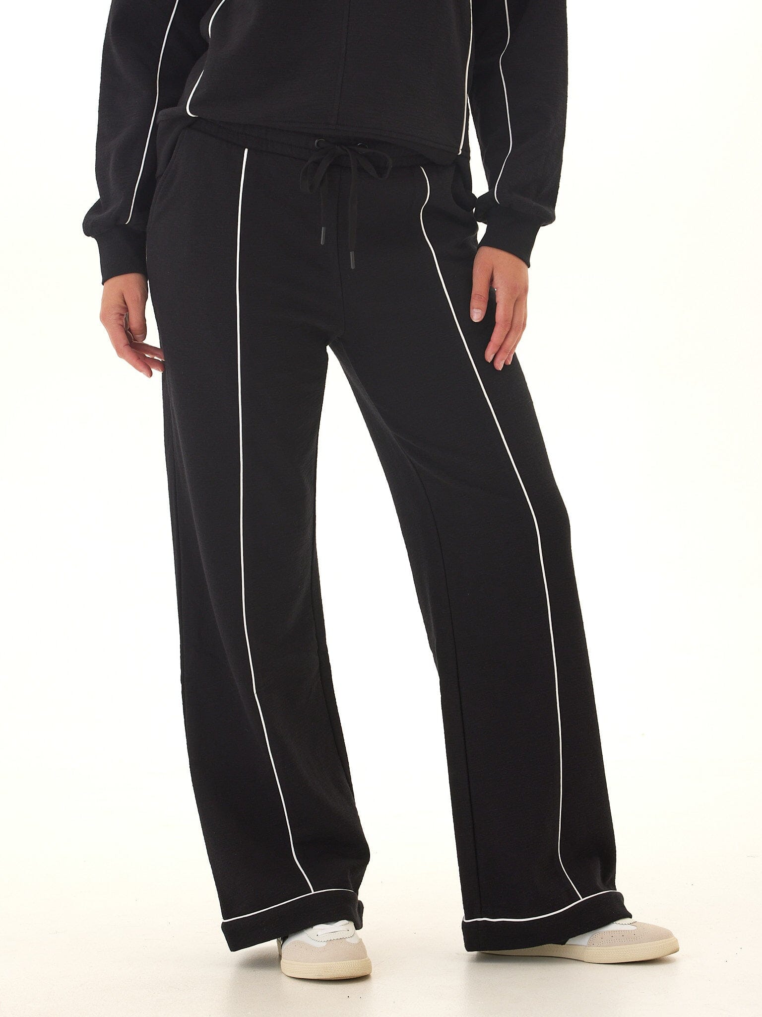Elevate your off-duty look with this effortlessly polished lounge set. Crafted from a soft, midweight fleece, the wide-leg pant and matching crewneck feature contrast piping for a sleek, modern touch. The pants include an adjustable drawstring waistband and side pockets for everyday comfort, while the relaxed silhouette drapes beautifully for a refined yet laid-back feel. Perfect for travel, lounging, or styled with sneakers for an easy streetwear look.