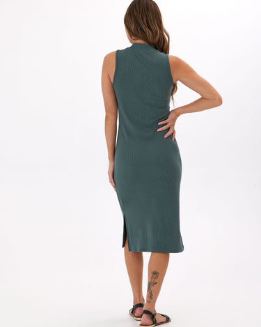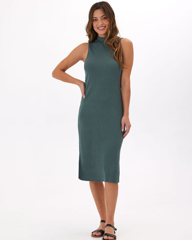 Feel confident and elegant in our Umi Feather Rib Midi Dress. This stretchy, soft ribbed dress features a high neck and flattering fit for a classy and comfortable look. Perfect for any occasion, it will make you feel confident and beautiful all day long!