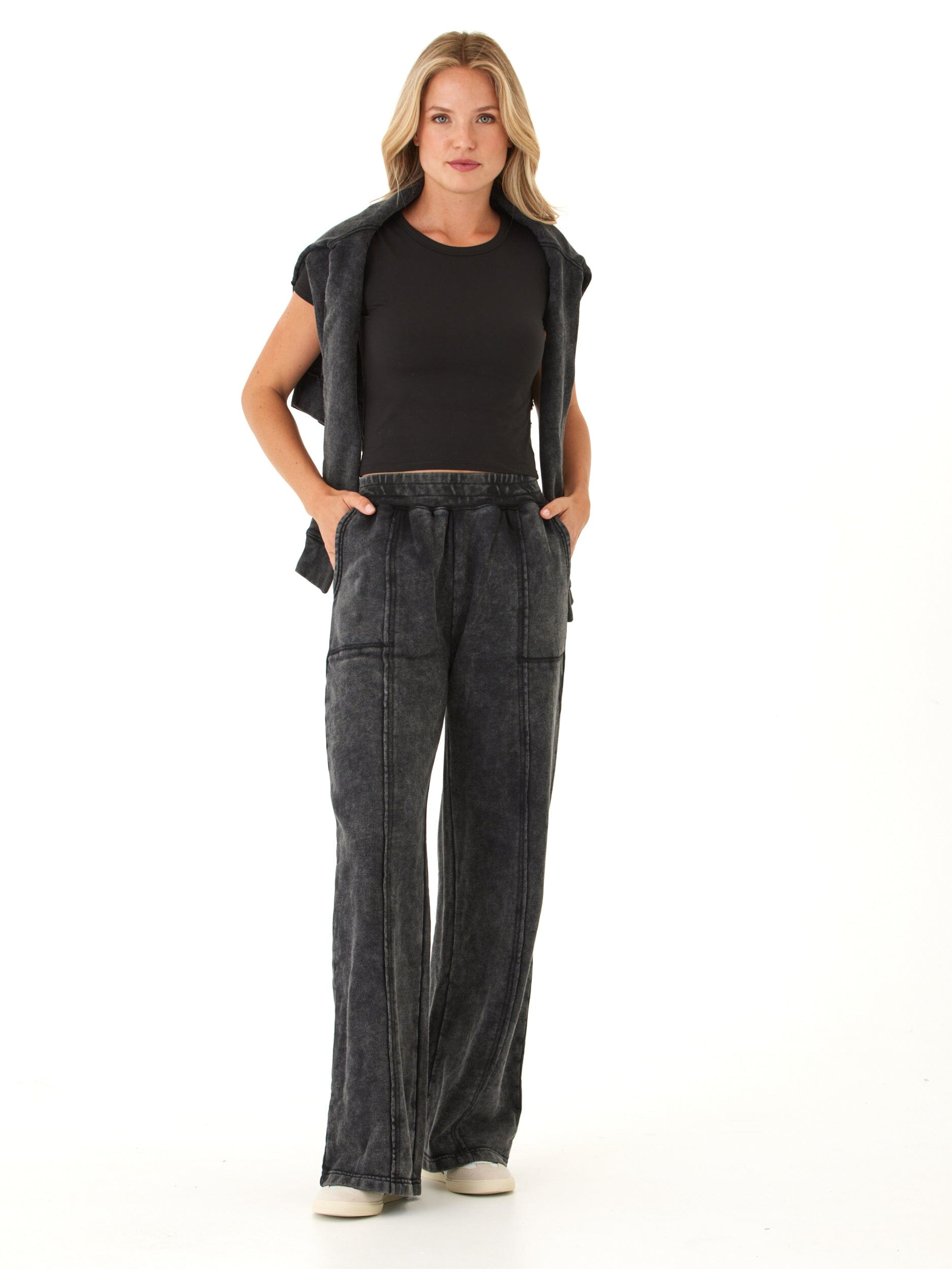 Hester Mineral Wash Terry Wide Leg Pant