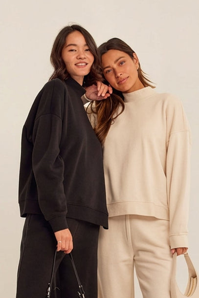 Feather-soft with a relaxed fit and ribbed details—so cozy, you’ll never want to take it off.