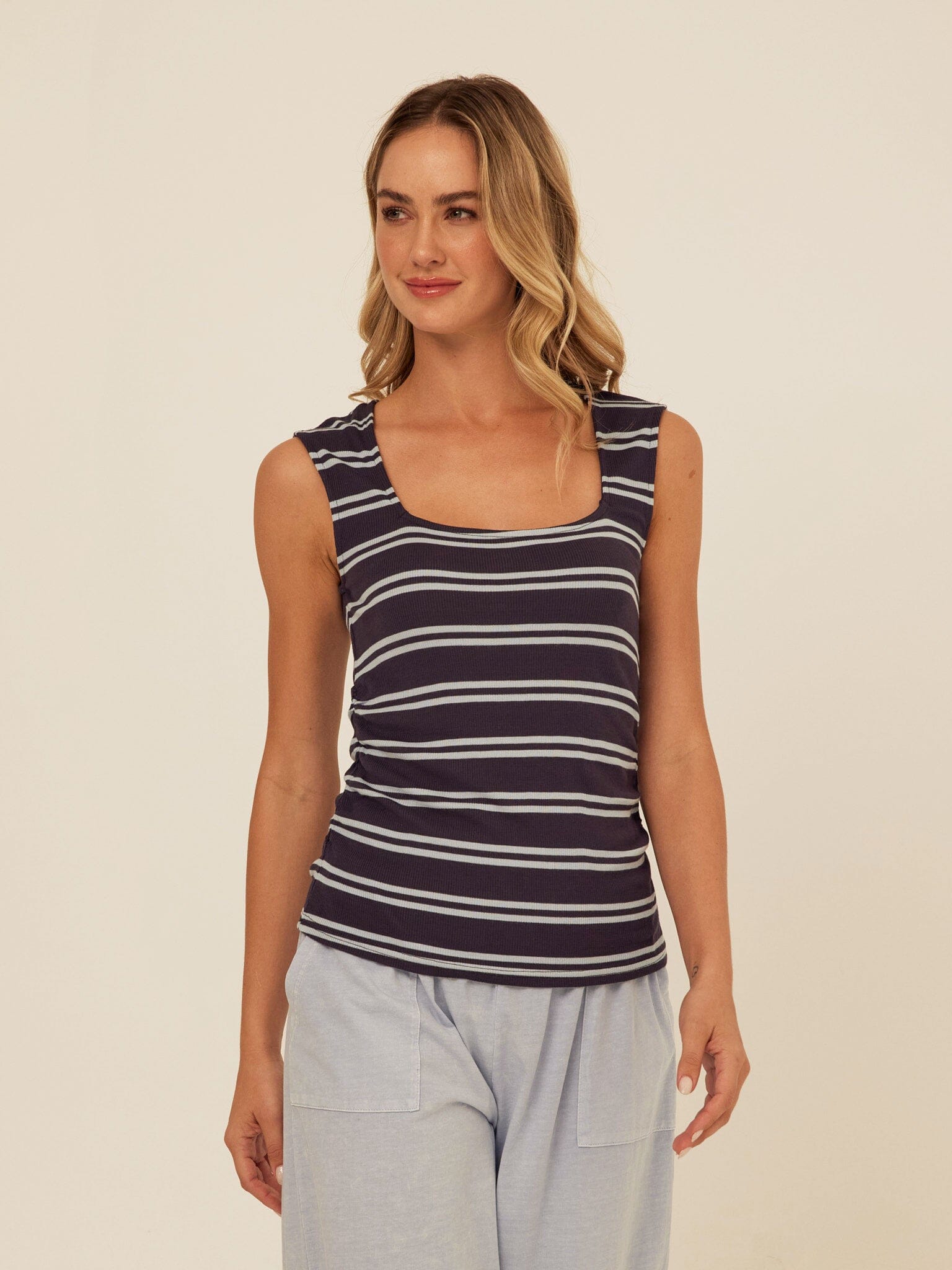 Flattering, fitted, and ultra-soft—this ribbed tank features a feminine square neckline and subtle side ruching for added shape. Made from stretchy, breathable fabric, it’s the perfect base layer or standalone staple.