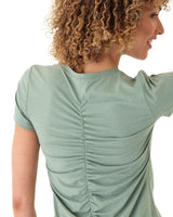 The Arry Luxe Jersey Ruched Tee offers the perfect combination of style and comfort. This stretchy tee features a ruched back for added flair and a relaxed, flattering fit.