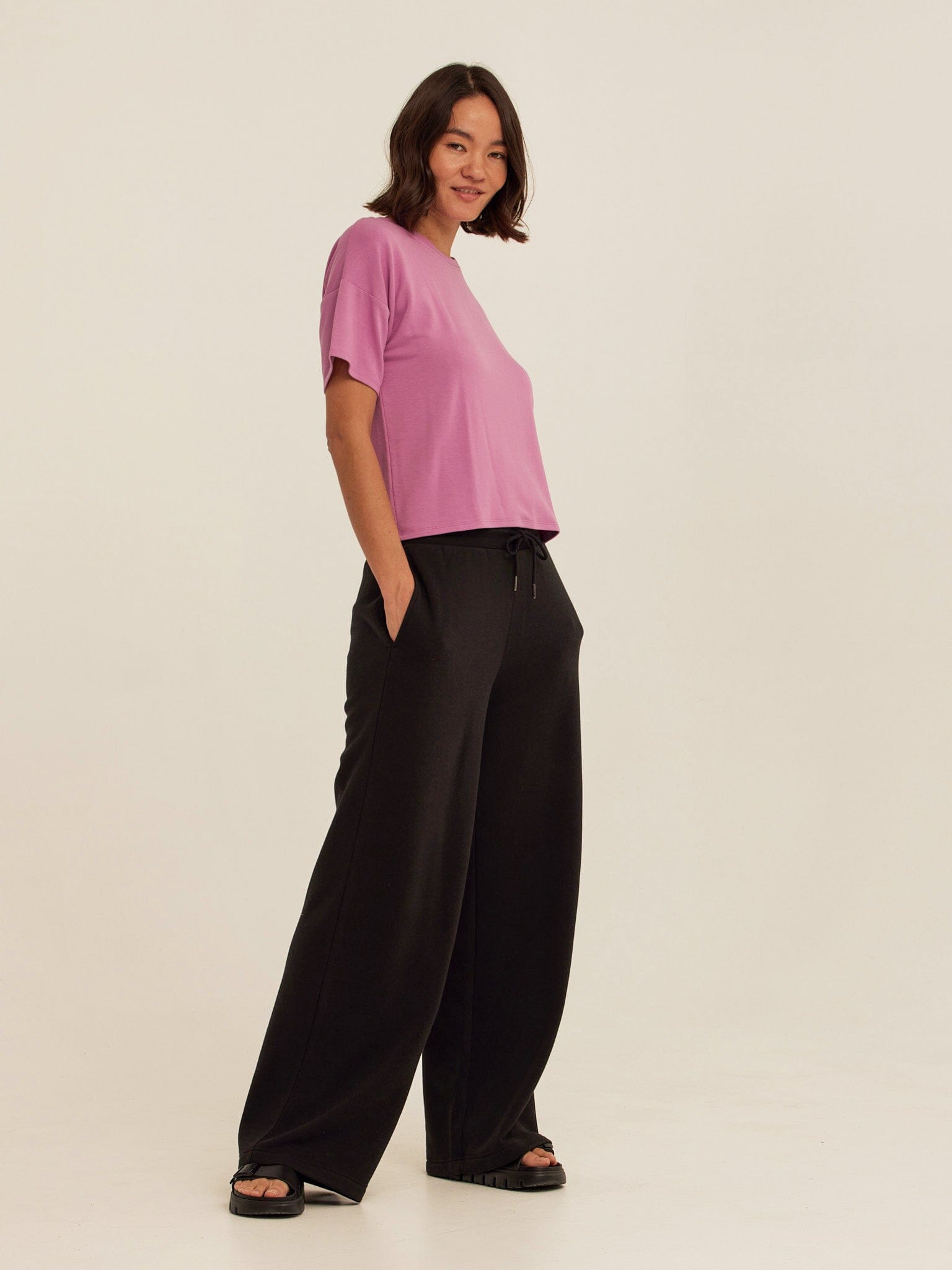 Upgrade your everyday essentials with this ultra-soft modal terry tee, designed for effortless comfort and modern style. Featuring a relaxed fit and drop-shoulder sleeves, this top offers a laid-back yet polished look that pairs perfectly with anything in your wardrobe.