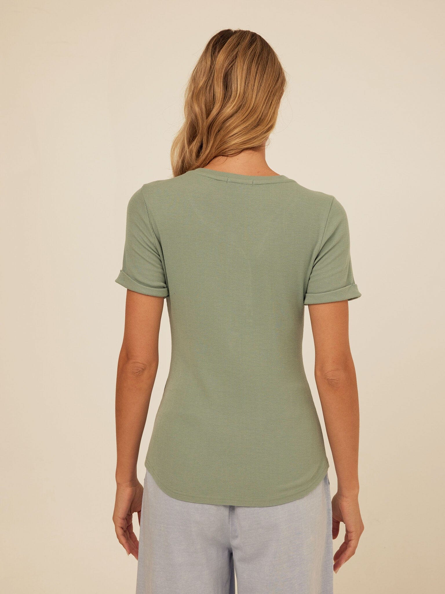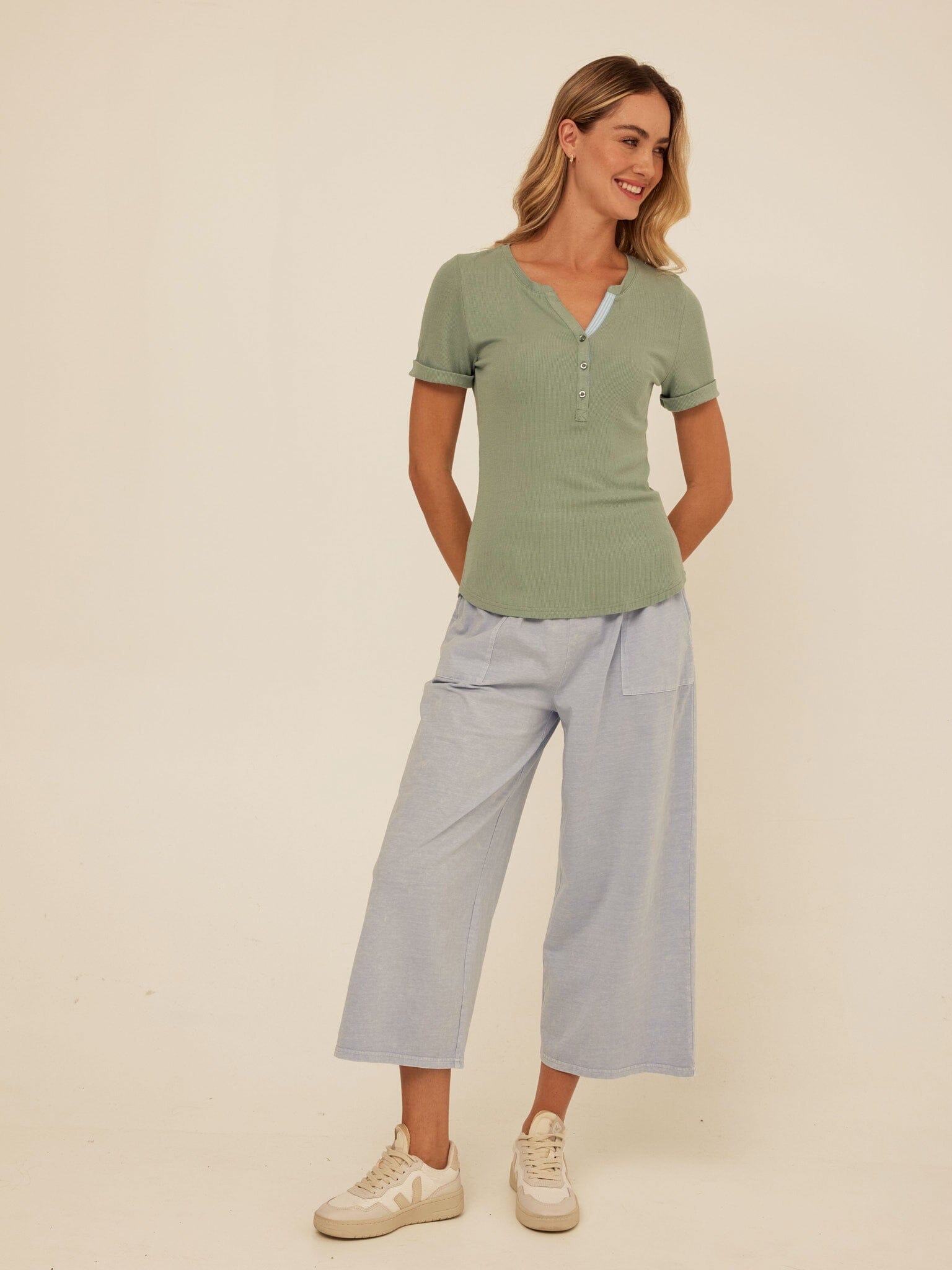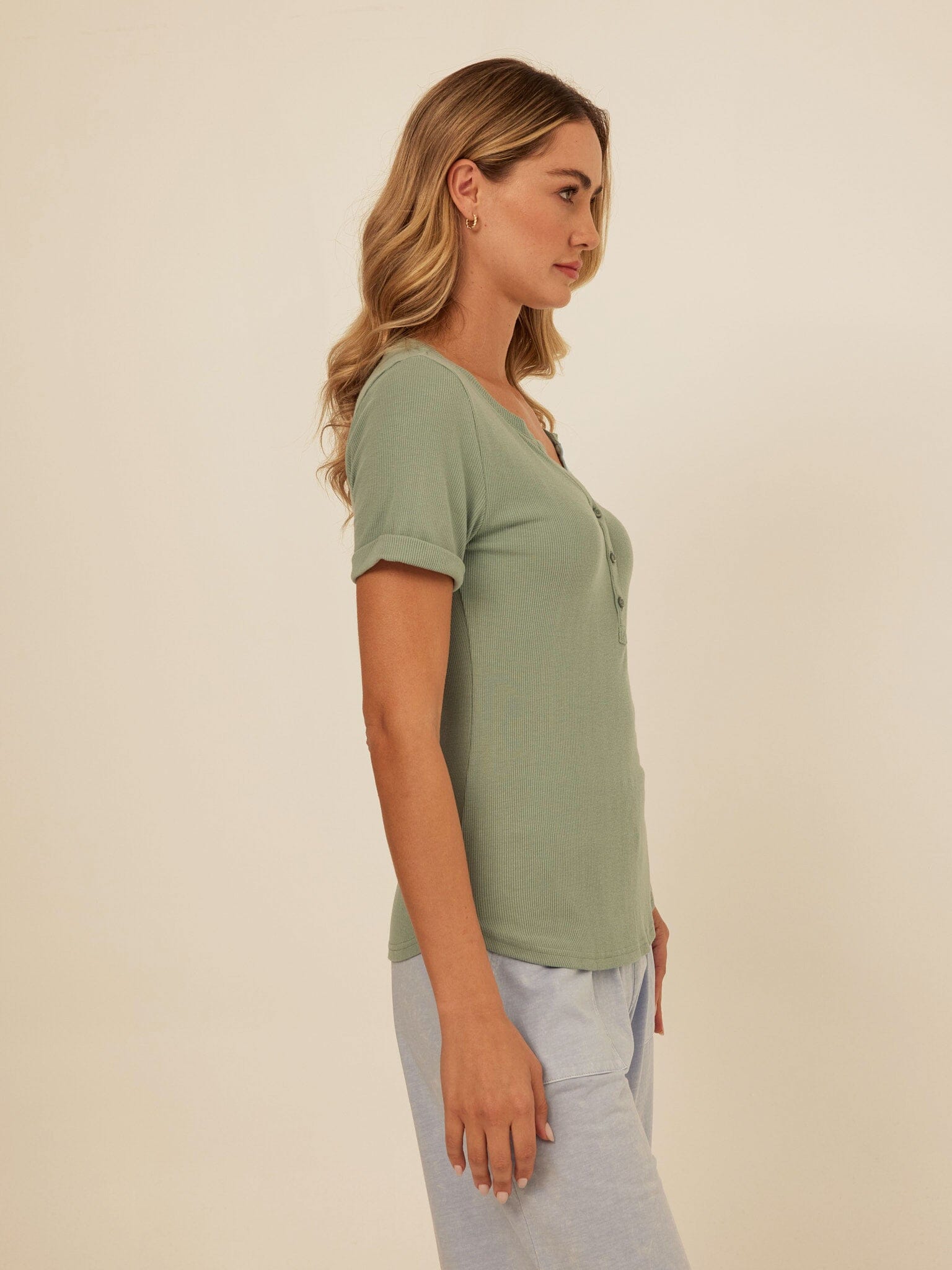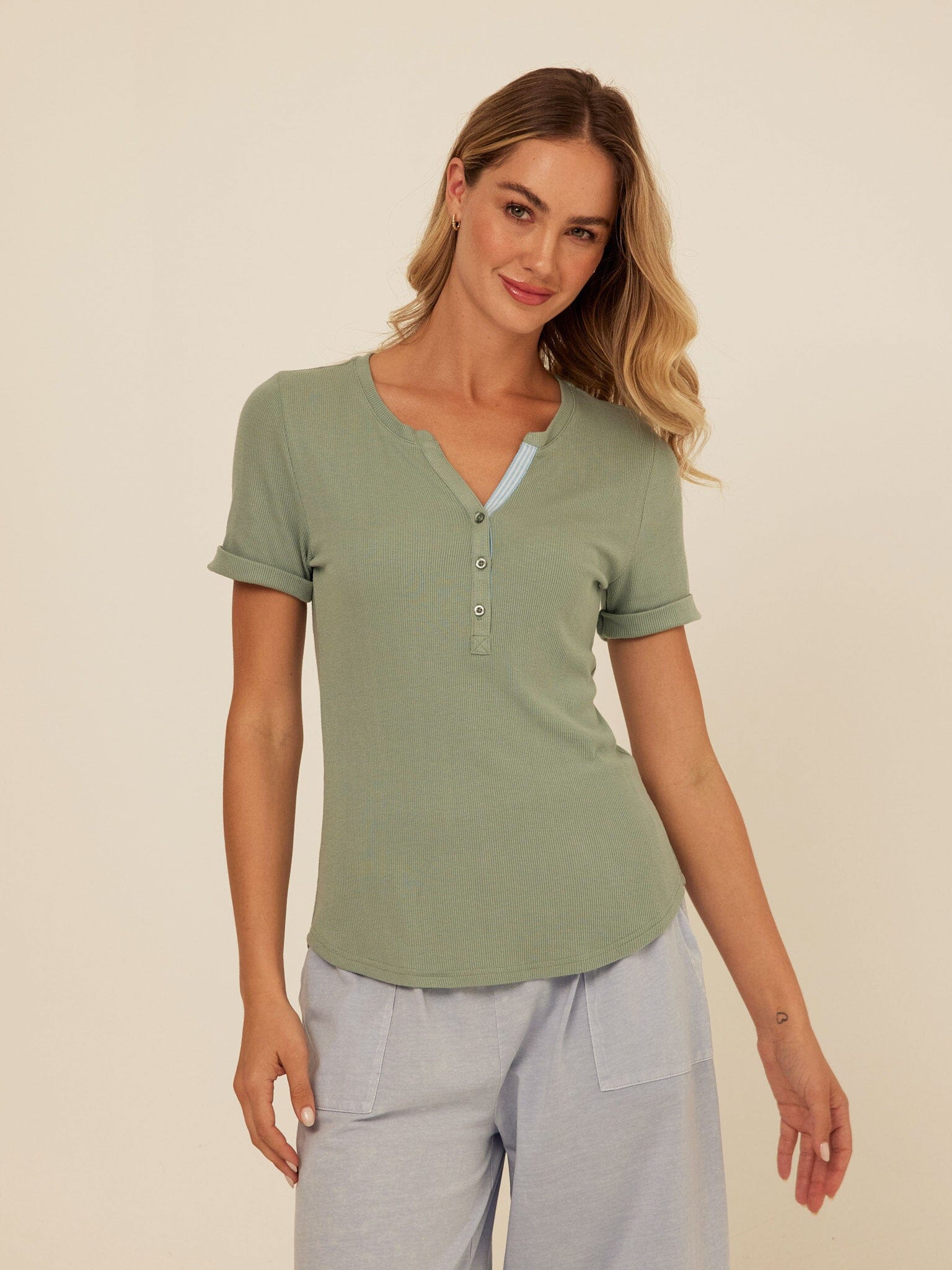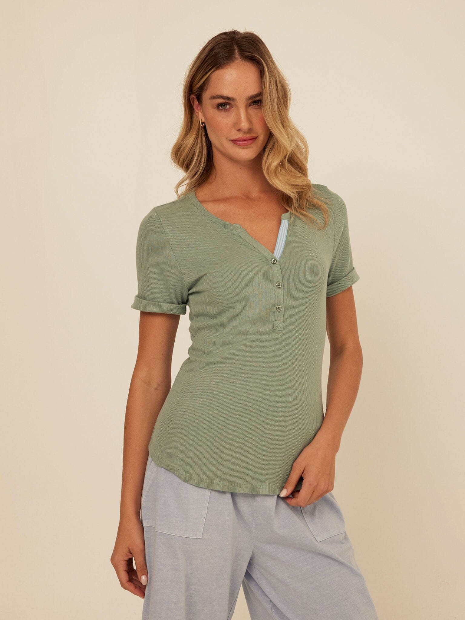 Akia Feather Rib Trim Detail Henley Tee