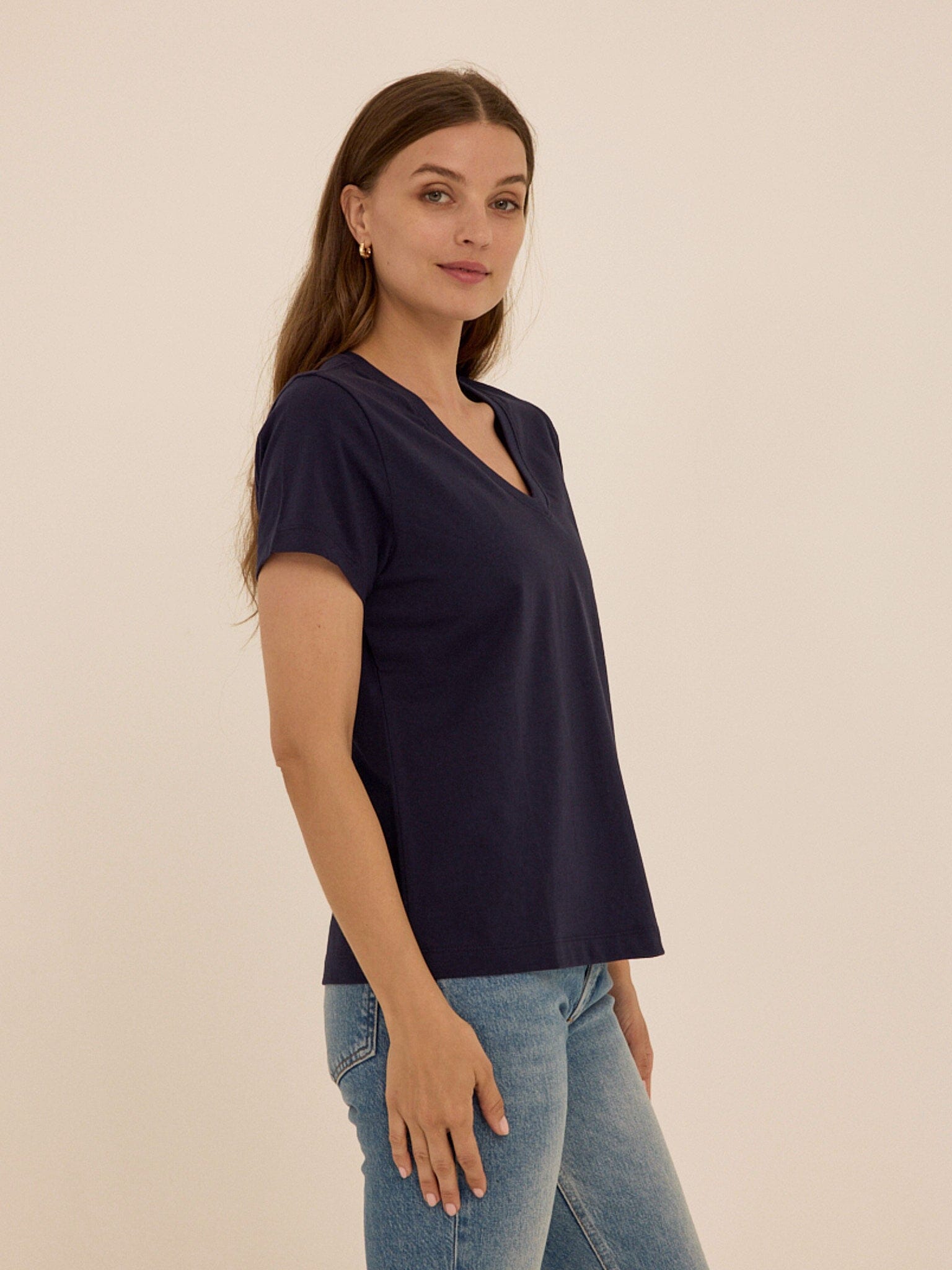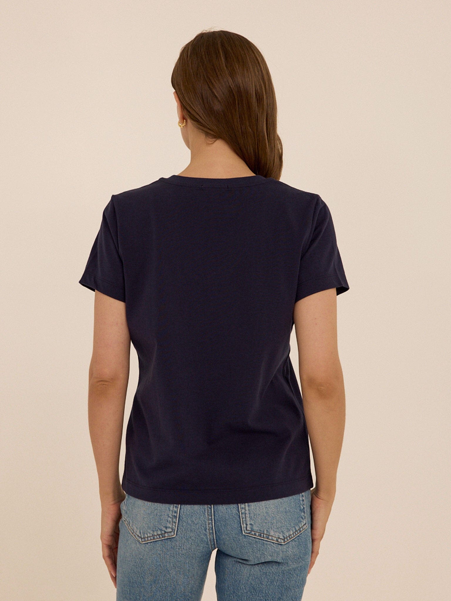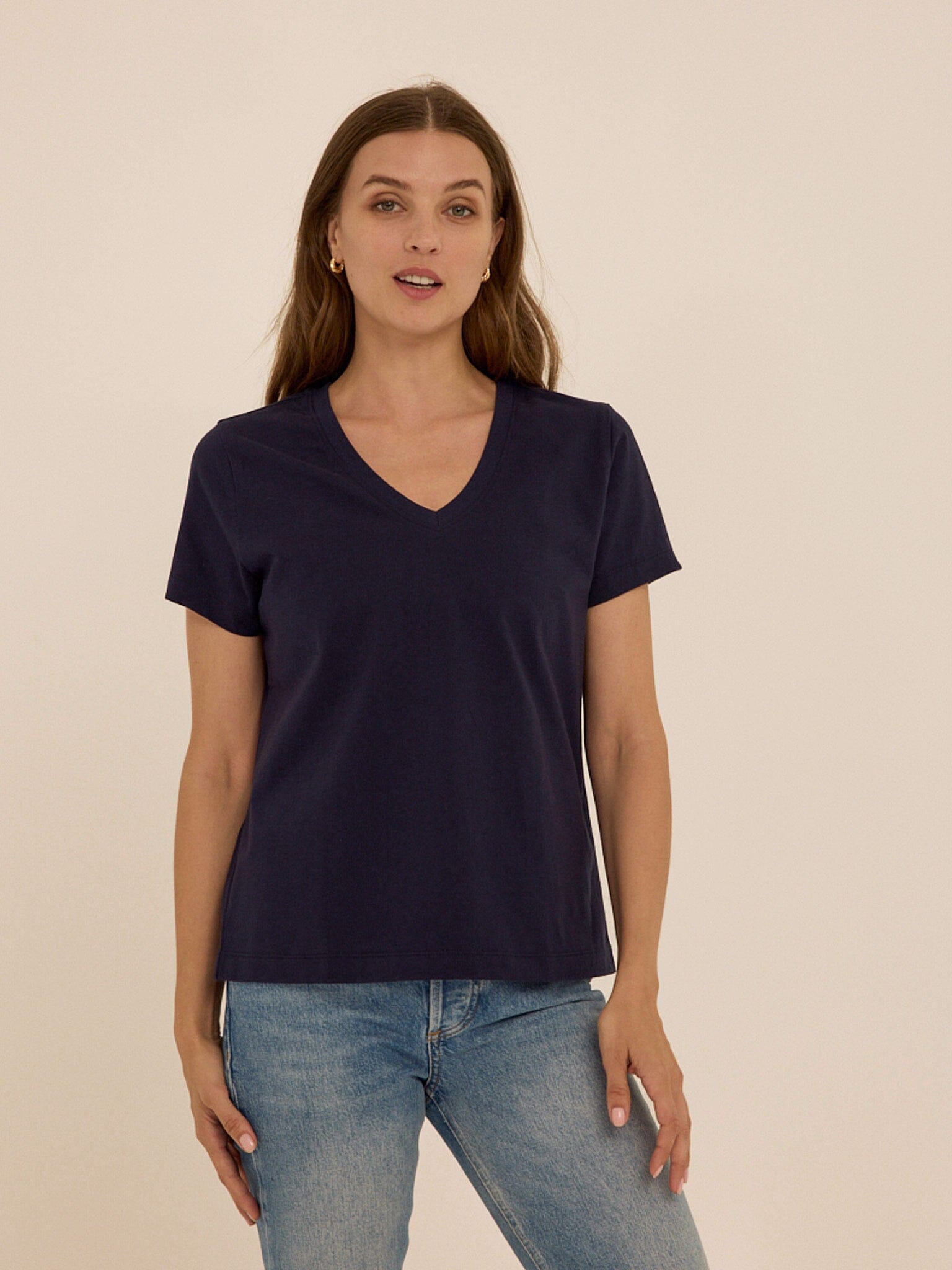 The everyday tee, refined. The Aria Organic Cotton V-Neck Tee is made from our highest quality 100% organic cotton, offering a naturally soft hand feel with a clean, structured drape. Designed with a flattering V neckline and an easy fit, it brings a refined simplicity to everyday dressing.
