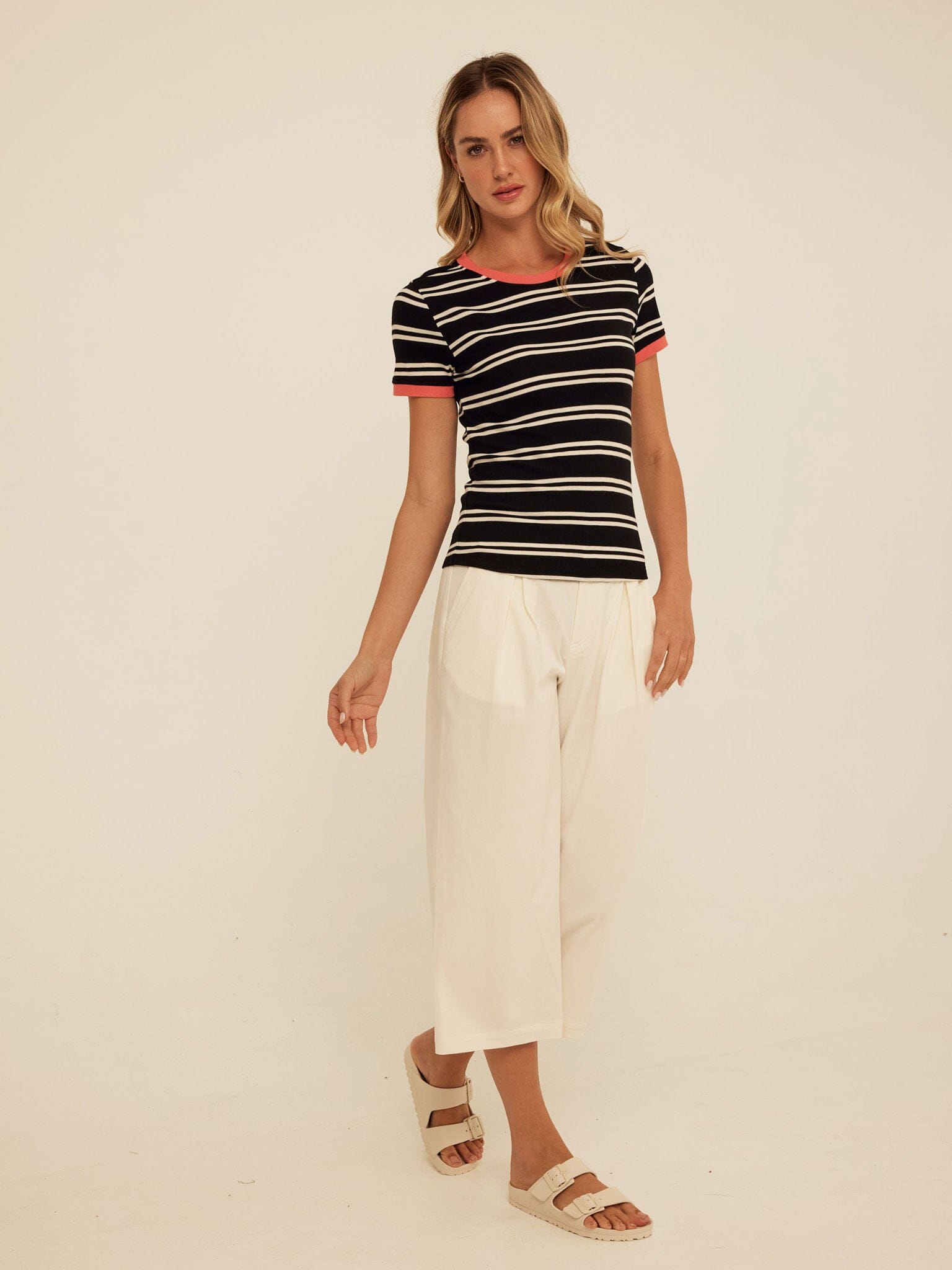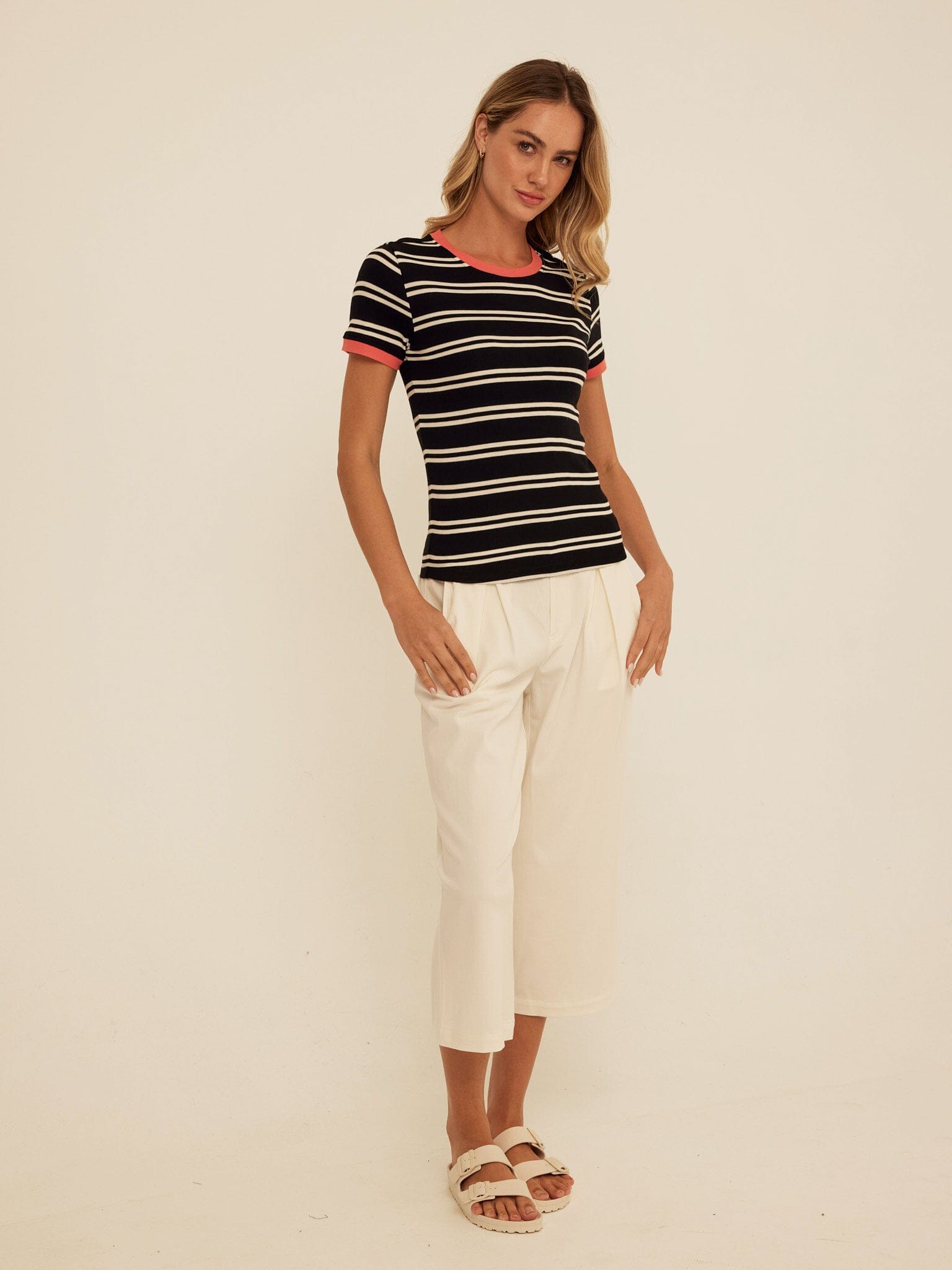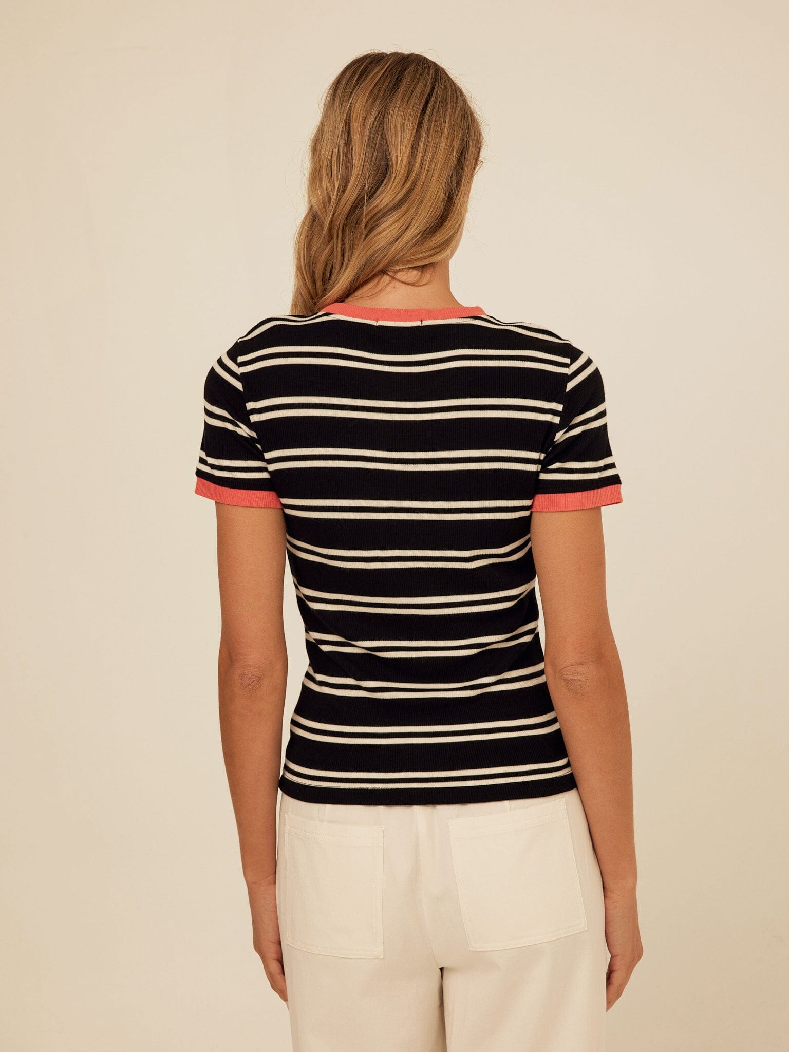 Arleen Barbados Stripe Feather Rib Ringer Tee