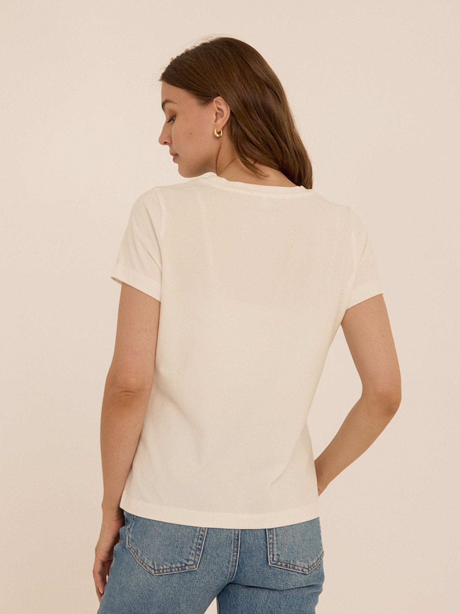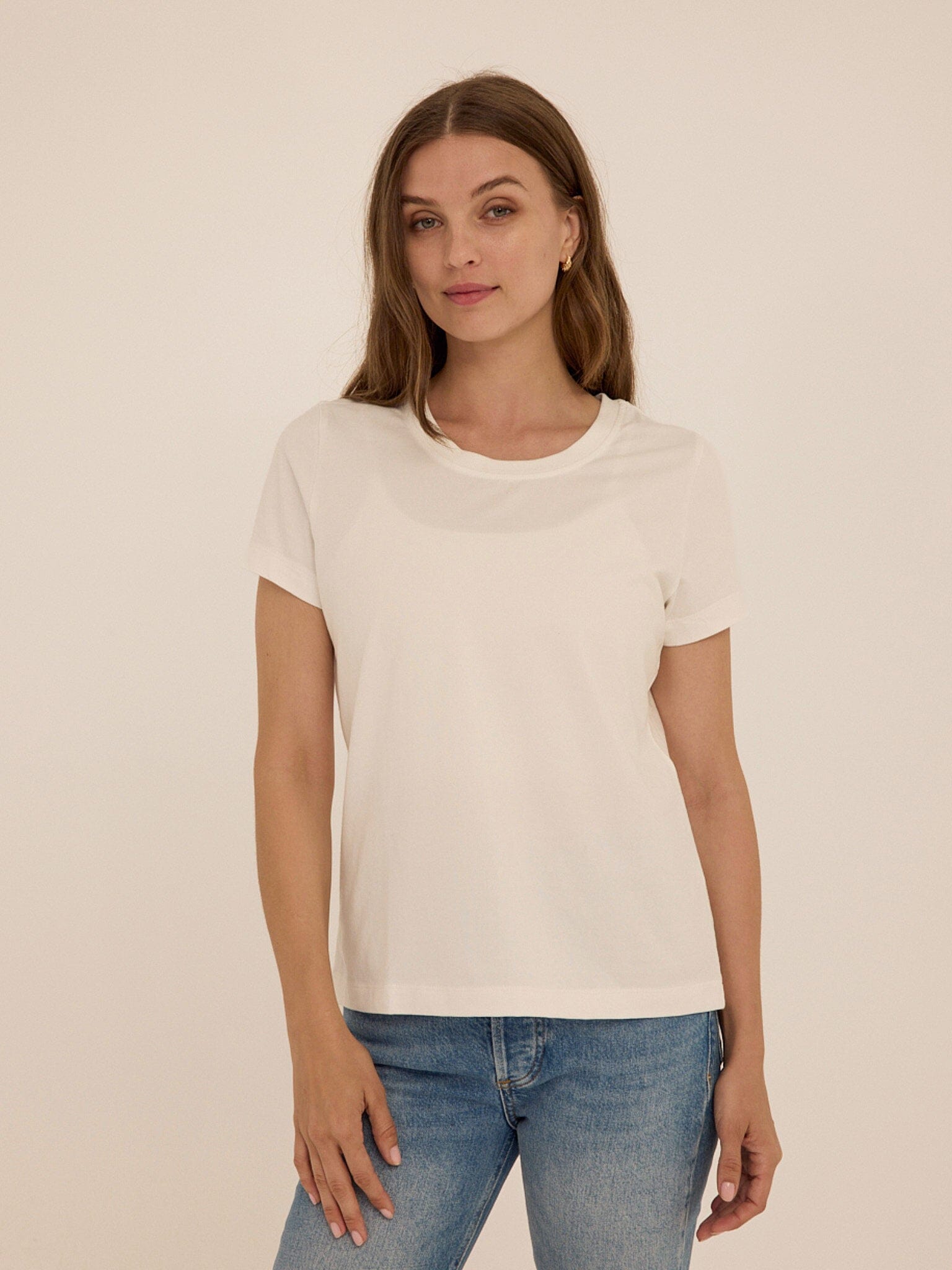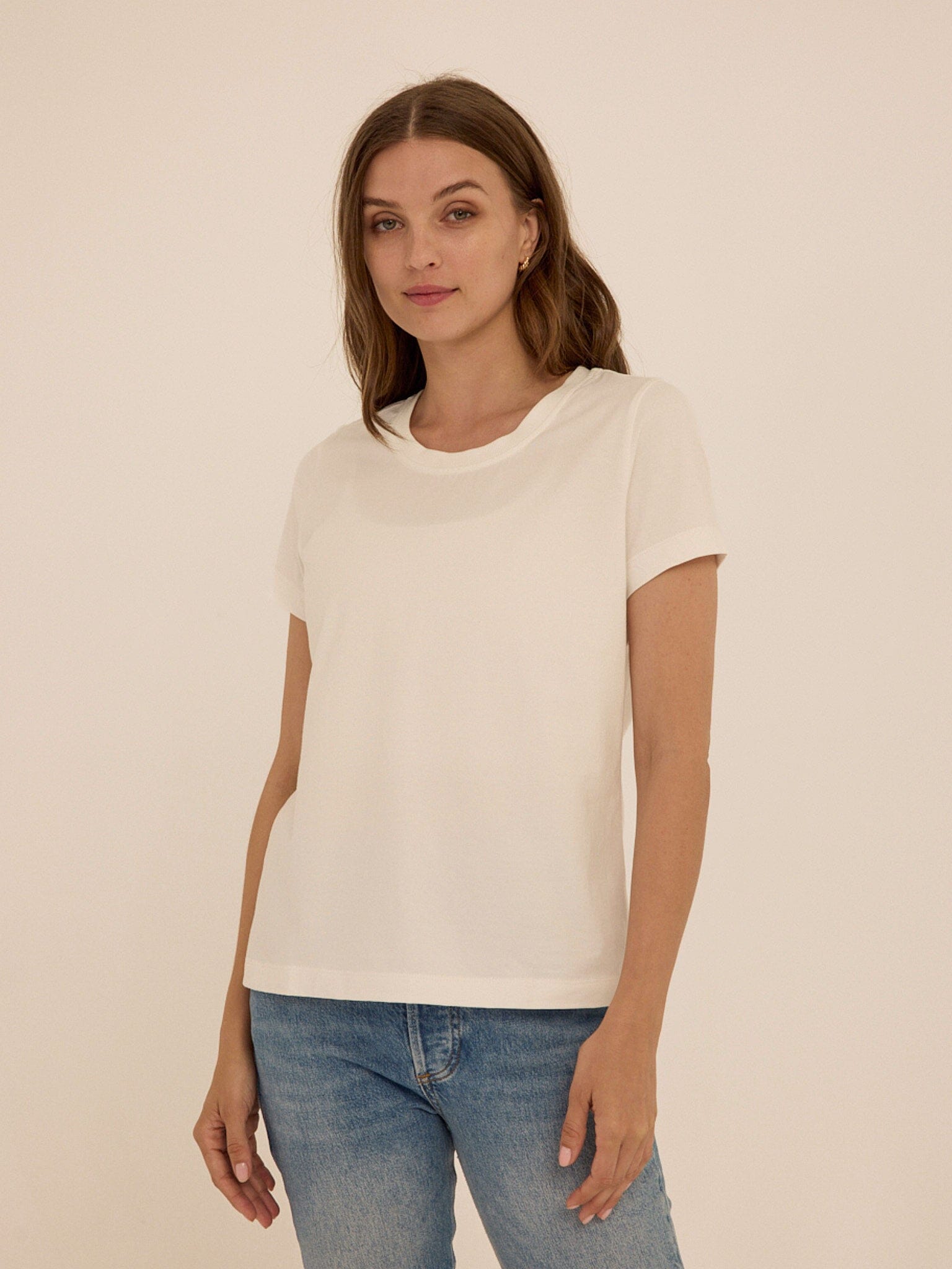 A modern take on a classic essential. The Emmy Organic Cotton Crew Tee is made from our highest quality 100% organic cotton, offering a naturally soft hand feel with a clean, structured drape. Designed with a timeless crew neckline and an easy fit, it brings a refined simplicity to everyday dressing.