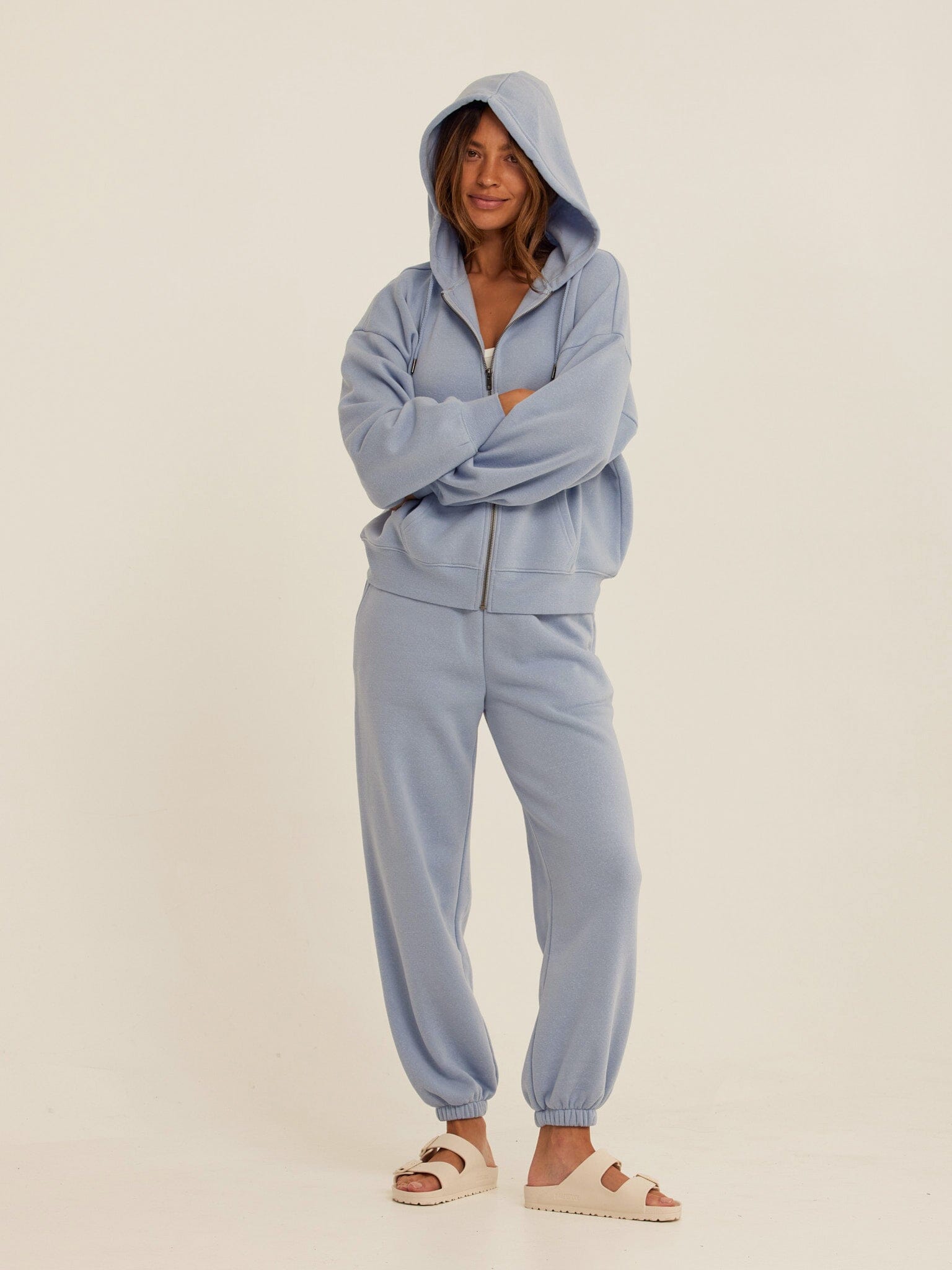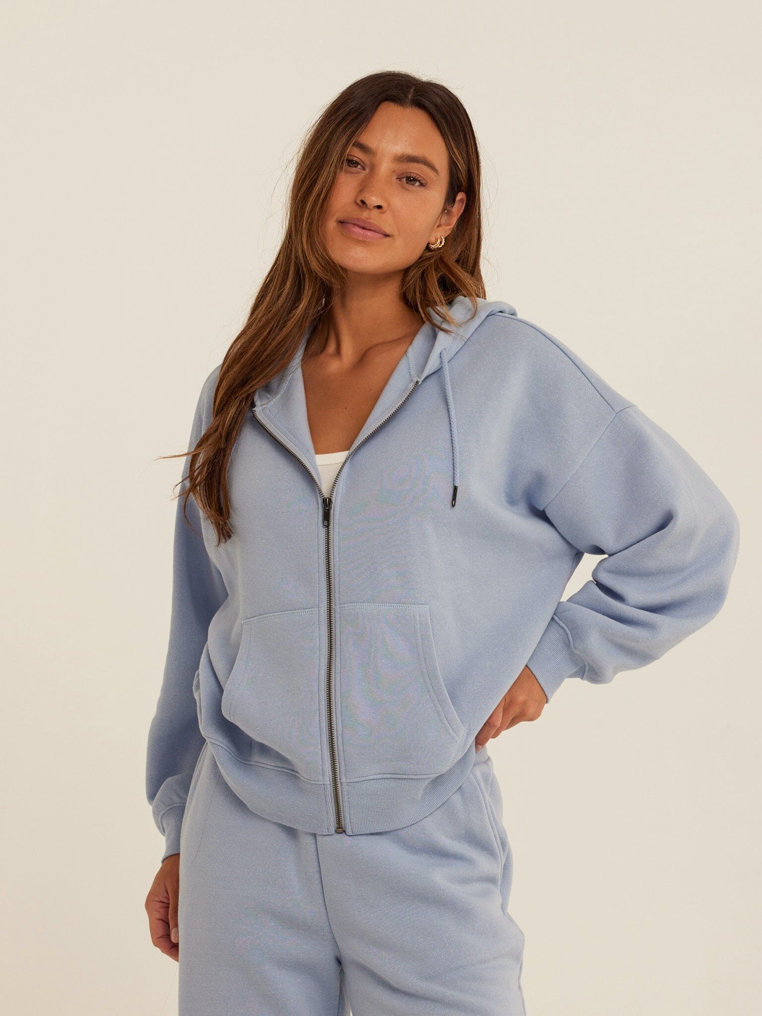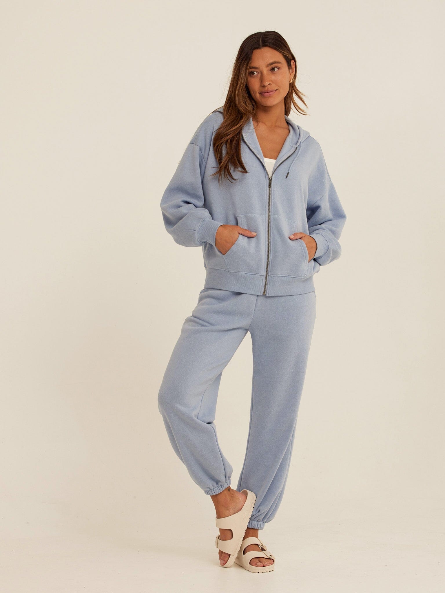 An everyday layer designed for effortless comfort. The Corissa Zip Hoodie features a relaxed fit, soft Triblend fleece, and an easy full-zip front for versatile wear. Finished with a cozy hood and front pockets, it’s the kind of piece you’ll reach for on repeat—perfect on its own or paired with the matching fleece bottoms for a complete set.