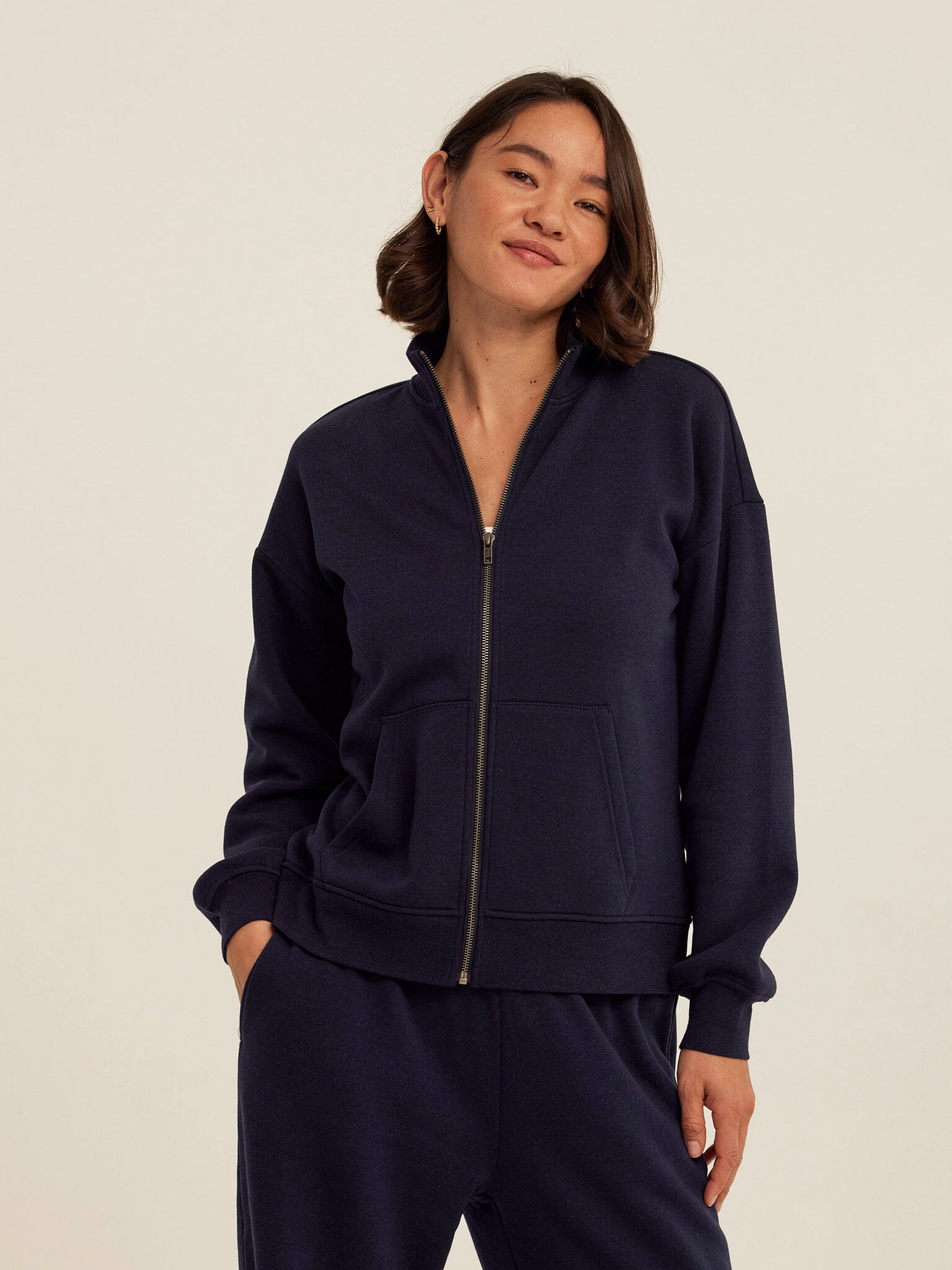 An easy layer with a polished feel. The Delacey Zip Jacket is made from our best-selling Triblend Fleece for soft, lightweight warmth that’s comfortable all day. Designed with a relaxed fit and a streamlined stand collar, it features a full-zip front and side pockets for everyday ease. Perfect for layering over tees or pairing with matching fleece bottoms, this is a versatile piece you’ll reach for season after season.