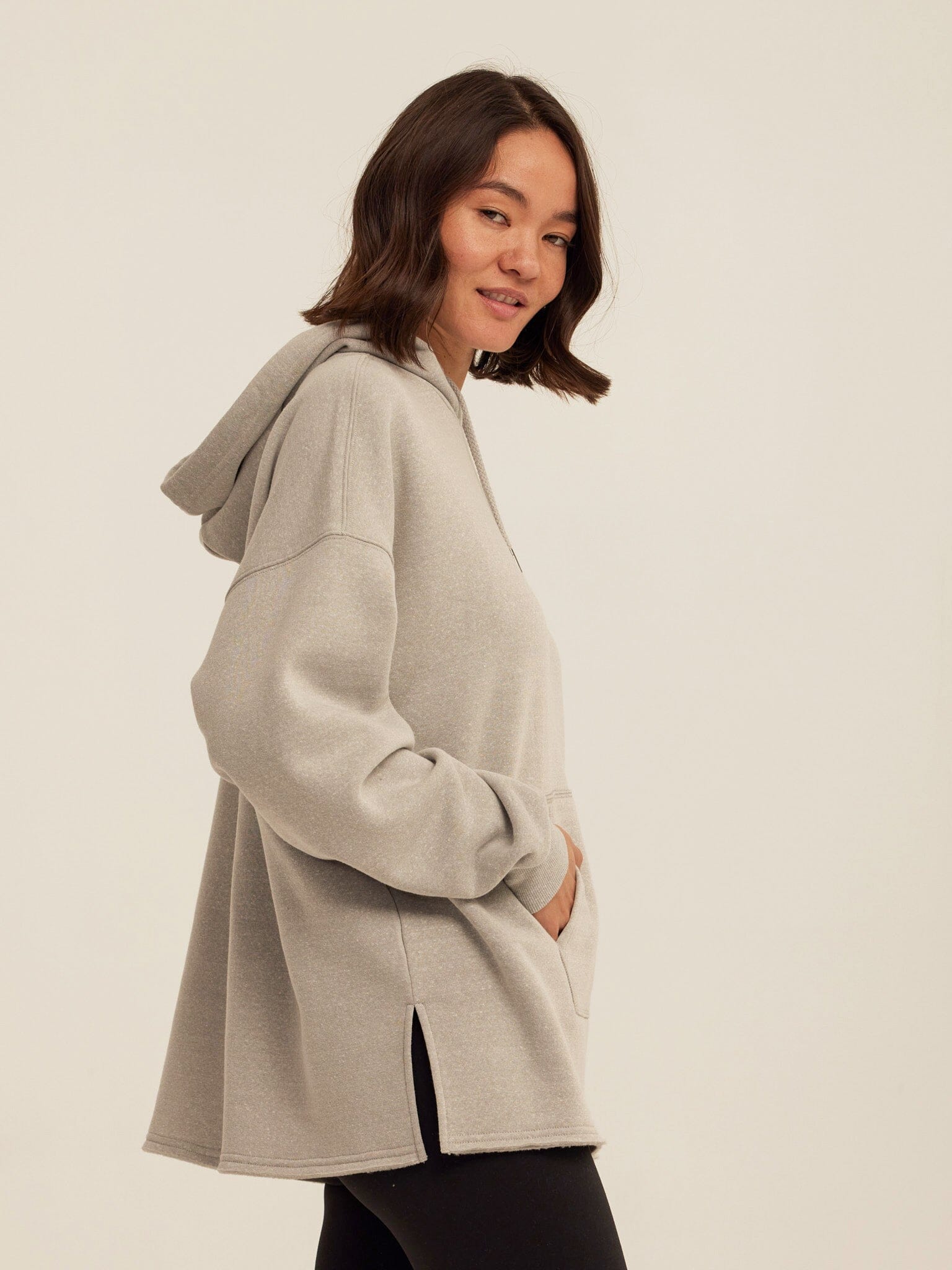 An easy, relaxed layer designed for everyday comfort. The Missy Pullover Hoodie is made from our best-selling Triblend Fleece for a soft, cozy feel that’s lightweight and easy to wear. Cut with a relaxed fit and slightly longer length, it features a classic hood, kangaroo pocket, and subtle side slits for added movement and ease. Perfect for layering over leggings or pairing with your favorite fleece bottoms, this is a go-to hoodie you’ll reach for again and again.