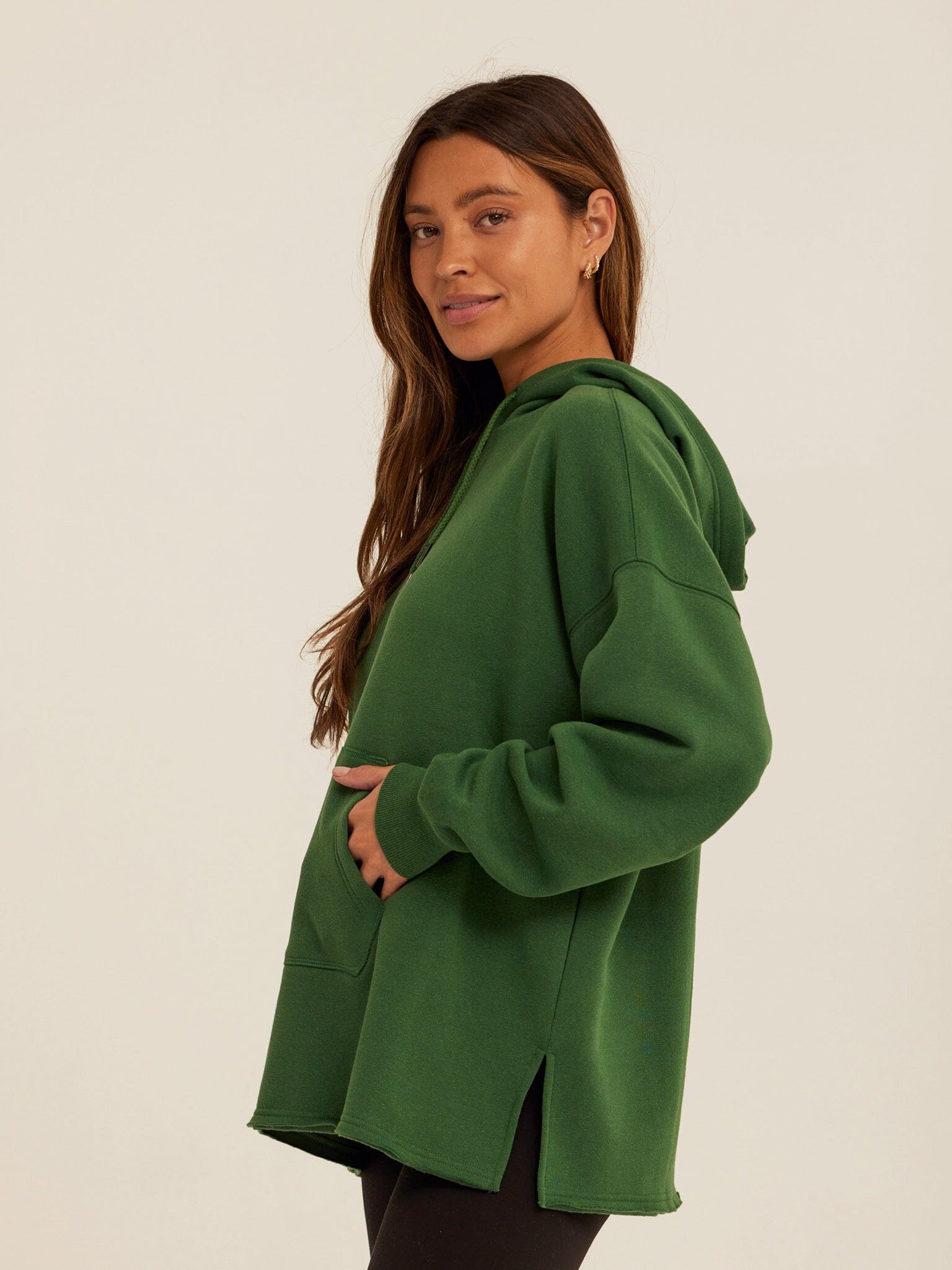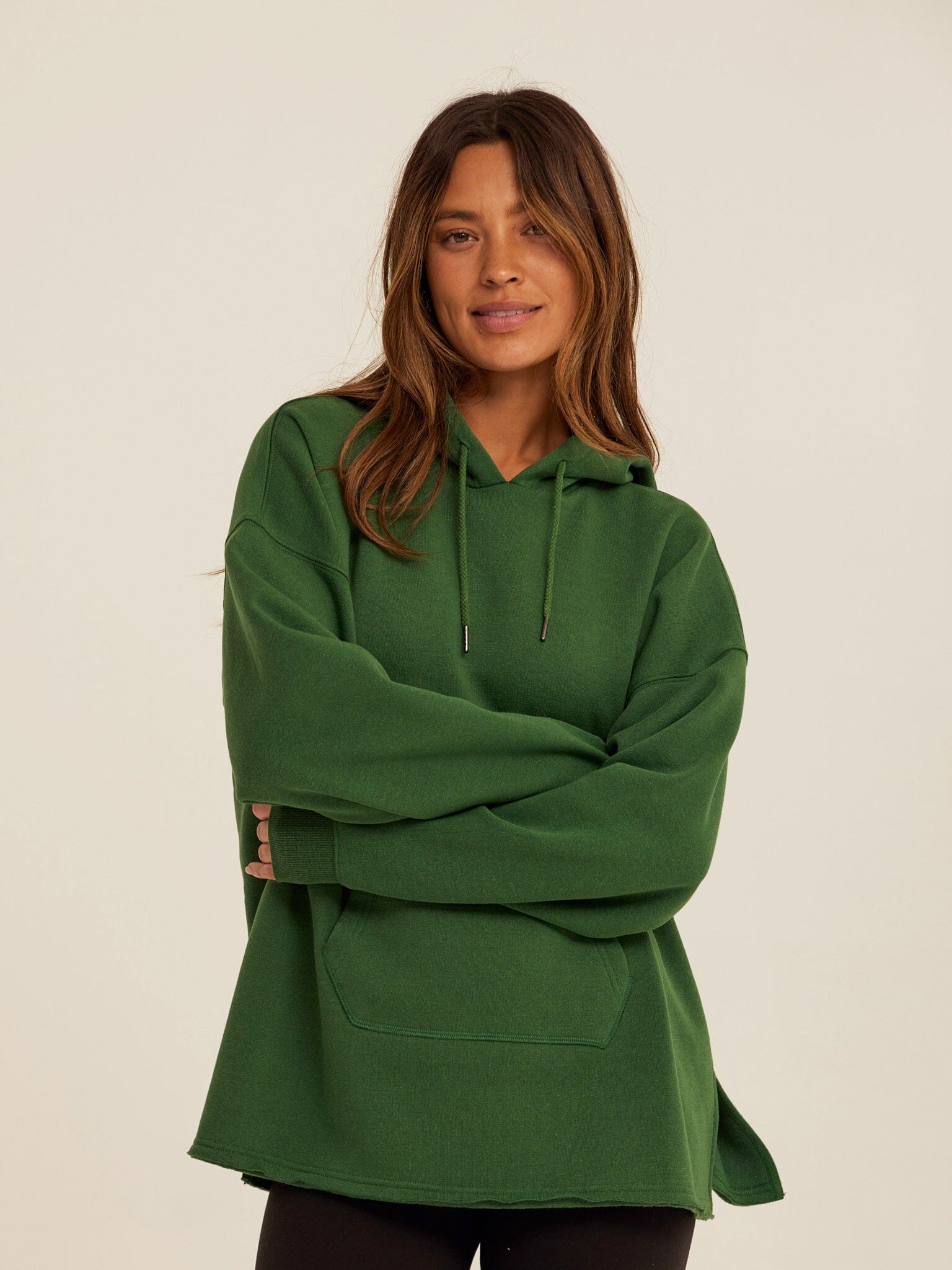 An easy, relaxed layer designed for everyday comfort. The Missy Pullover Hoodie is made from our best-selling Triblend Fleece for a soft, cozy feel that’s lightweight and easy to wear. Cut with a relaxed fit and slightly longer length, it features a classic hood, kangaroo pocket, and subtle side slits for added movement and ease. Perfect for layering over leggings or pairing with your favorite fleece bottoms, this is a go-to hoodie you’ll reach for again and again.