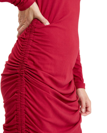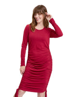 Look and feel your best with this luxurious jersey midi dress. Featuring our ultra stretchy Luxe Jersey material, ruched details, and flattering tie accents.