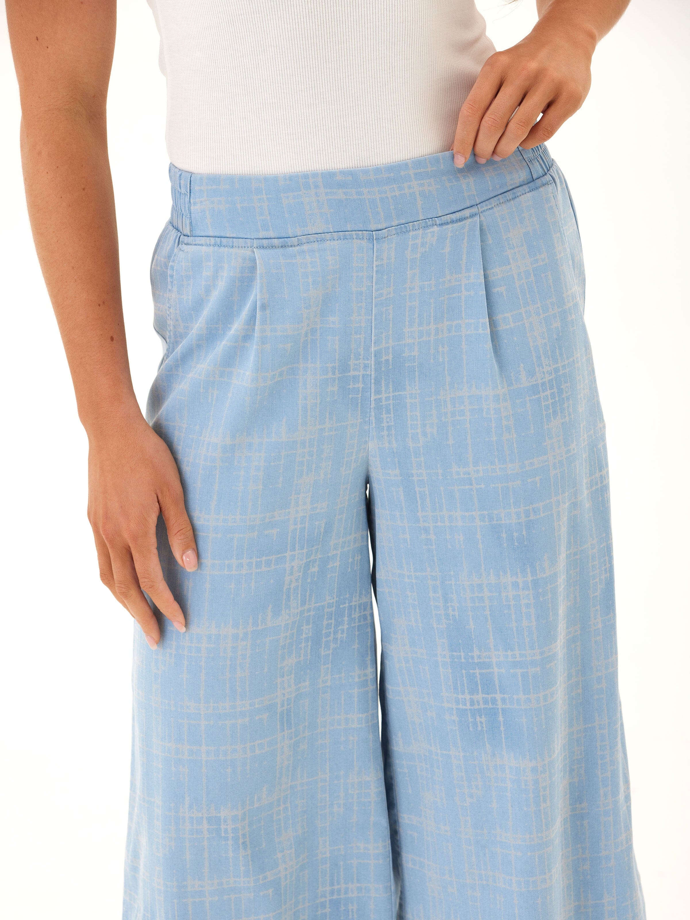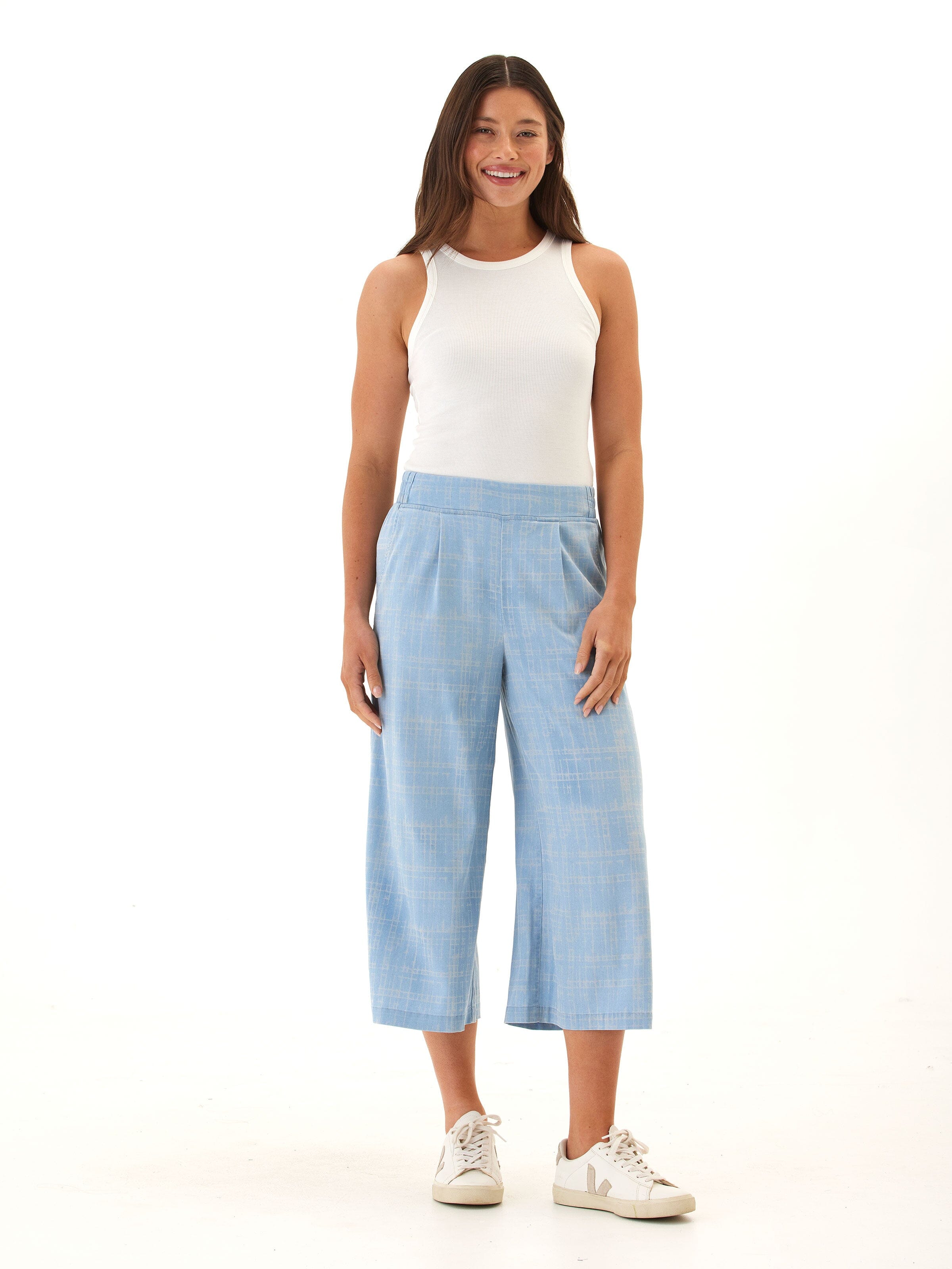This cropped wide-leg pant is crafted from our soft and stretchy chambray for an ultra-comfortable fit that still looks polished. Designed with subtle pleats, a flat front waistband, and side pockets for everyday ease—perfect for dressing up or keeping casual.