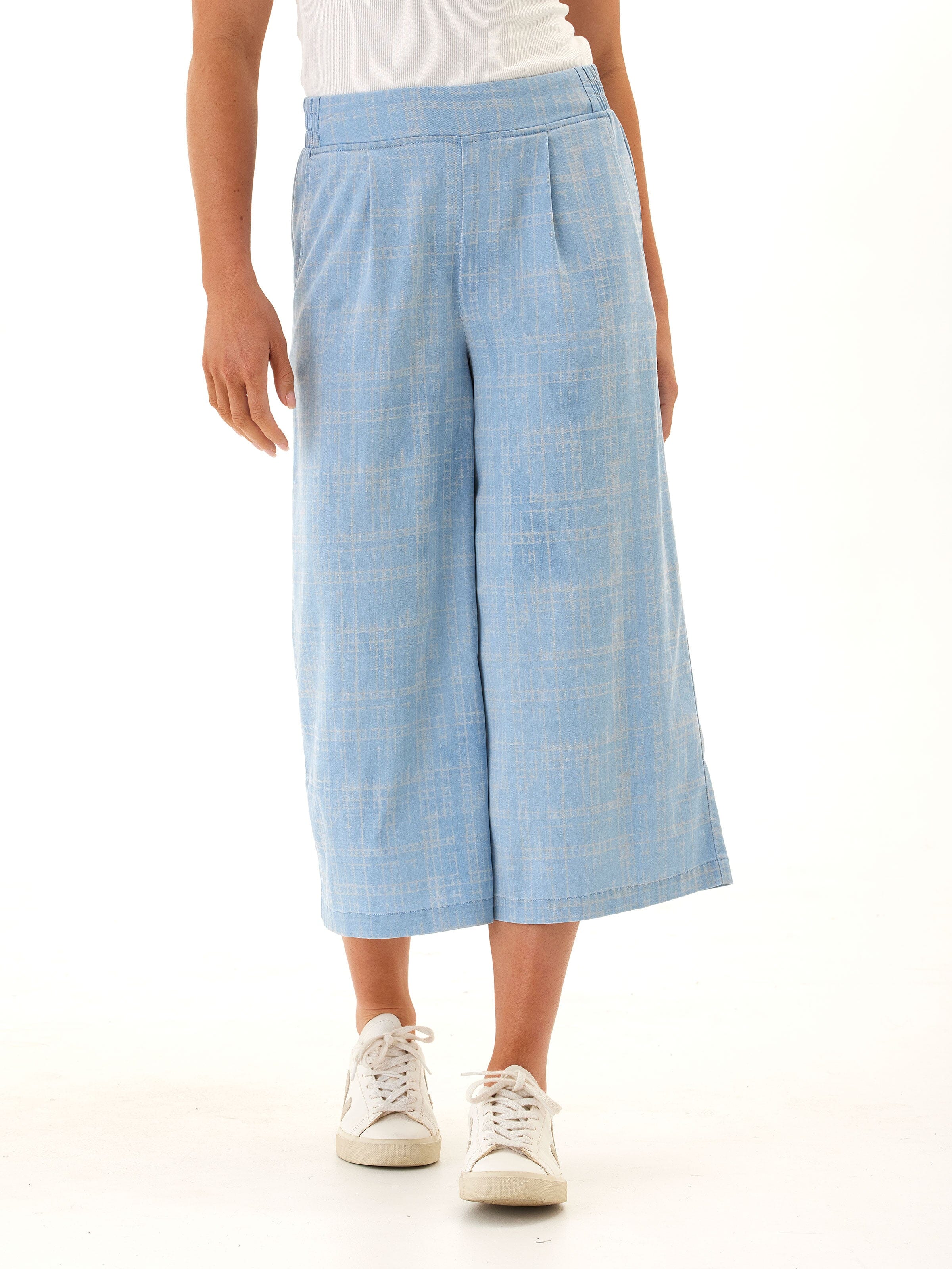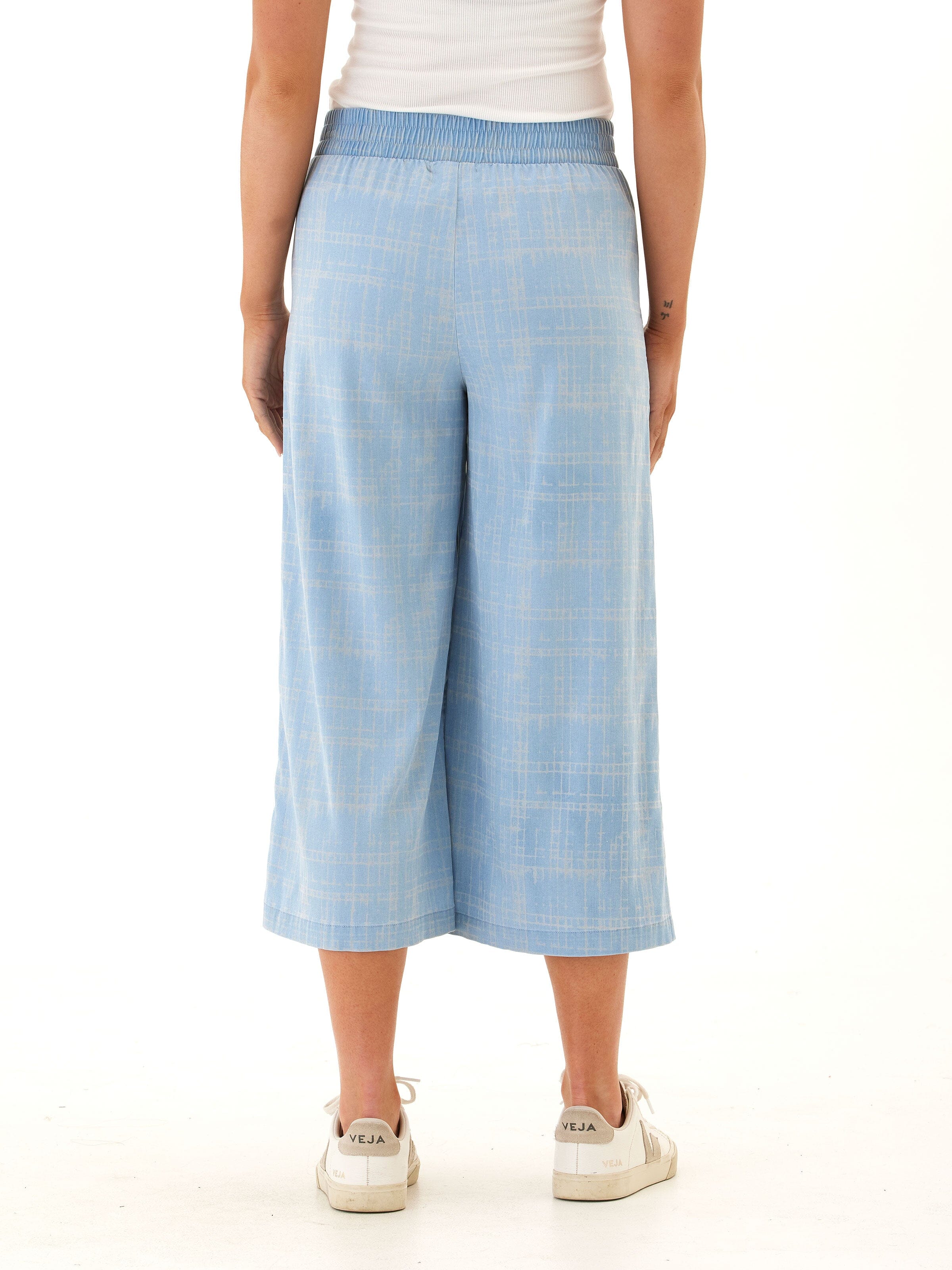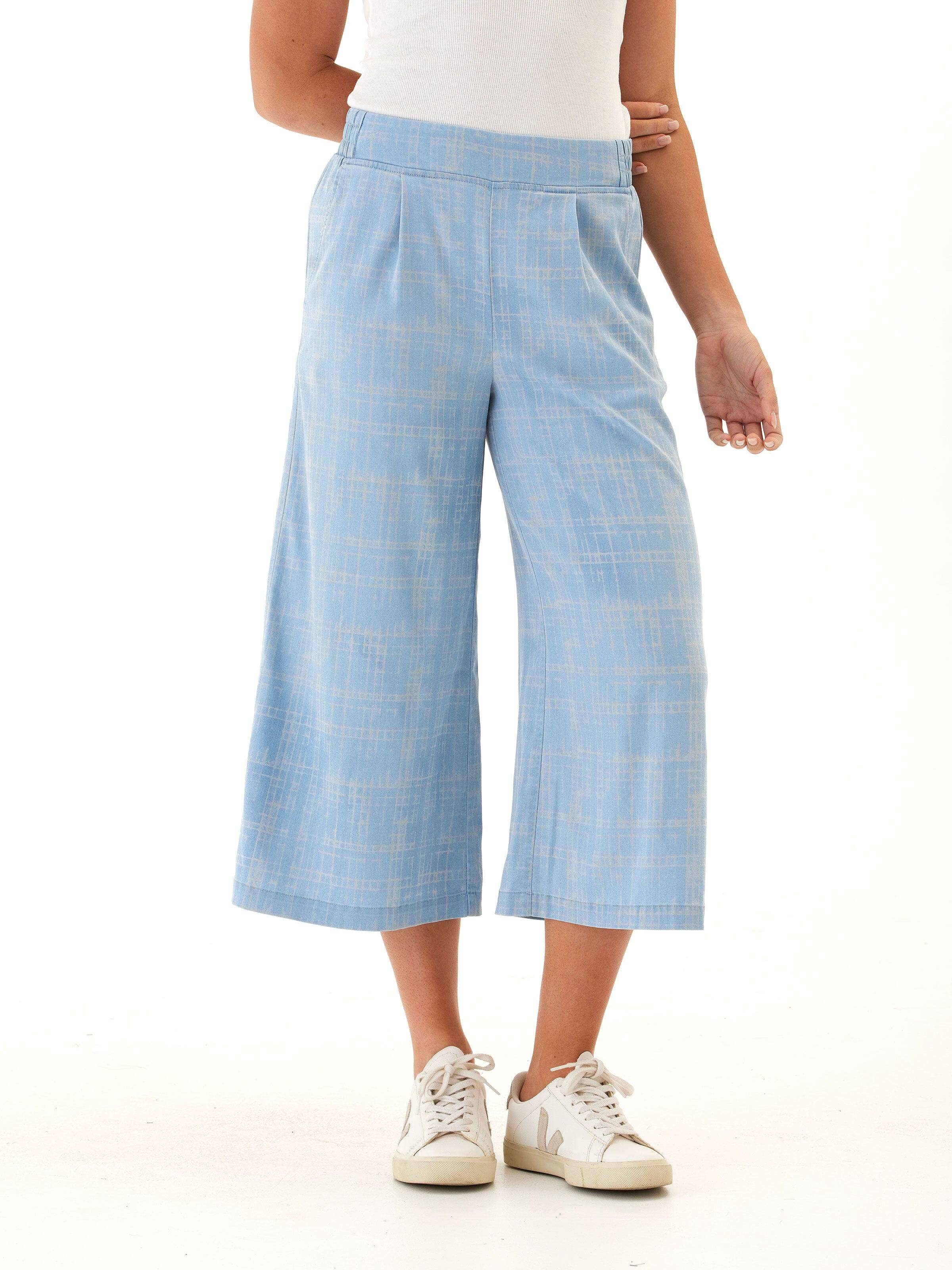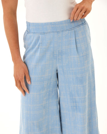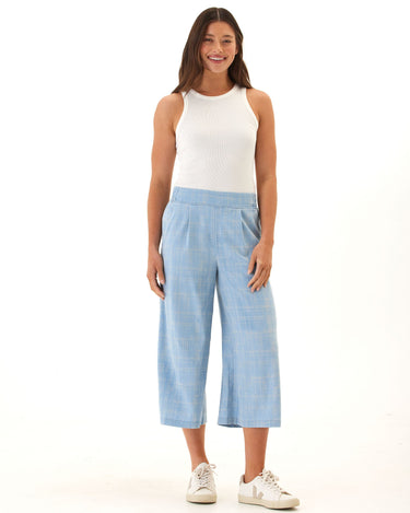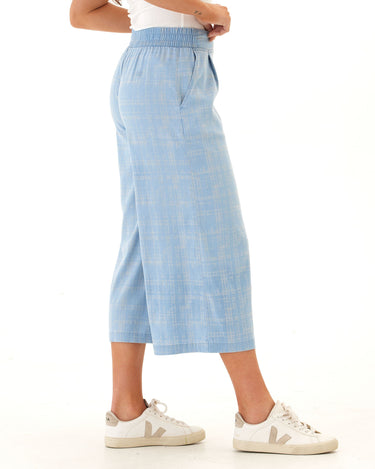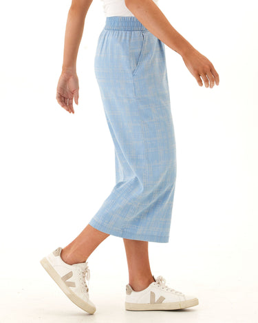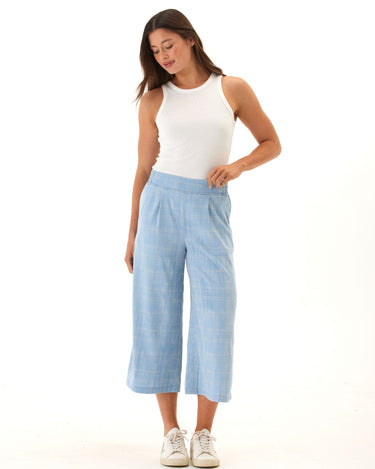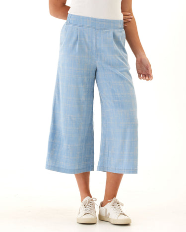 Alora Grid Plaid Stretch Chambray Capri Pant