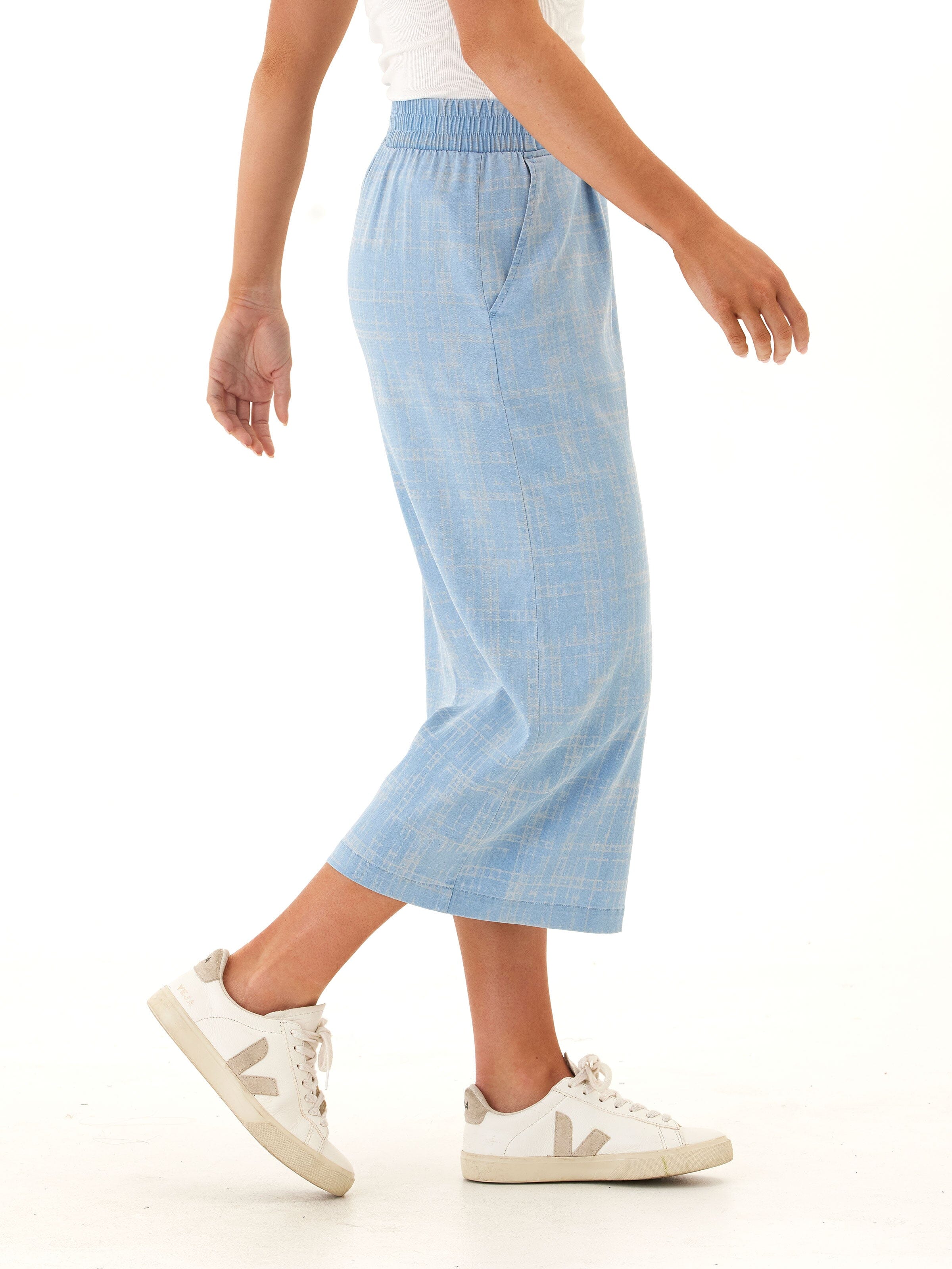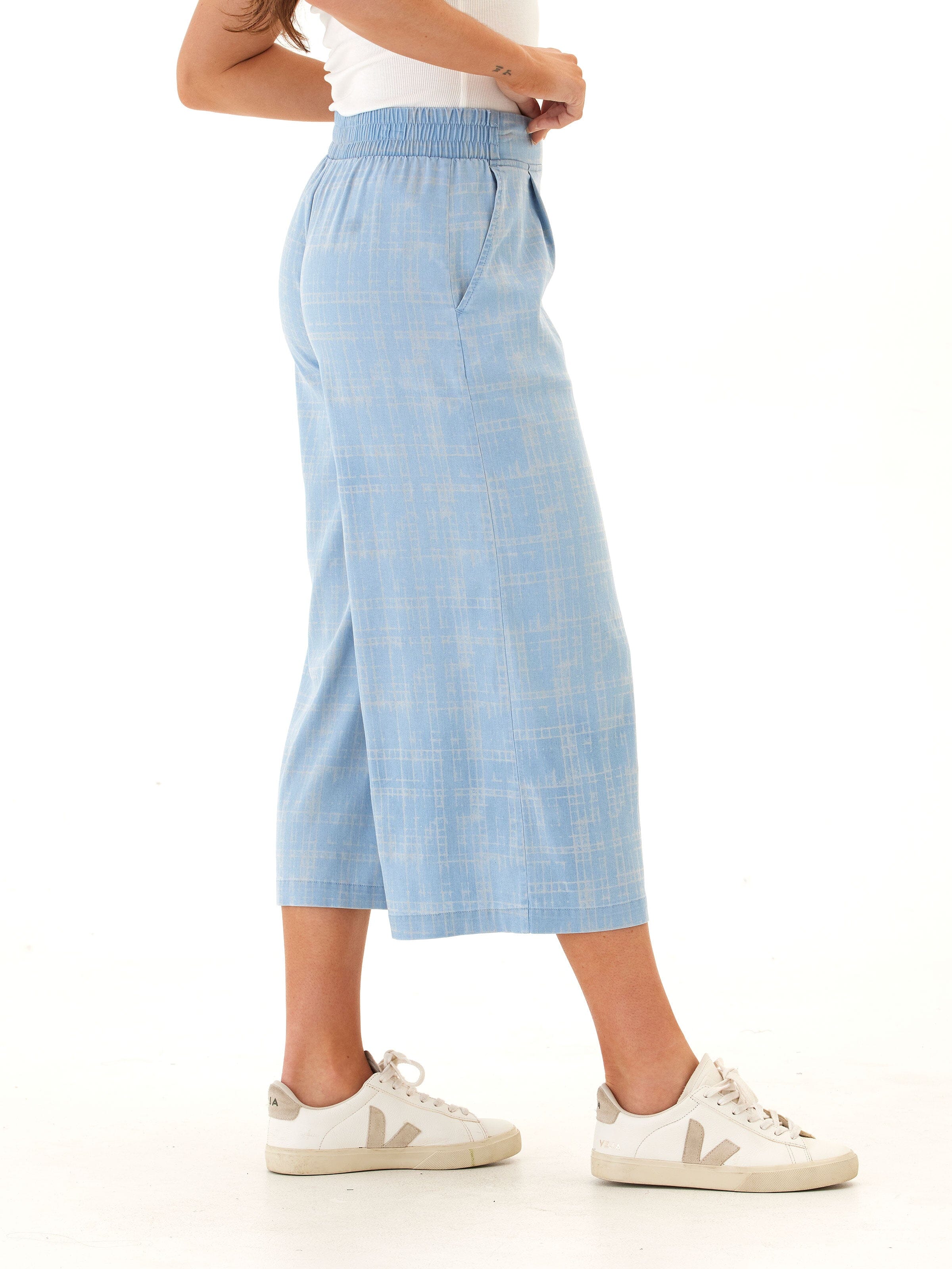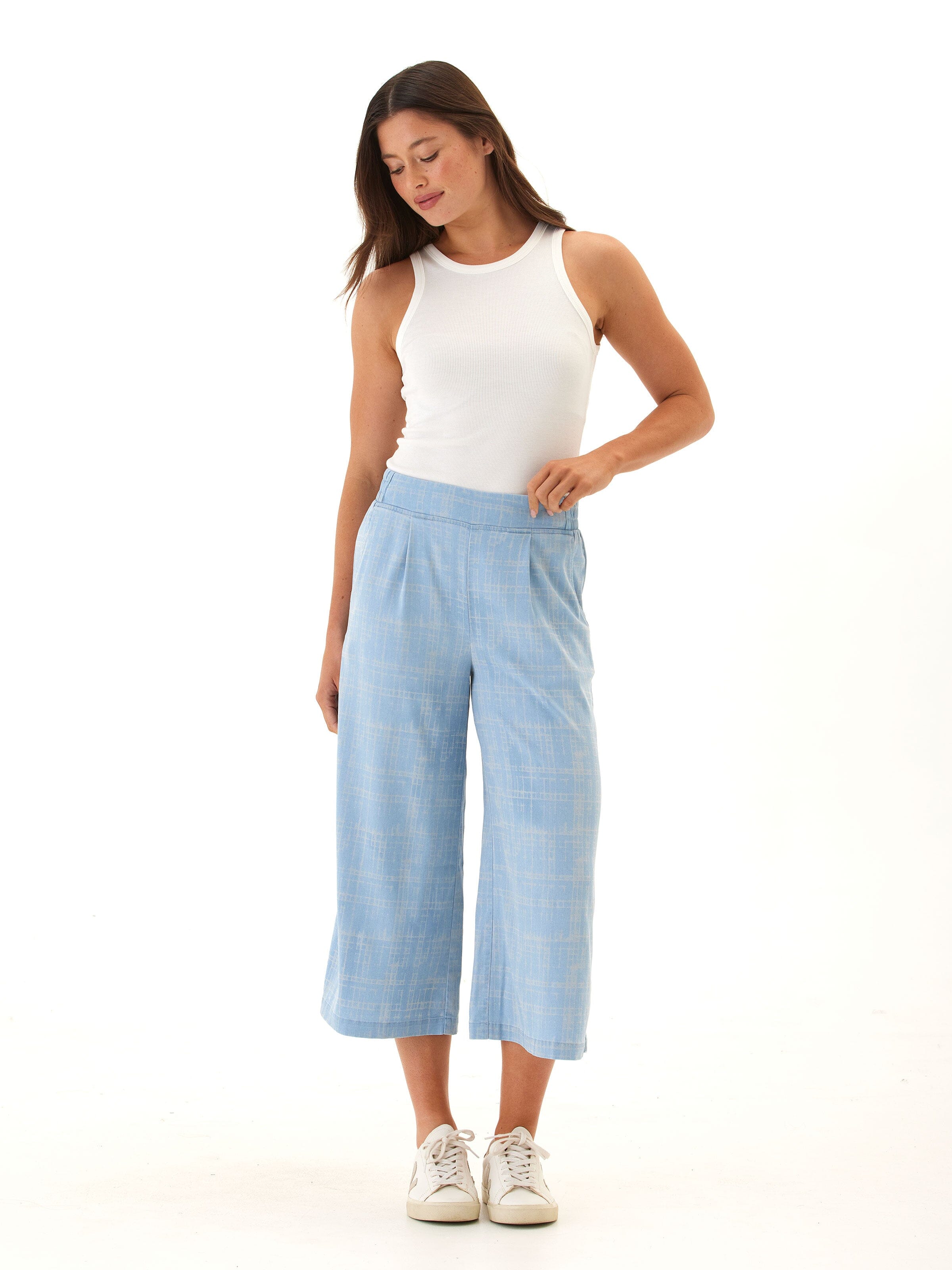 Alora Grid Plaid Stretch Chambray Capri Pant